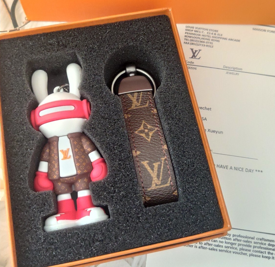 Handle the keychain with care to prevent any accidental damage to the rabbit figure or hardware. Avoid pulling or tugging on the keychain, as this may weaken the attachments. With proper care, your LV Rabbit Figure Keychain will maintain its beauty and elegance for years to come.