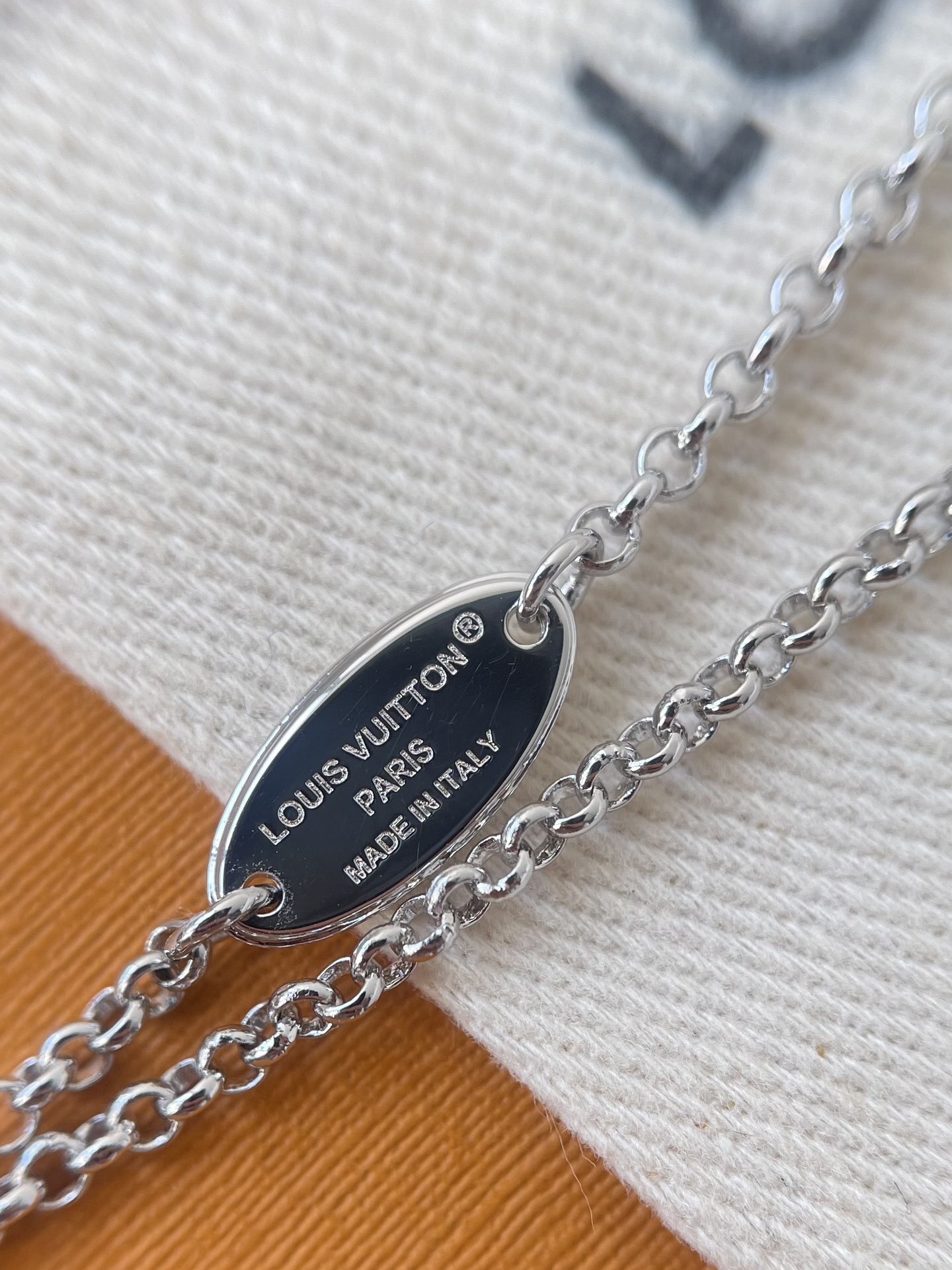 Here are some common questions about the LV Silver Crystal Logo Necklace: