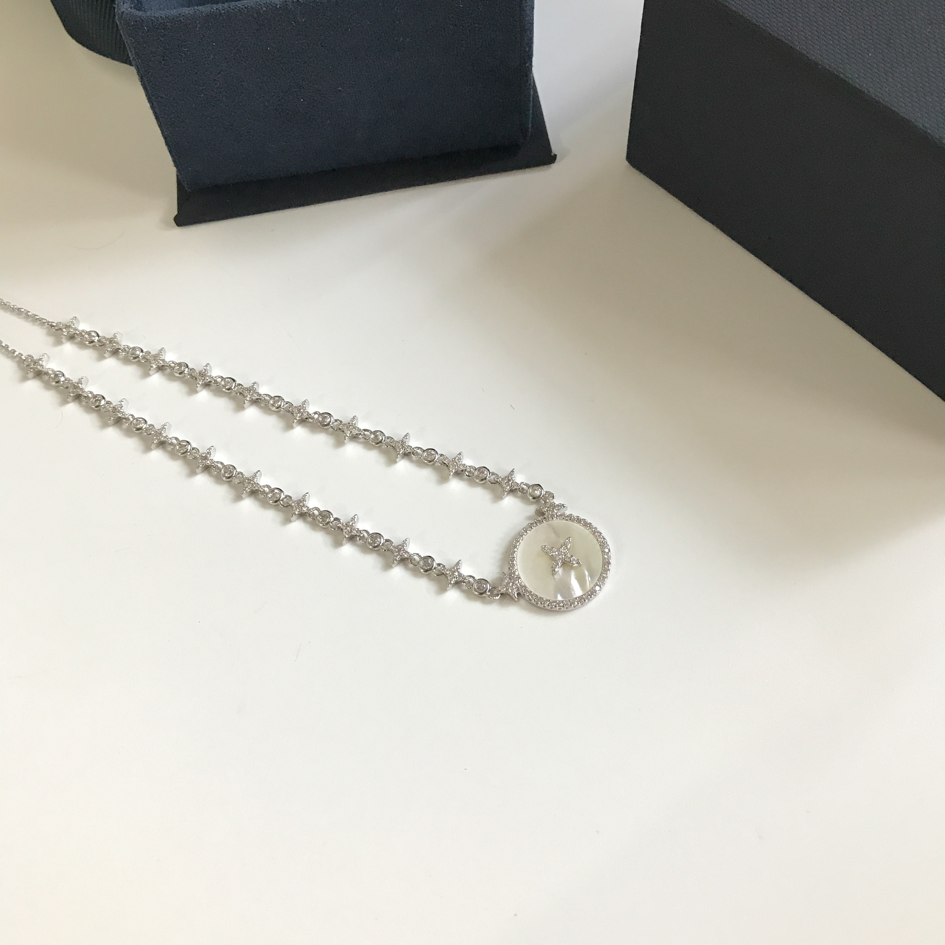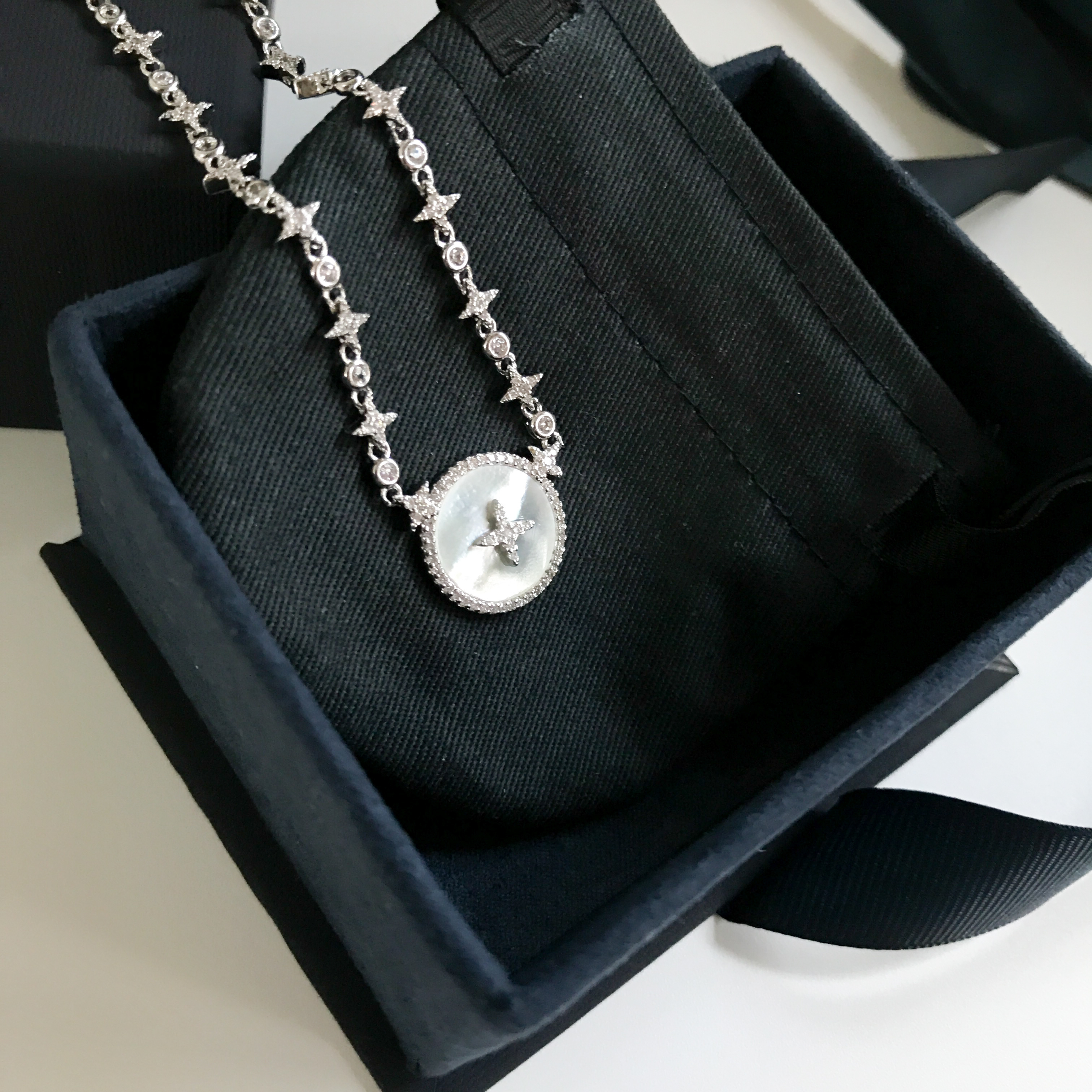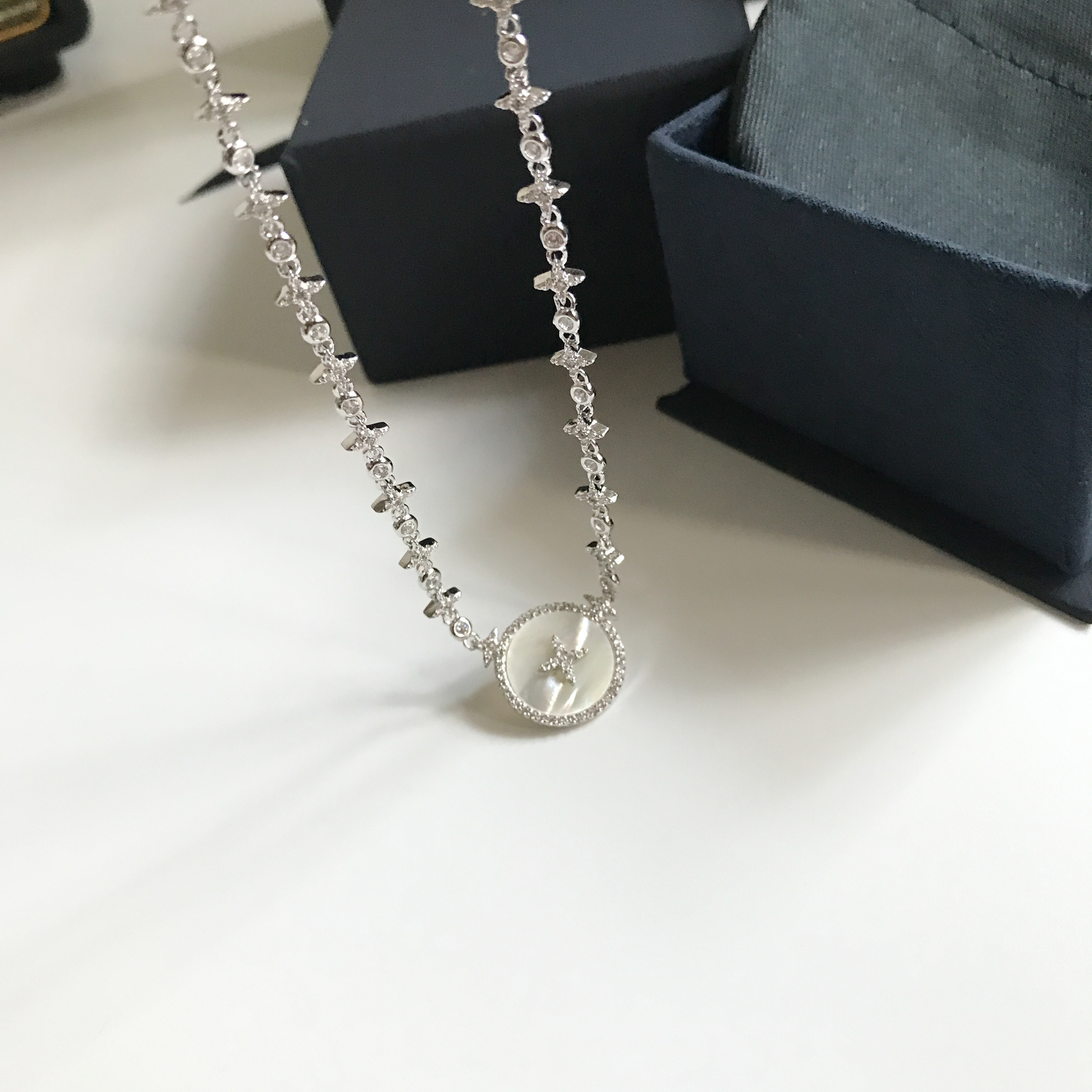 LV Silver Mother-of-Pearl Star Necklace - Dainty Design