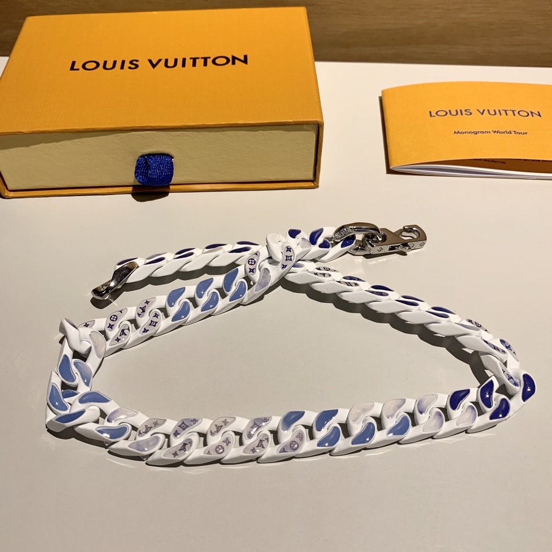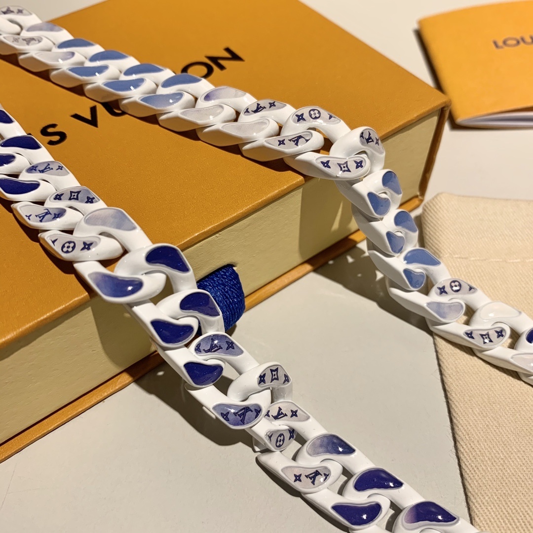 Choosing the LV White & Blue Chain Links Necklace means investing in a piece that combines luxury, style, and quality. This necklace is more than just an accessory; it's a statement of your personal taste and sophistication. The unique design and high-quality materials ensure it stands out from the crowd.