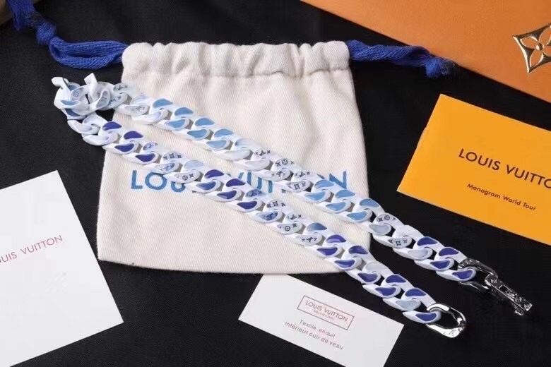 Handle the necklace with care to avoid bending or breaking the chain links. By following these simple care tips, you can ensure your LV White & Blue Chain Links Necklace remains a cherished piece in your jewelry collection for years to come.