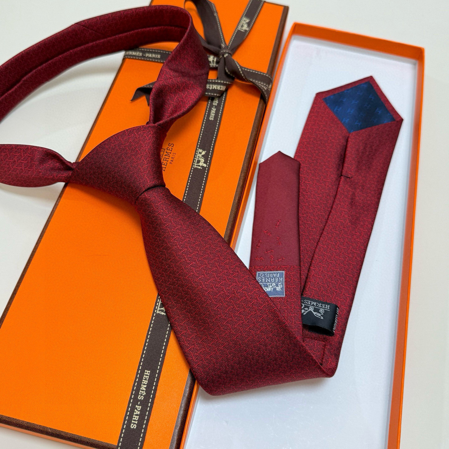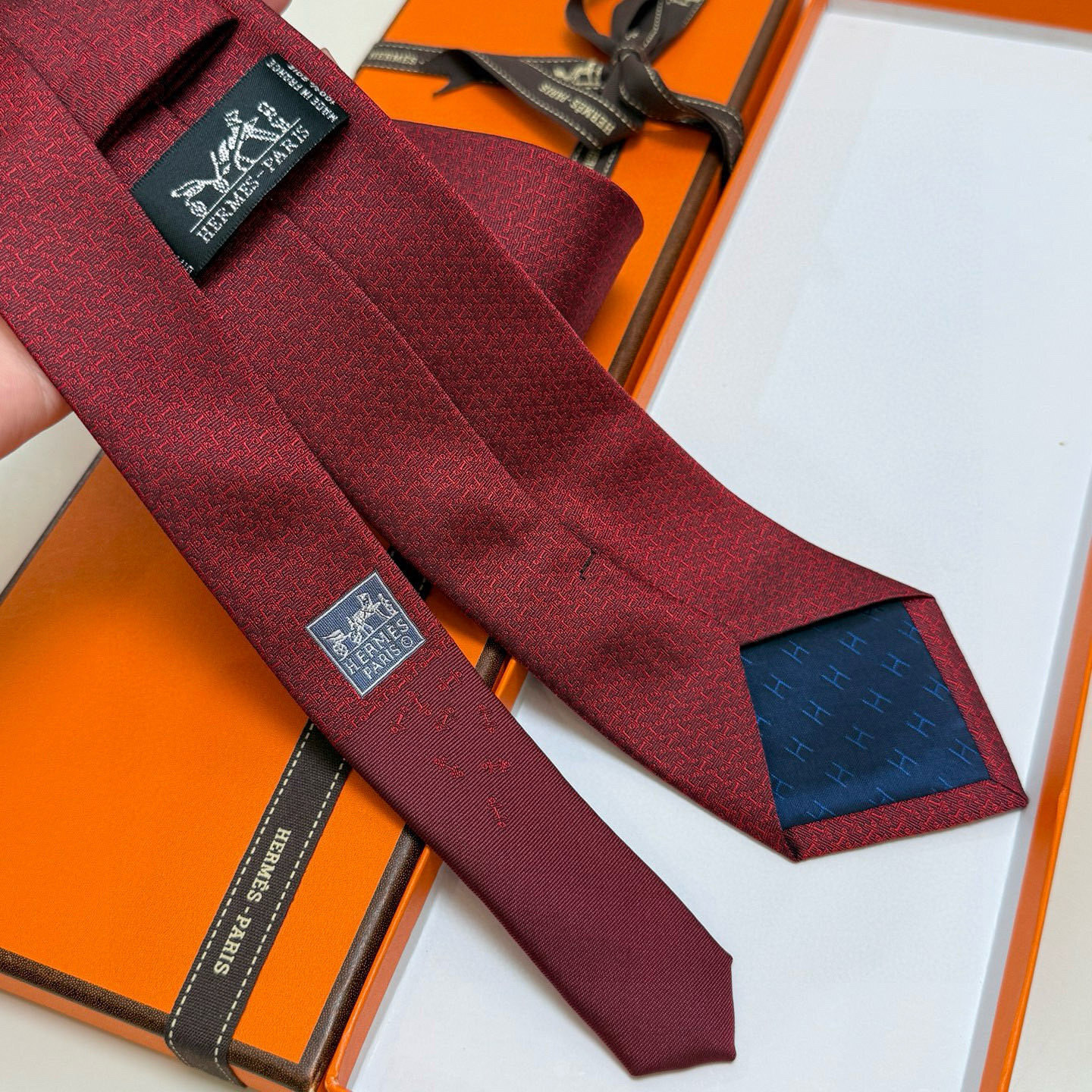 - Key Features of the Hermès Burgundy Micro-Pattern Silk Tie