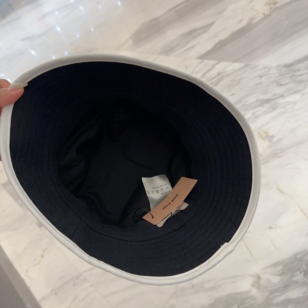 Avoid exposing the hat to direct sunlight or excessive heat, as this can cause the colors to fade. Store the hat in a cool, dry place when not in use. With proper care, your Miu Miu Black Cotton Bucket Hat will remain a stylish and cherished accessory for years to come.