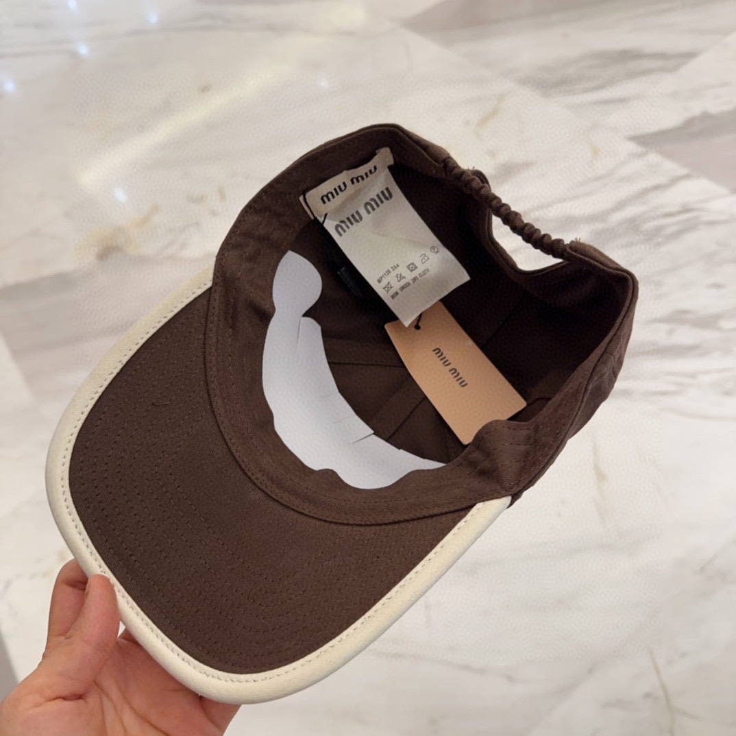 Miu Miu Brown Cotton Baseball Cap - White Trim Miu Miu Brown Cotton Baseball Cap - White Trim