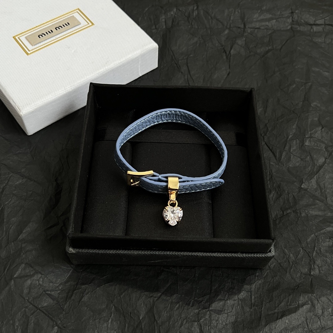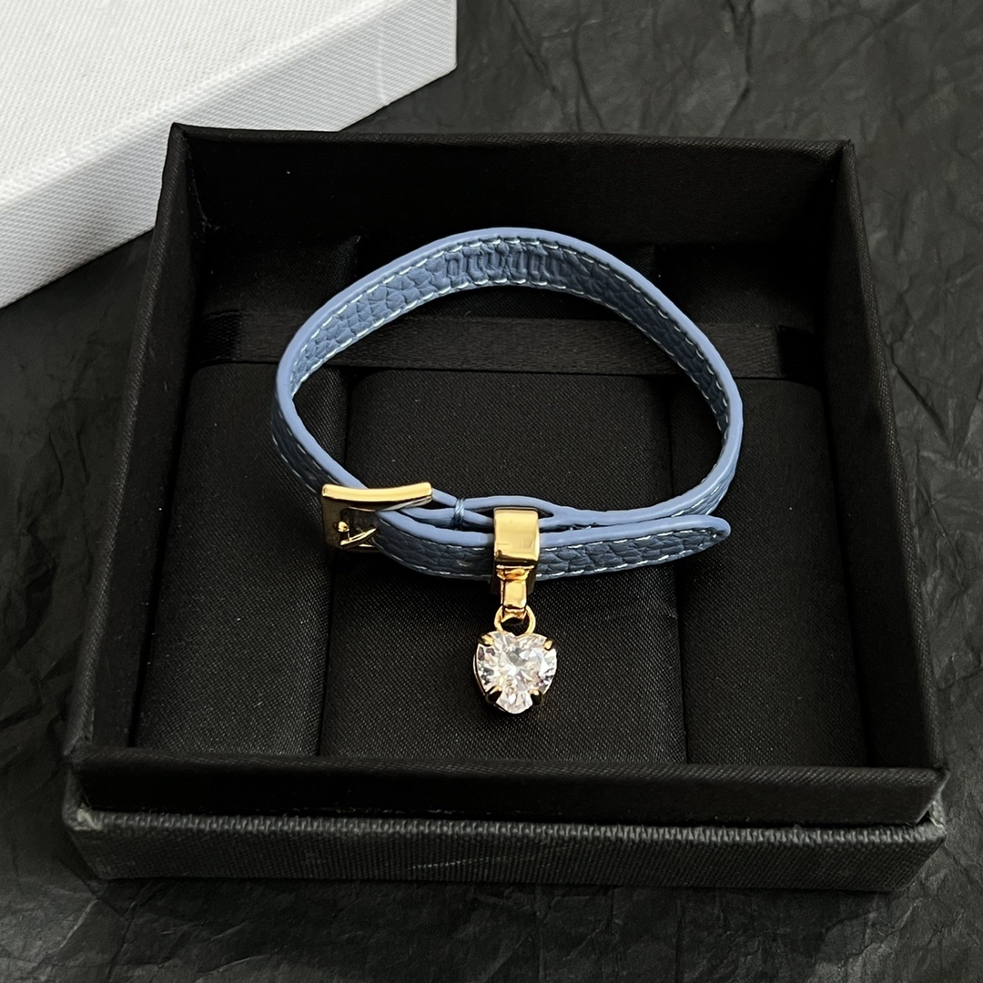 Indulge in the allure of our premium leather bracelet, inspired by the iconic Miu Miu aesthetic. This bracelet isn't just an accessory; it's a statement piece that reflects your refined taste and playful spirit. The delicate heart charm adds a touch of romance and sparkle, making it perfect for both everyday wear and special occasions.