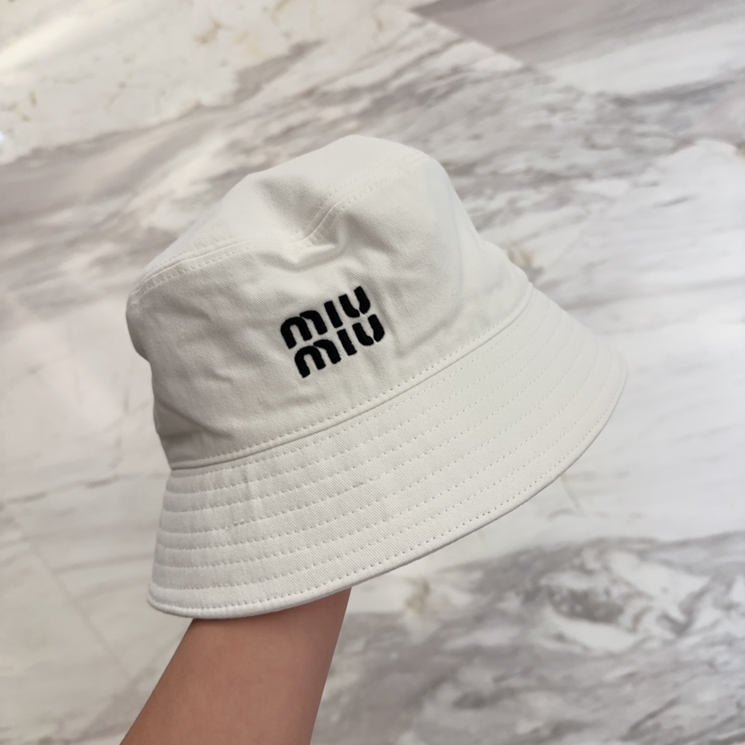 This hat is designed for those who appreciate quality and attention to detail. The meticulous embroidery of the Miu Miu logo showcases the brand's commitment to excellence, while the soft cotton fabric ensures a comfortable fit. This bucket hat is the perfect accessory to express your individuality and elevate your personal style.