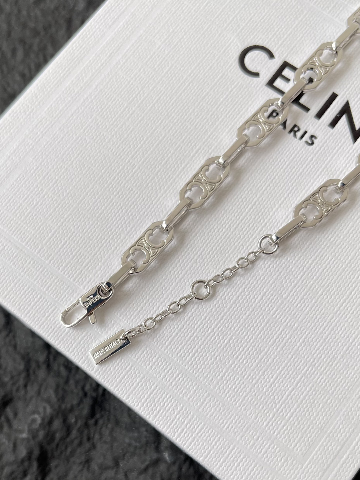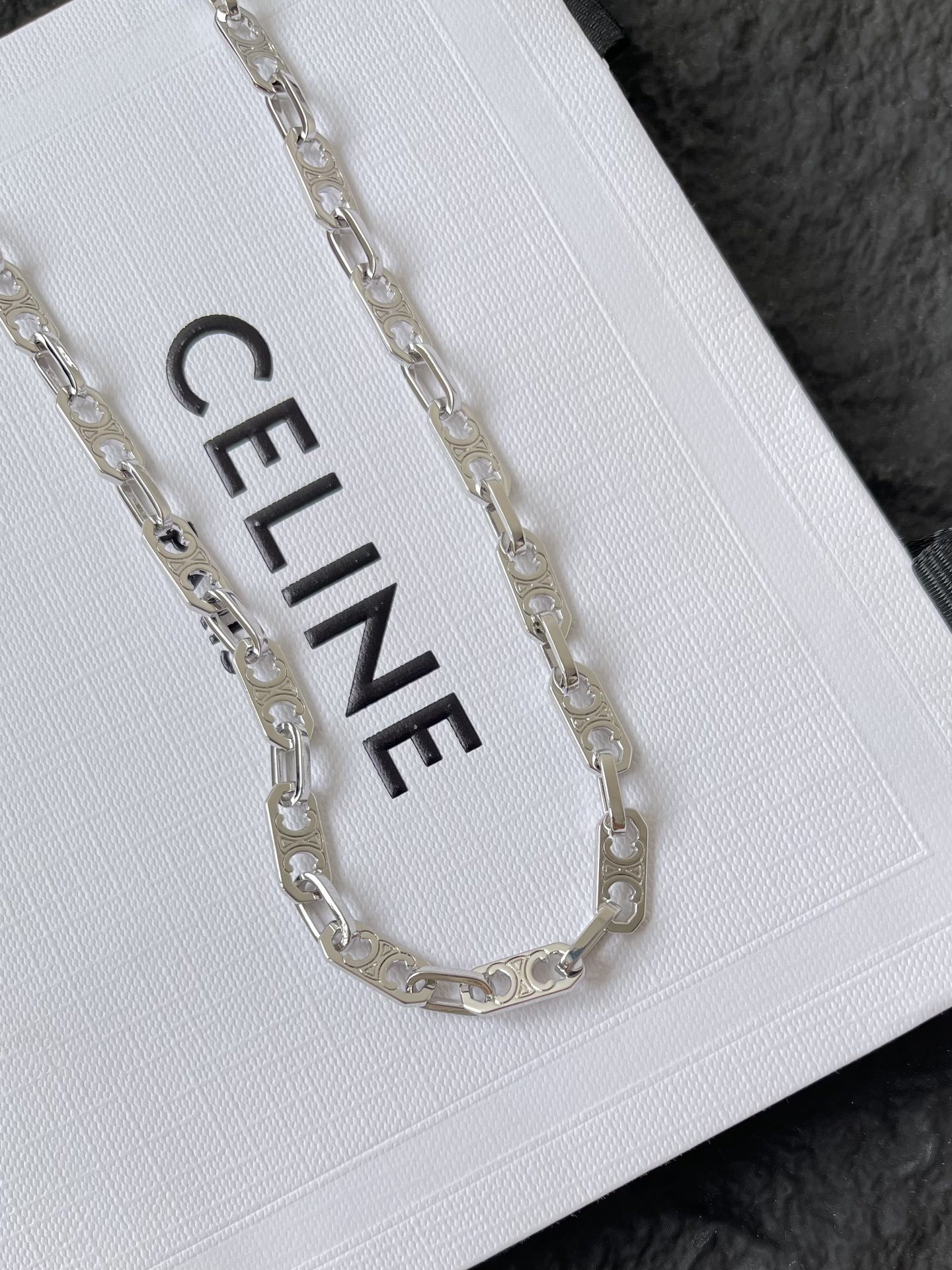 The Celine Silver Chain Link Necklace is a testament to the brand's dedication to quality and design. Its timeless elegance and exceptional craftsmanship make it a valuable investment for any jewelry lover. Whether you're treating yourself or searching for the perfect gift, the Celine Silver Chain Link Necklace is sure to delight. Choose the Celine Silver Chain Link Necklace and experience the unmatched quality and sophistication that Celine is known for.
