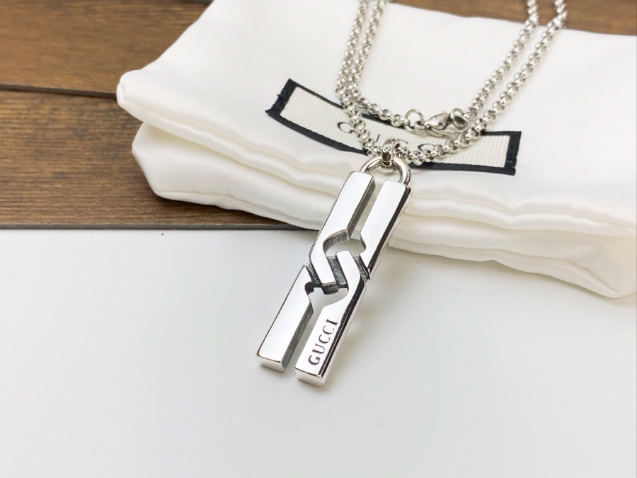 modern Gucci Interlocking G Silver Necklace - The Gucci Interlocking G Silver Necklace is a modern and sophisticated piece of jewelry that seamlessly blends iconic branding with contemporary design. This exquisite necklace features the signature Interlocking G motif, a symbol instantly recognizable and synonymous with the luxury and prestige of the Gucci brand. Crafted from high-quality sterling silver, this necklace exudes a timeless elegance that makes it a versatile accessory for any occasion. Whether you're looking to add a touch of refinement to your everyday attire or elevate your evening ensemble, the Gucci Interlocking G Silver Necklace is the perfect choice.