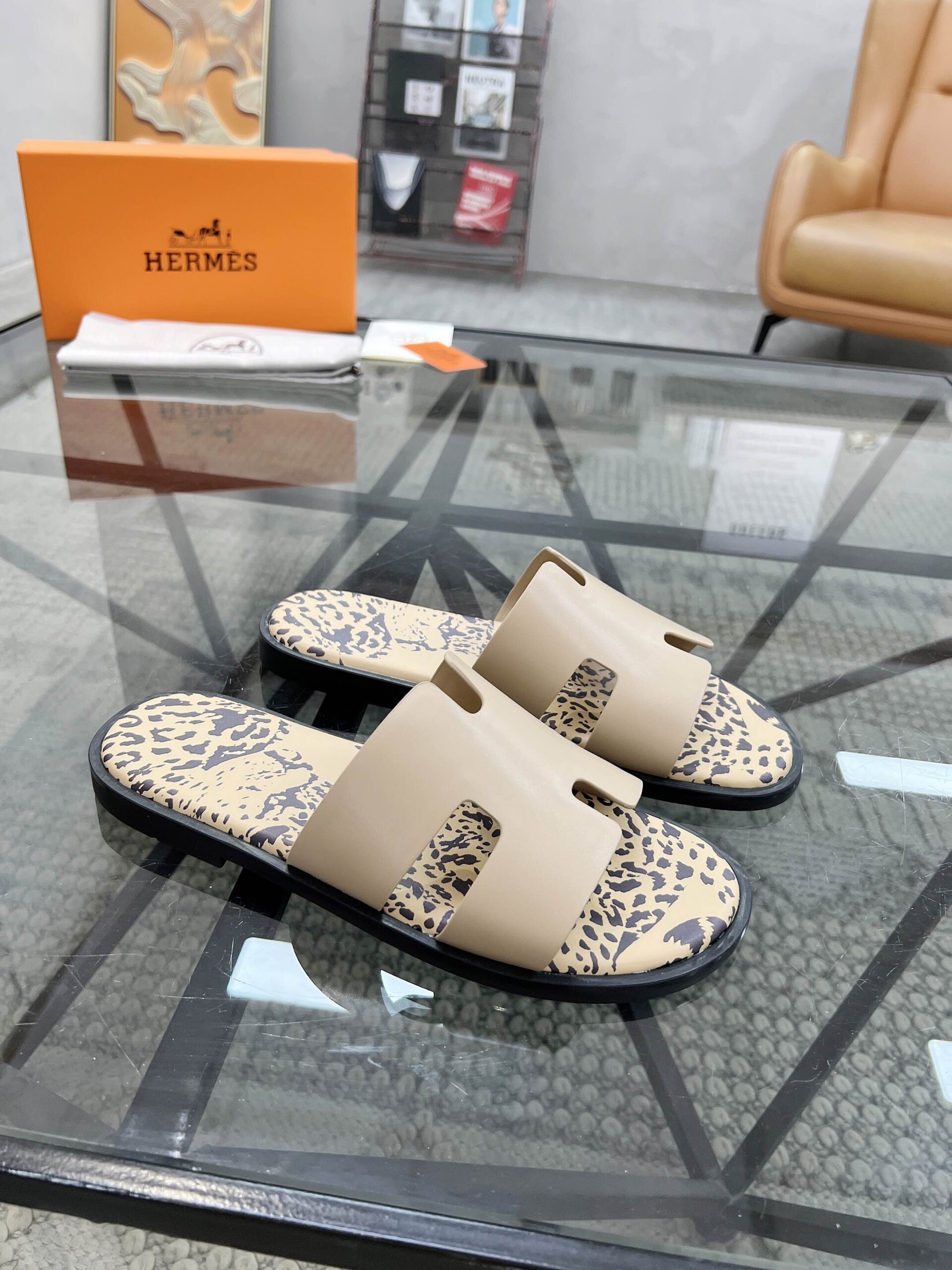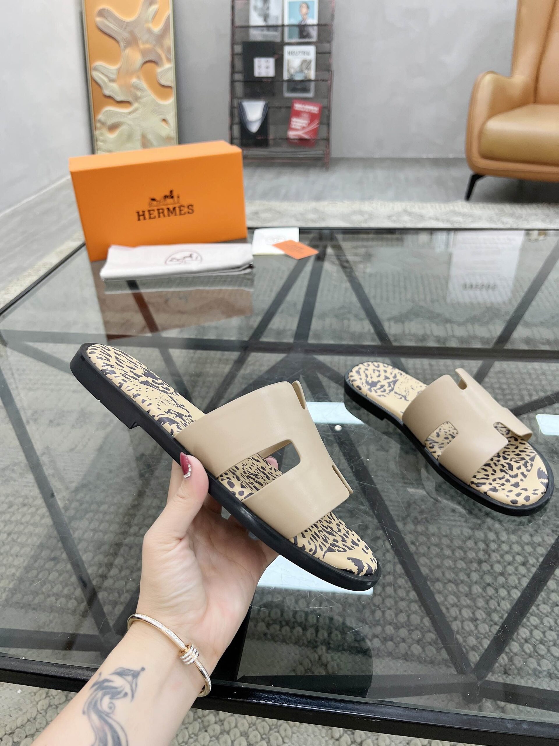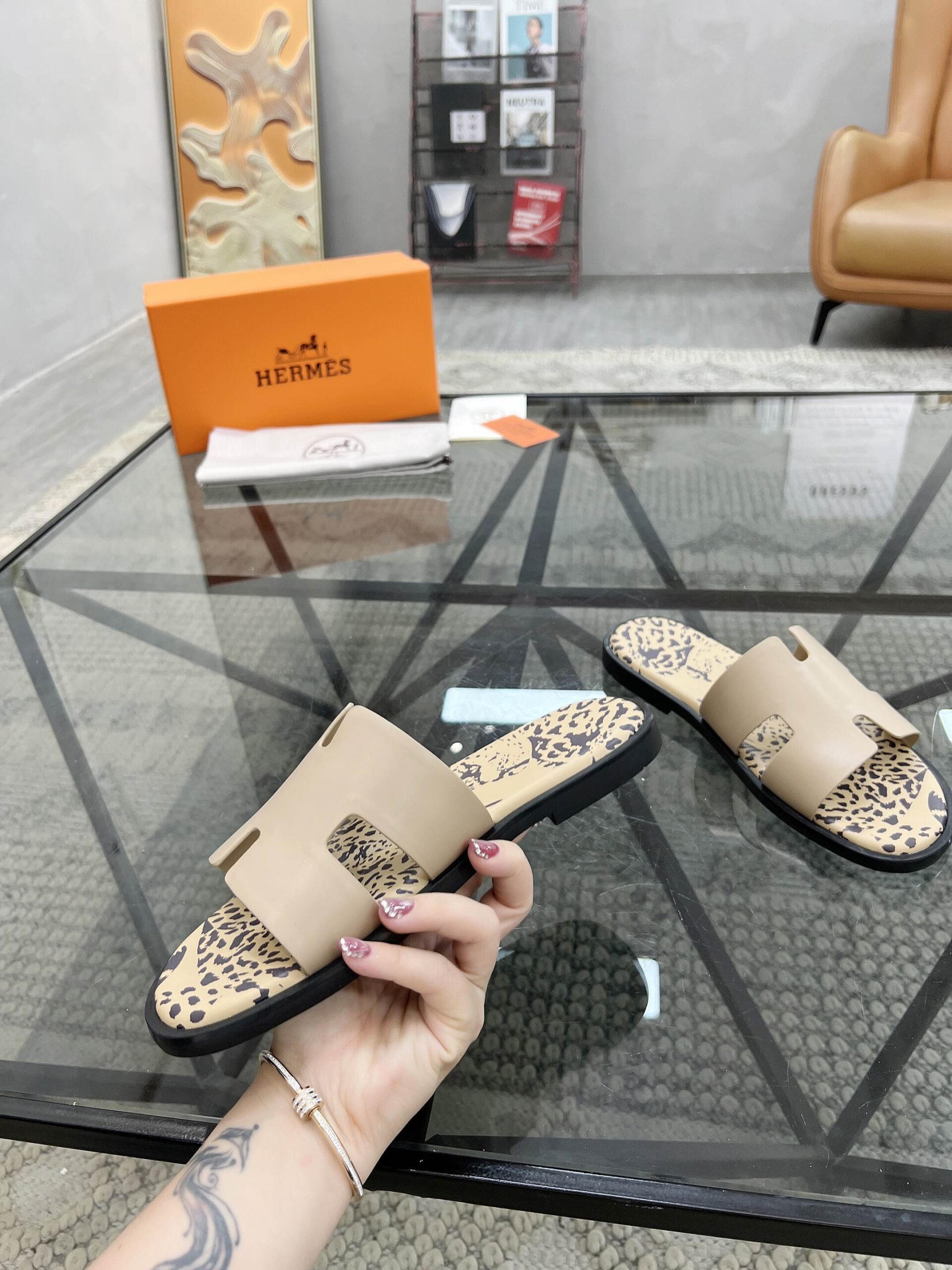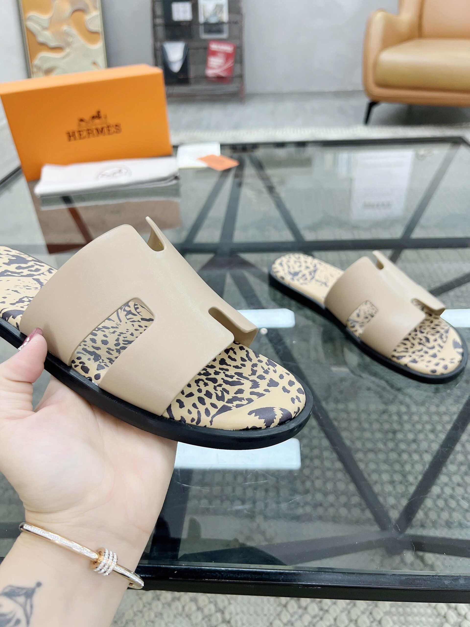 Why Choose Hermès Nude Leather Leopard Print Slides?