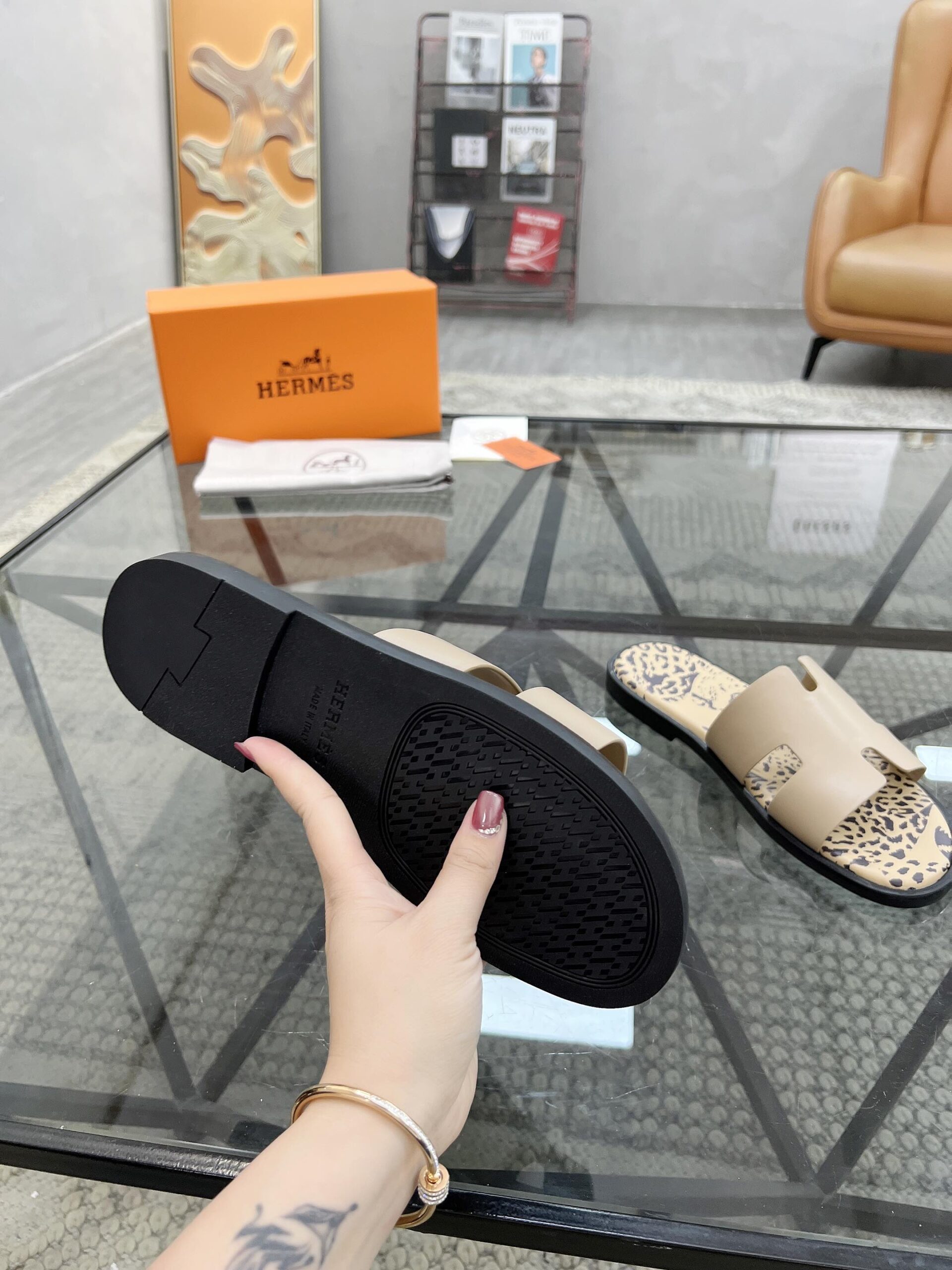 Distinctive Features of Hermès Nude Leather Leopard Print Slides