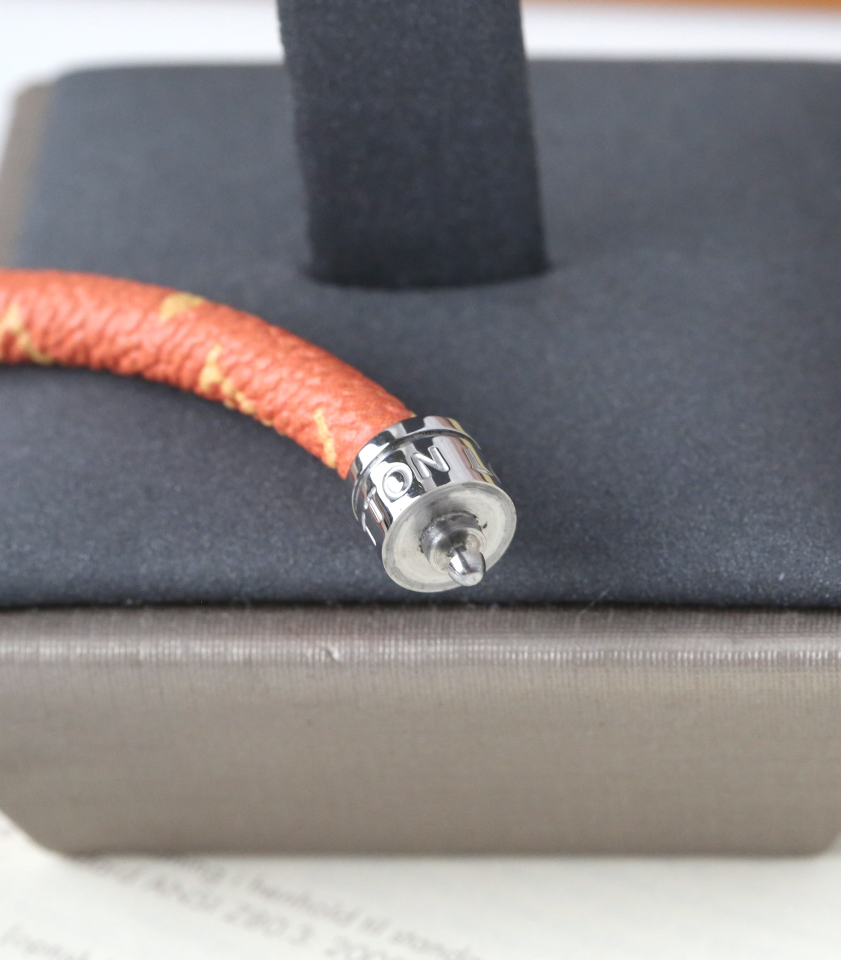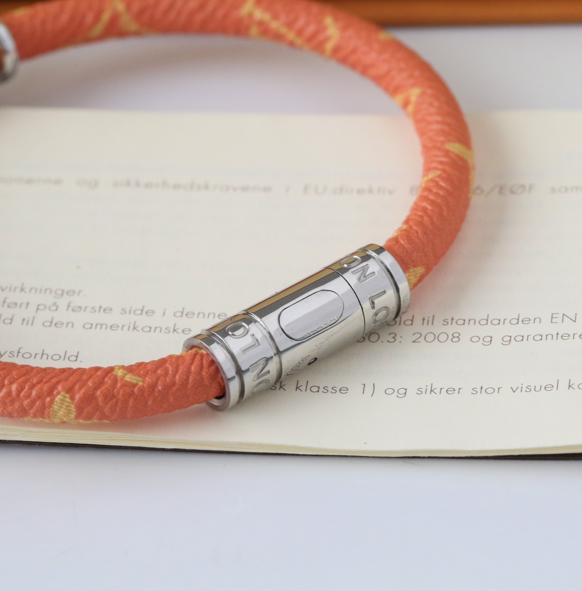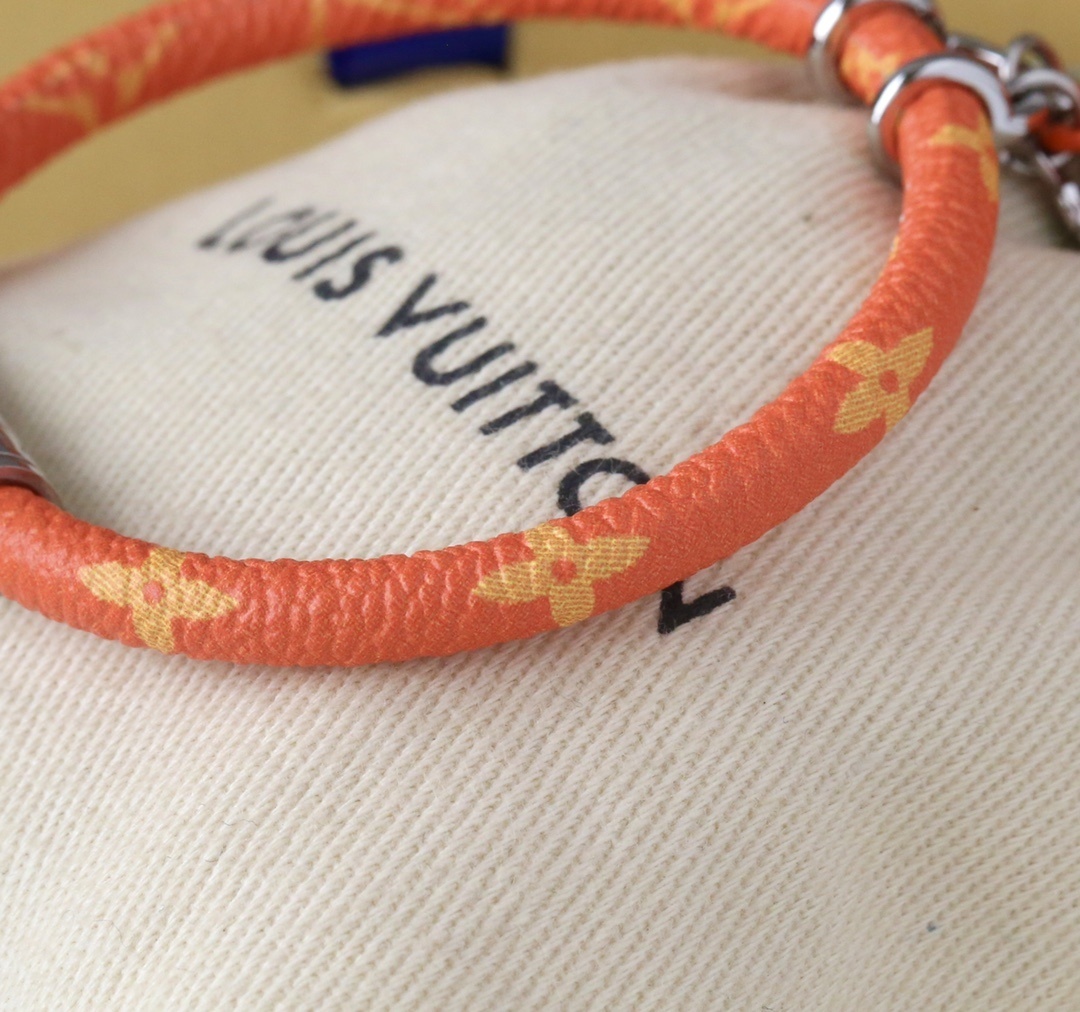 The Orange Blossom Bracelet features a vibrant orange cord adorned with delicate floral patterns, reminiscent of blooming orange blossoms. The intricate detailing and the use of high-quality materials ensure both durability and a luxurious feel.