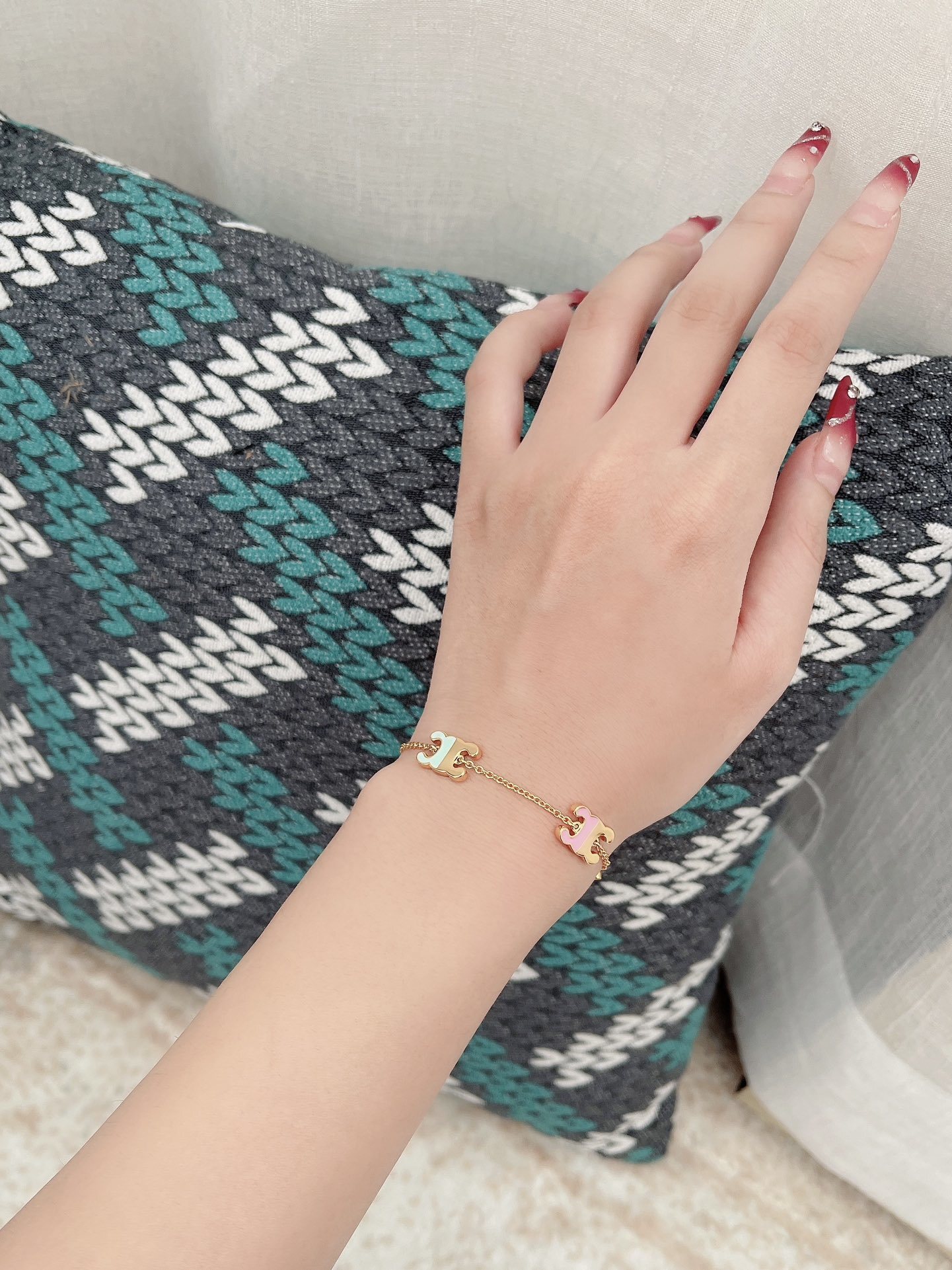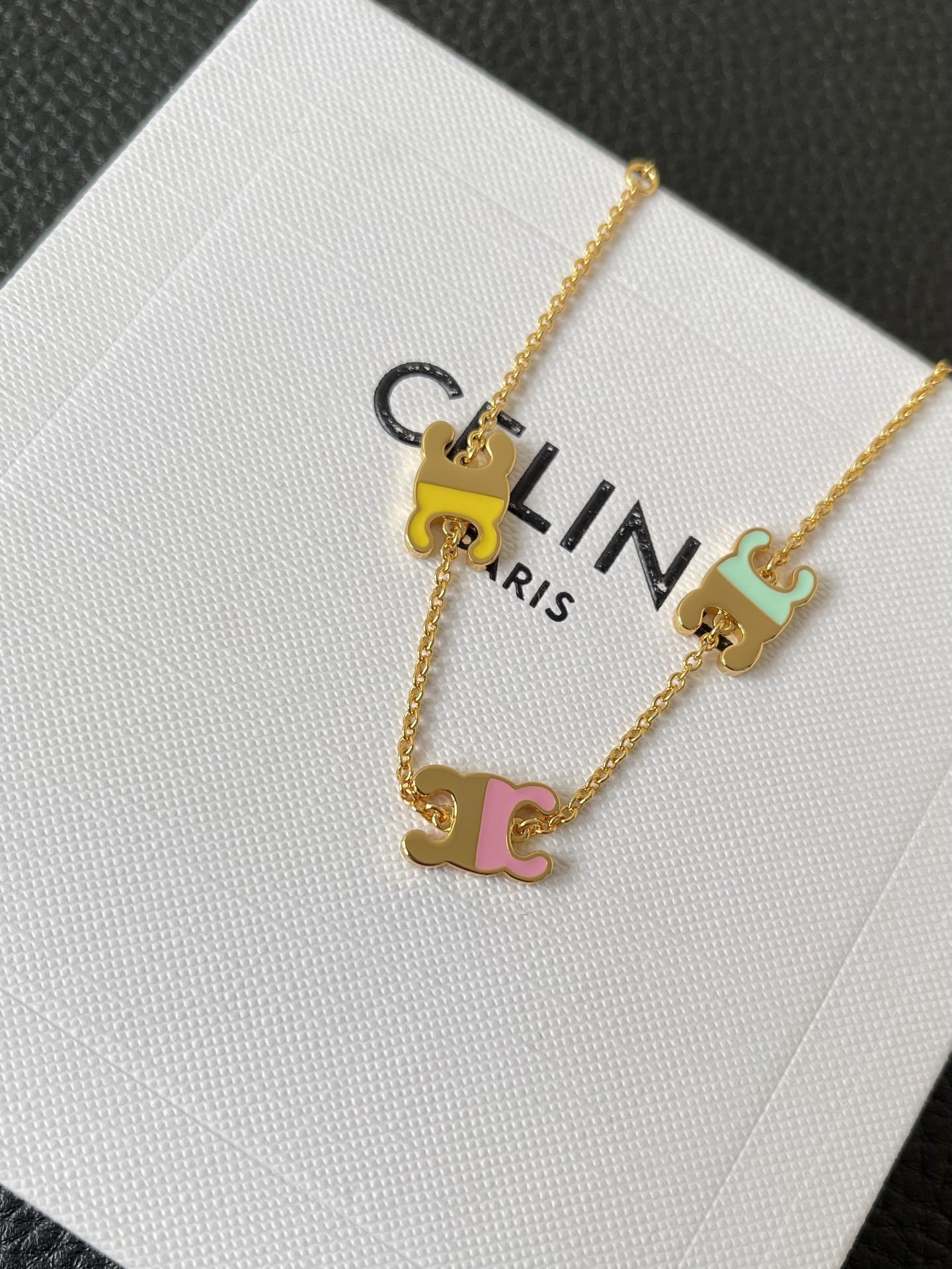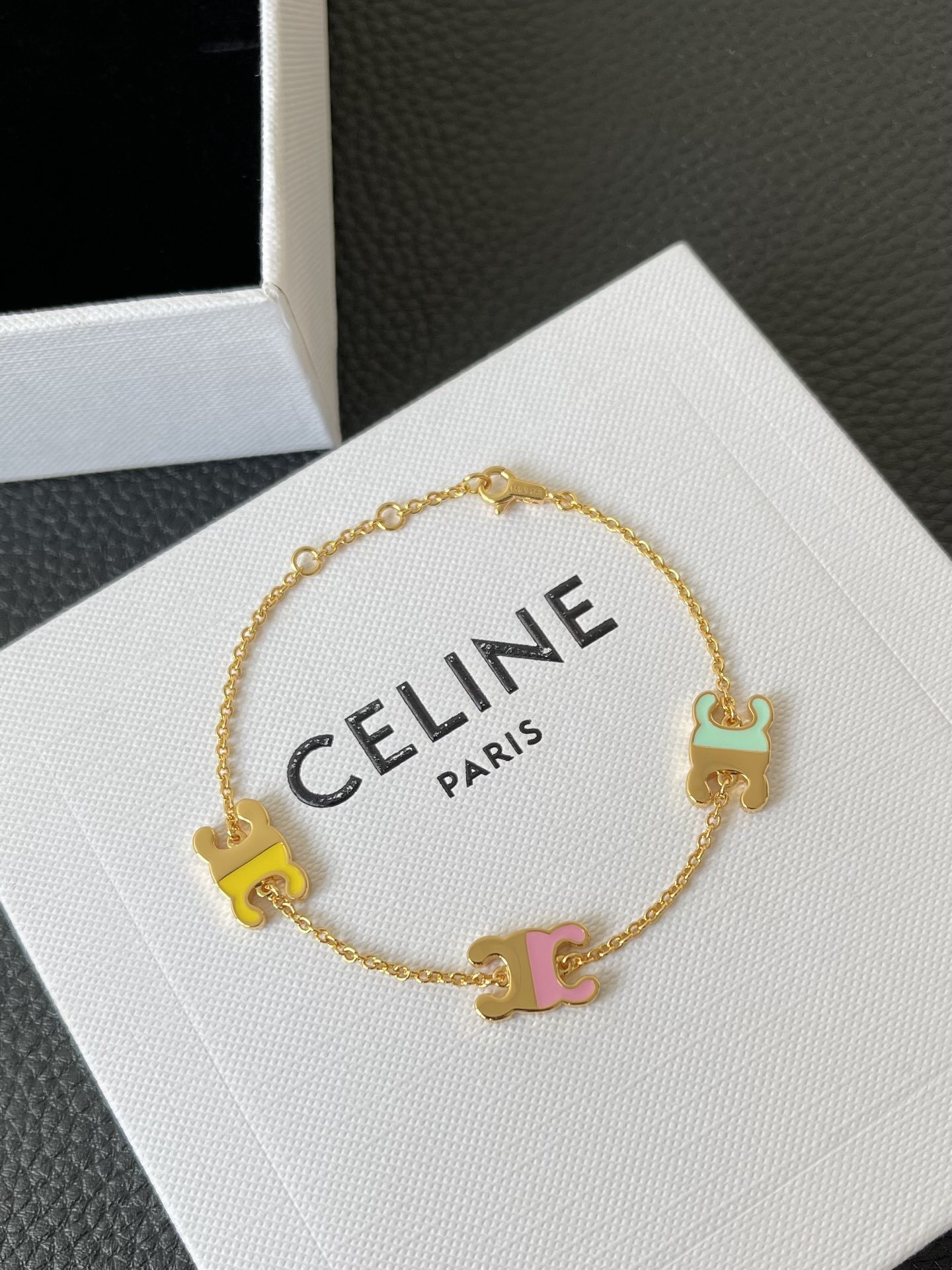 - Introducing the Celine Triomphe Gold Bracelet with Pastel Enamel Charms