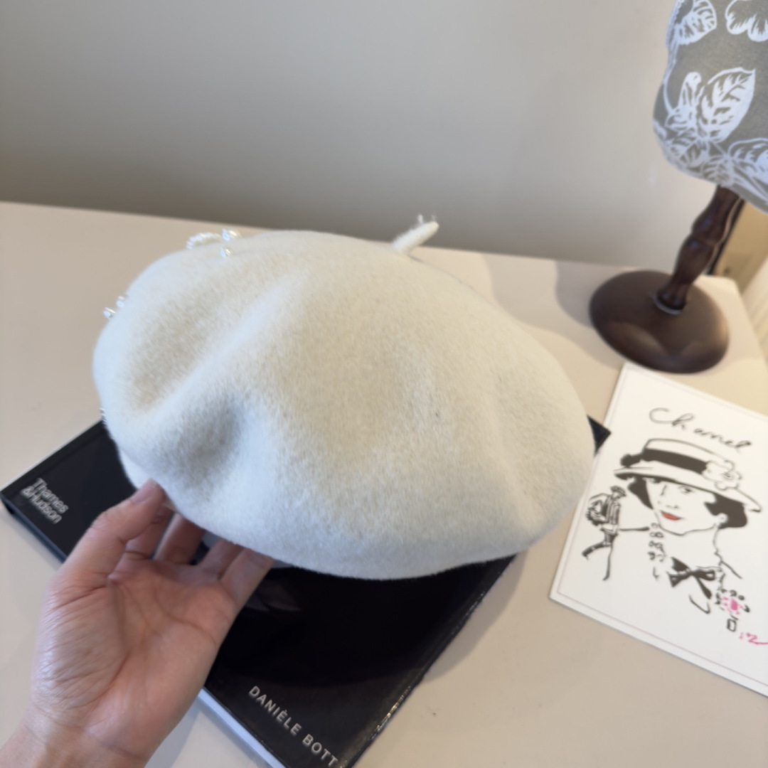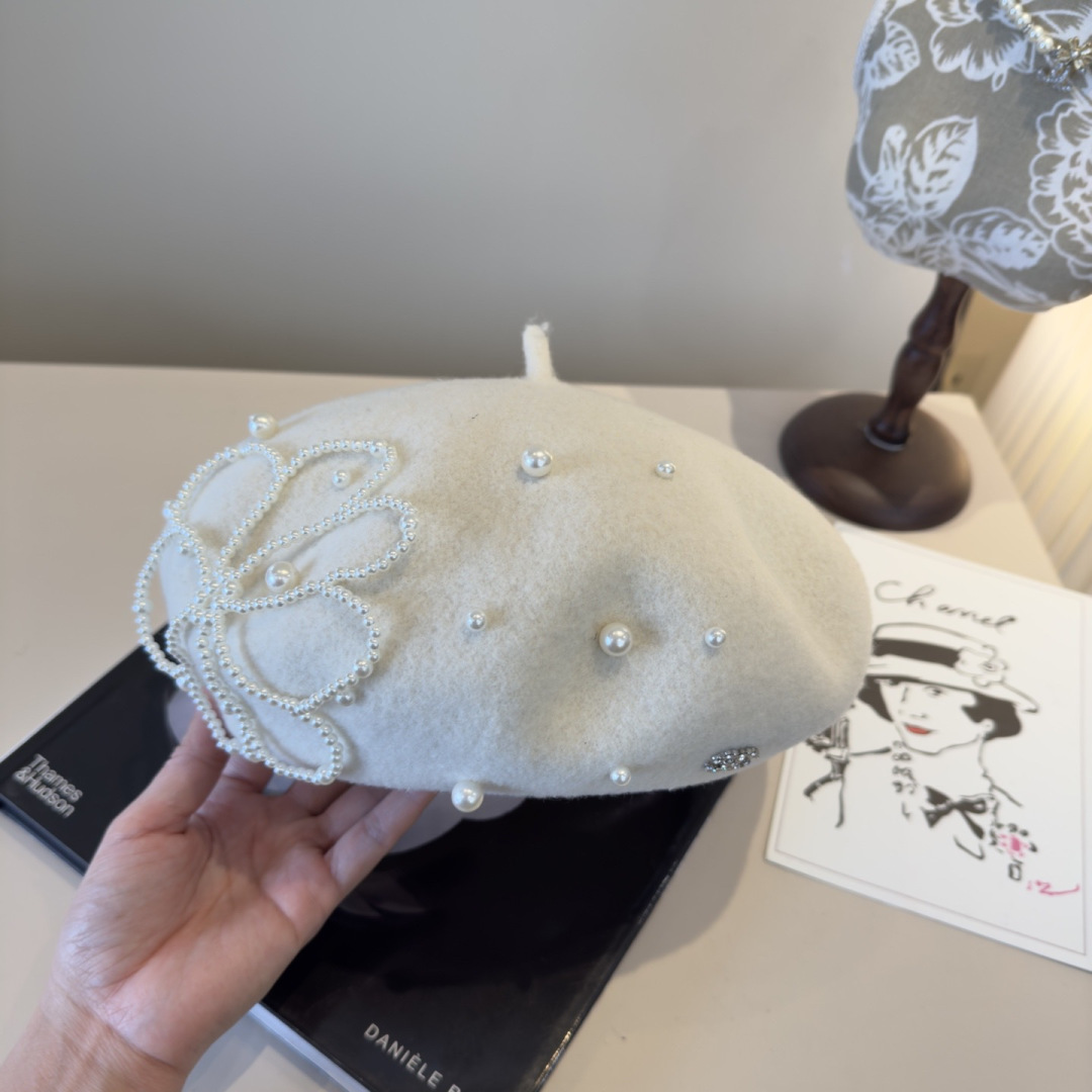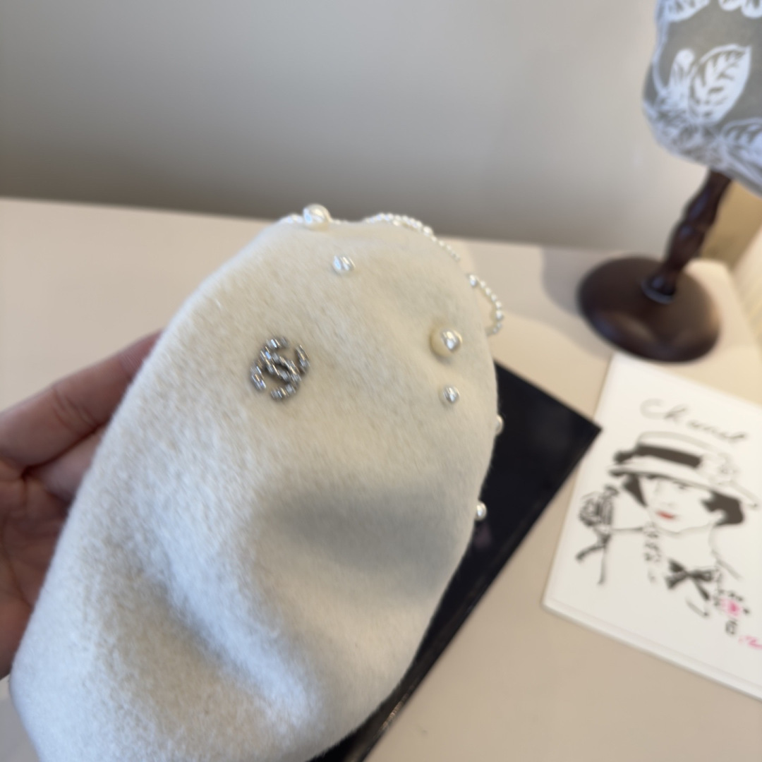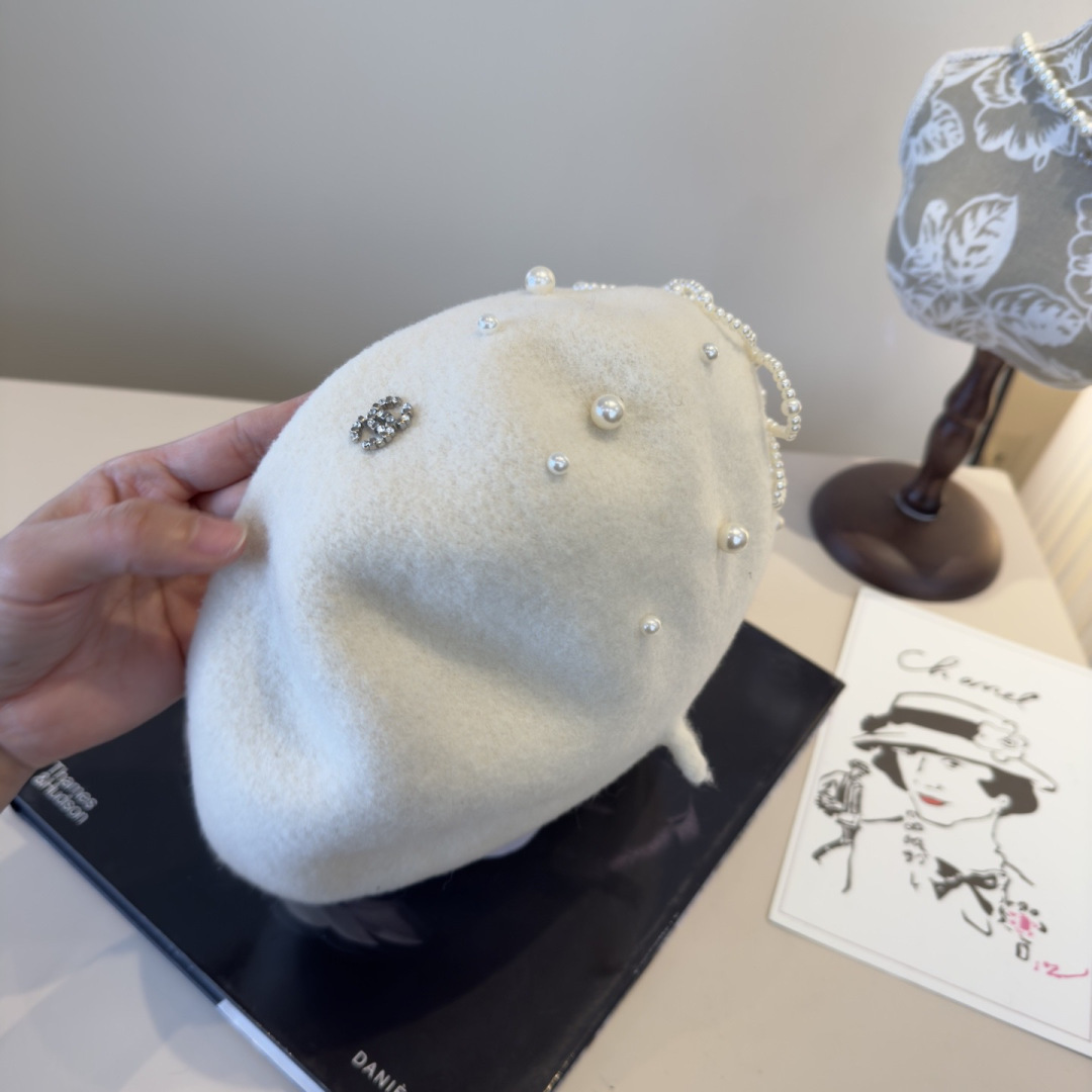 For additional background, review the external reference about pearl embellished Chanel Ivory Wool Beret.