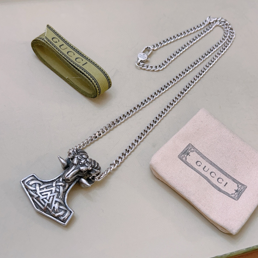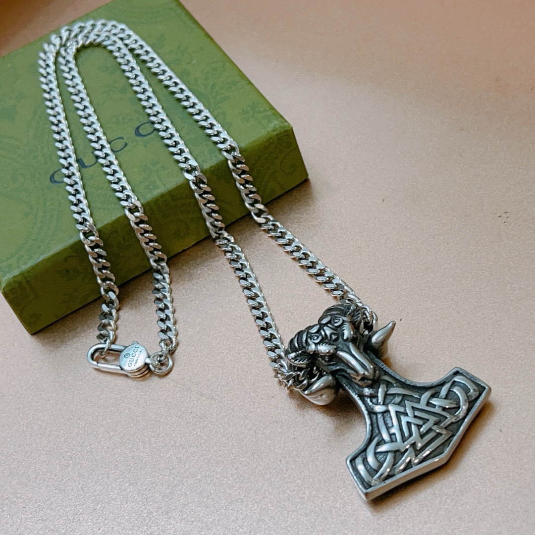 - Introducing the Gucci Silver Thor's Hammer Pendant Necklace