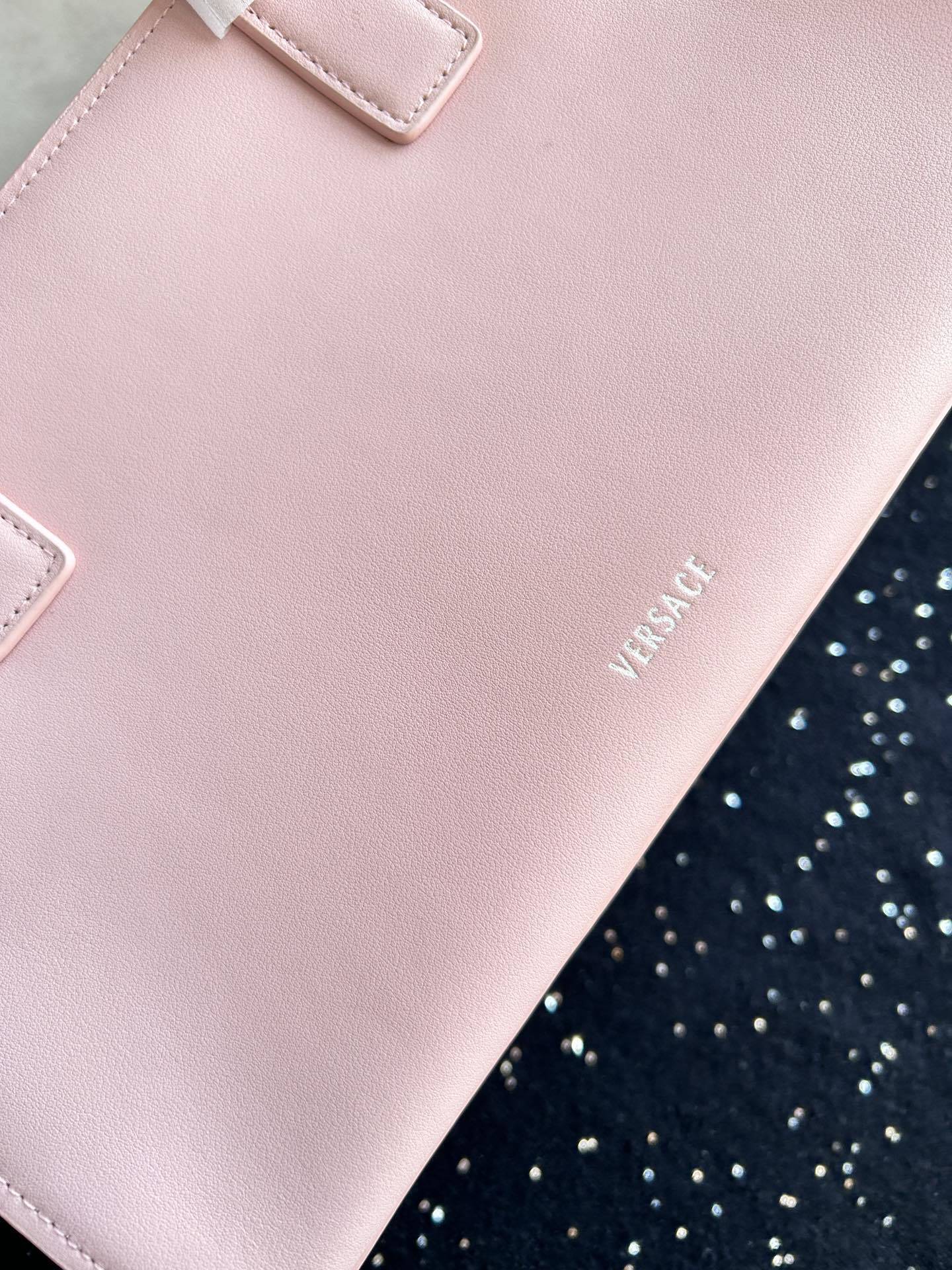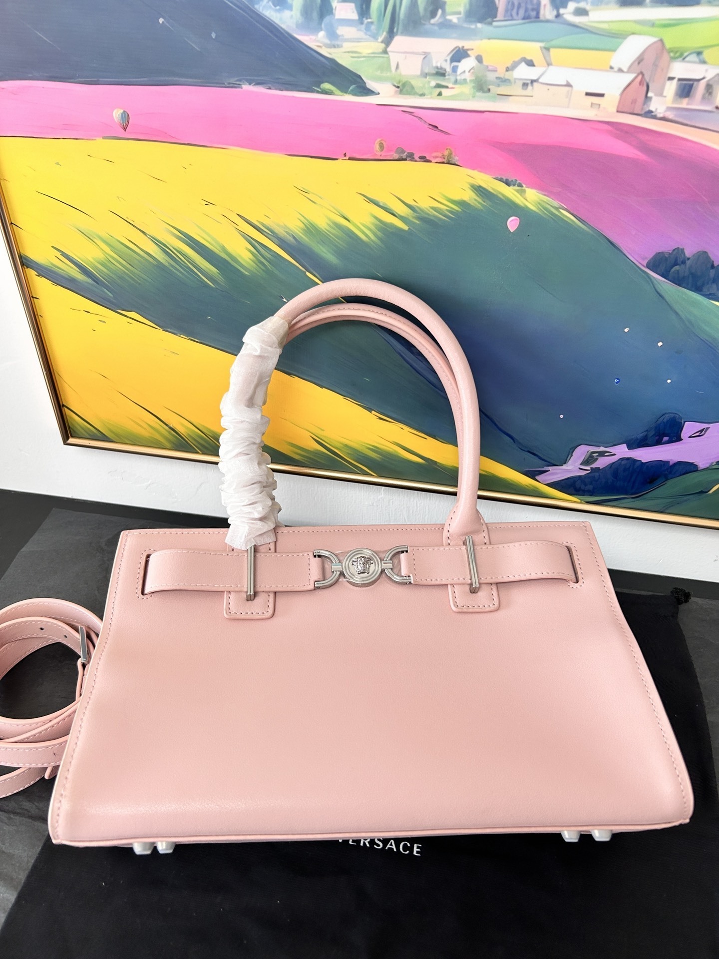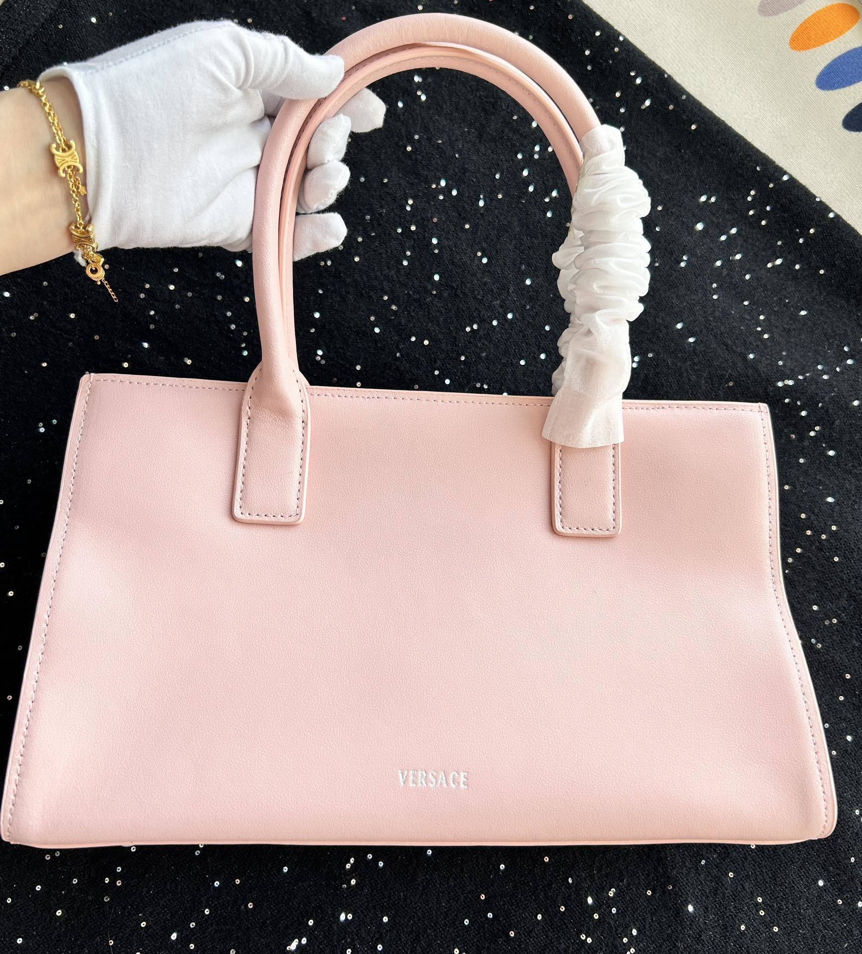 Versace Pink Leather Handbag: Luxury 2024 Medusa Buckle Tote