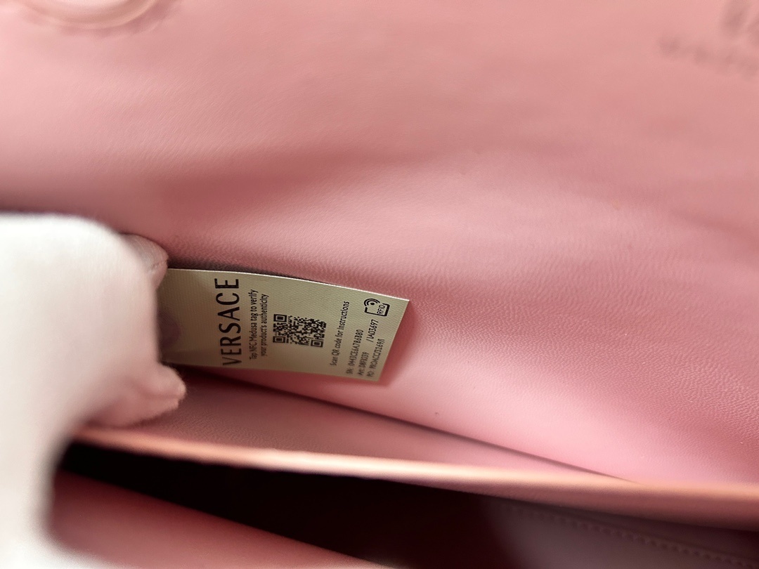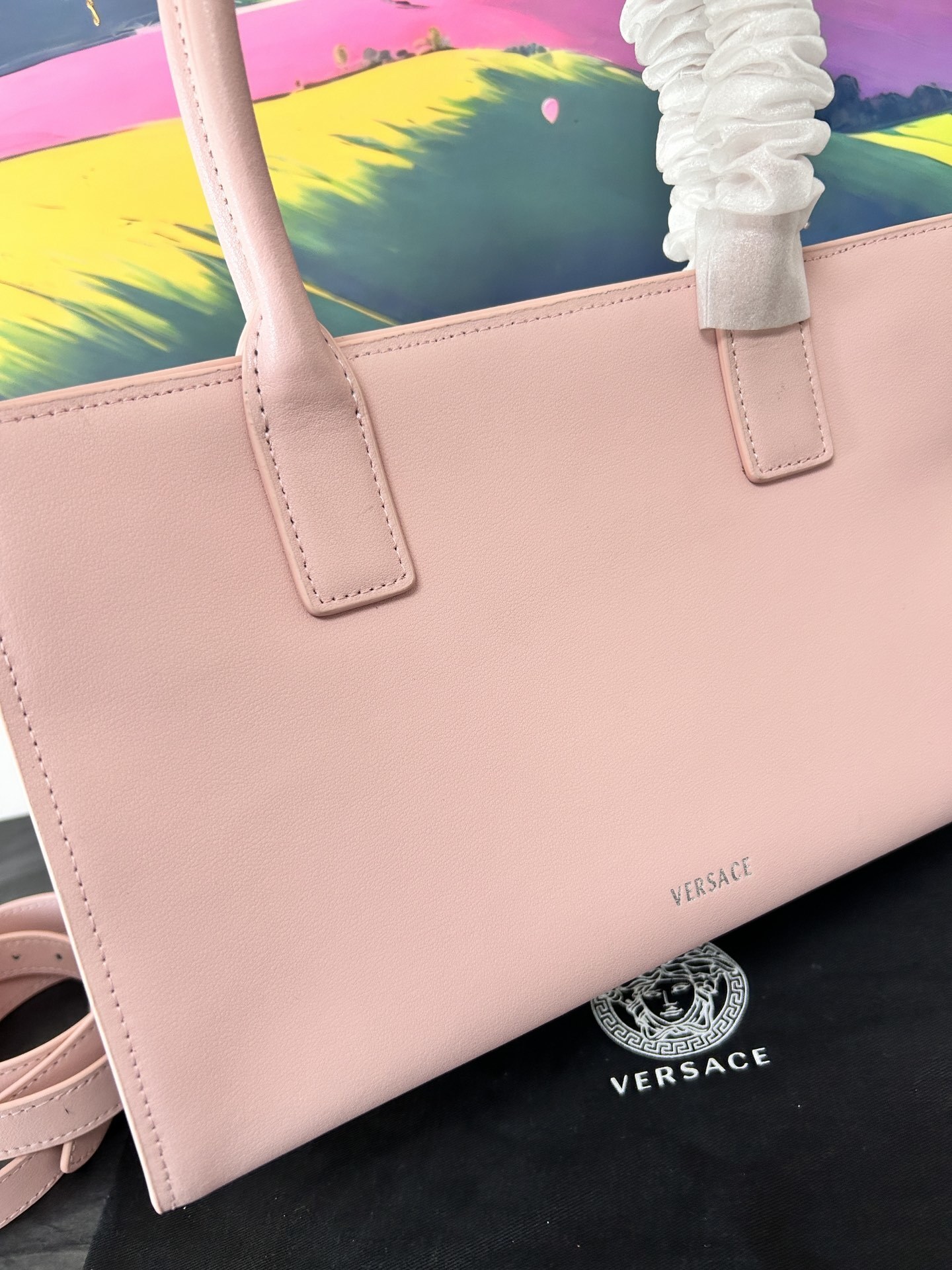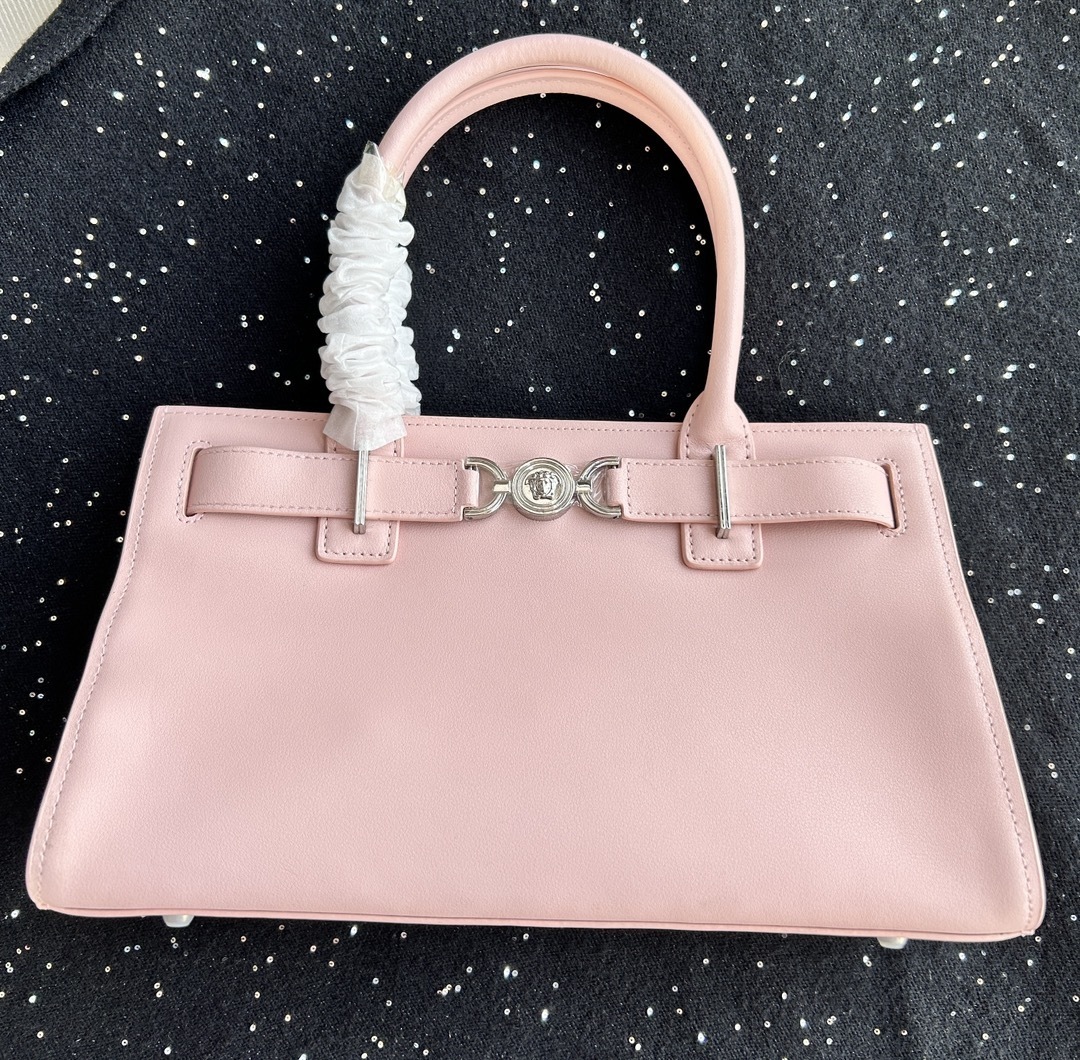 Versace Pink Leather Handbag: Luxury 2024 Medusa Buckle Tote