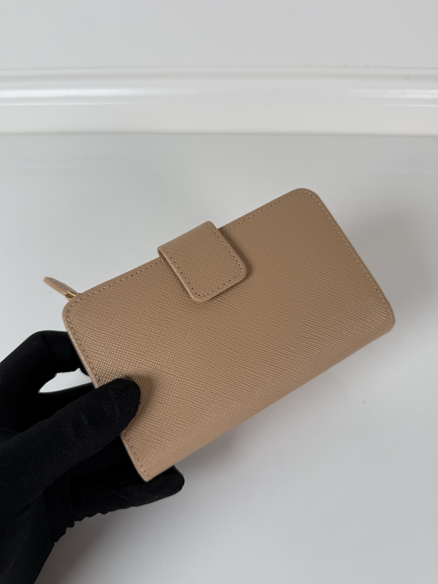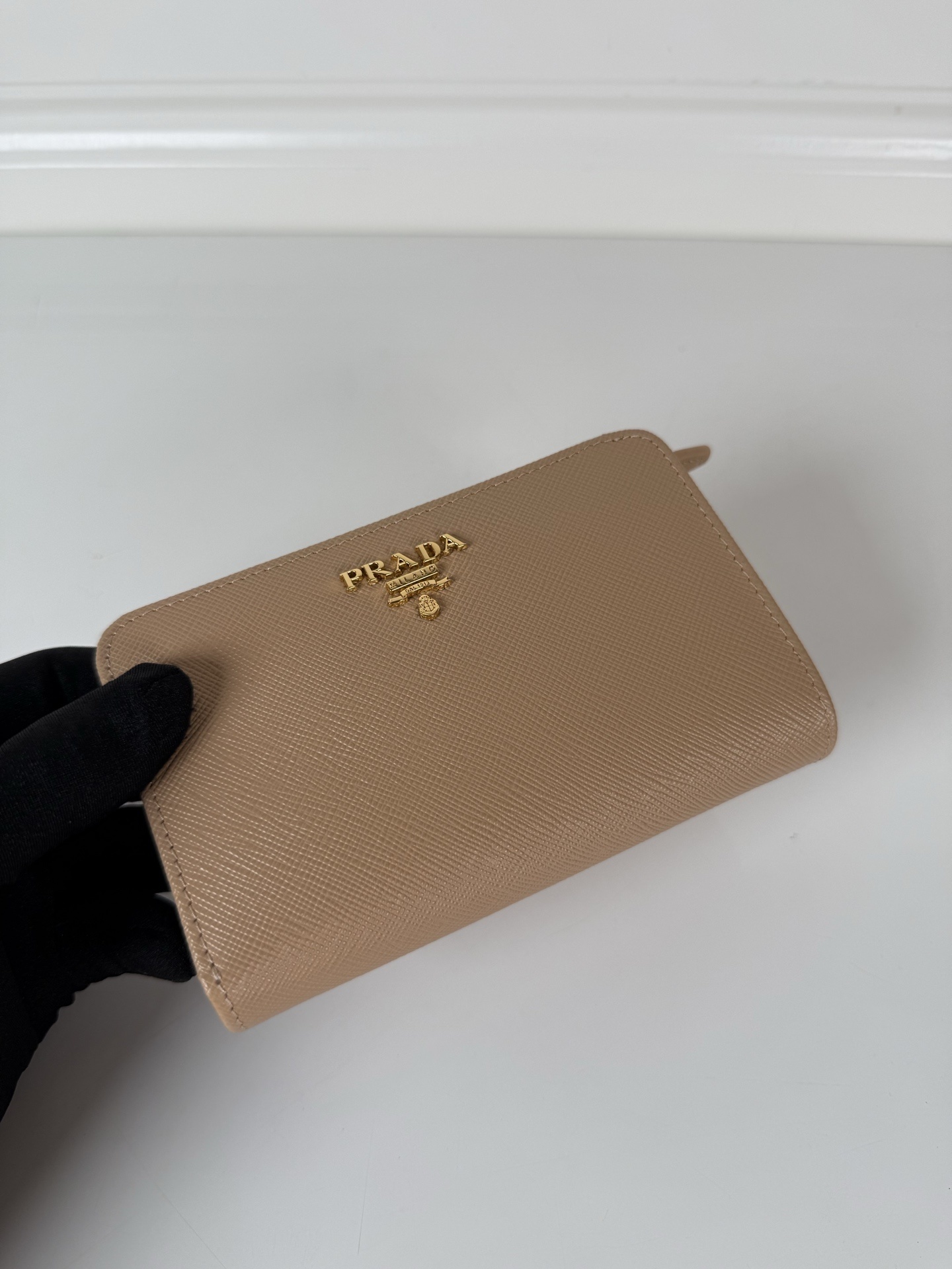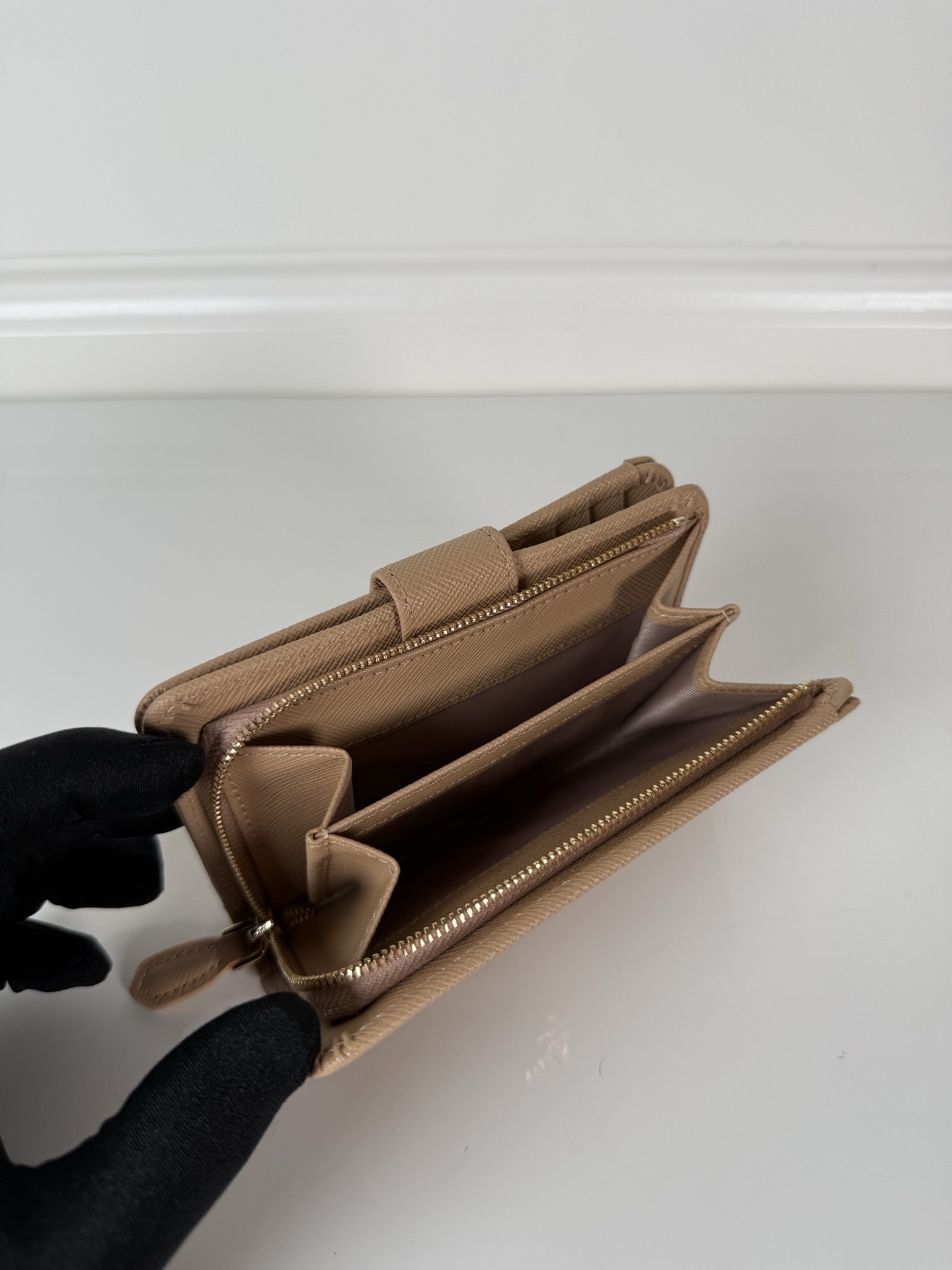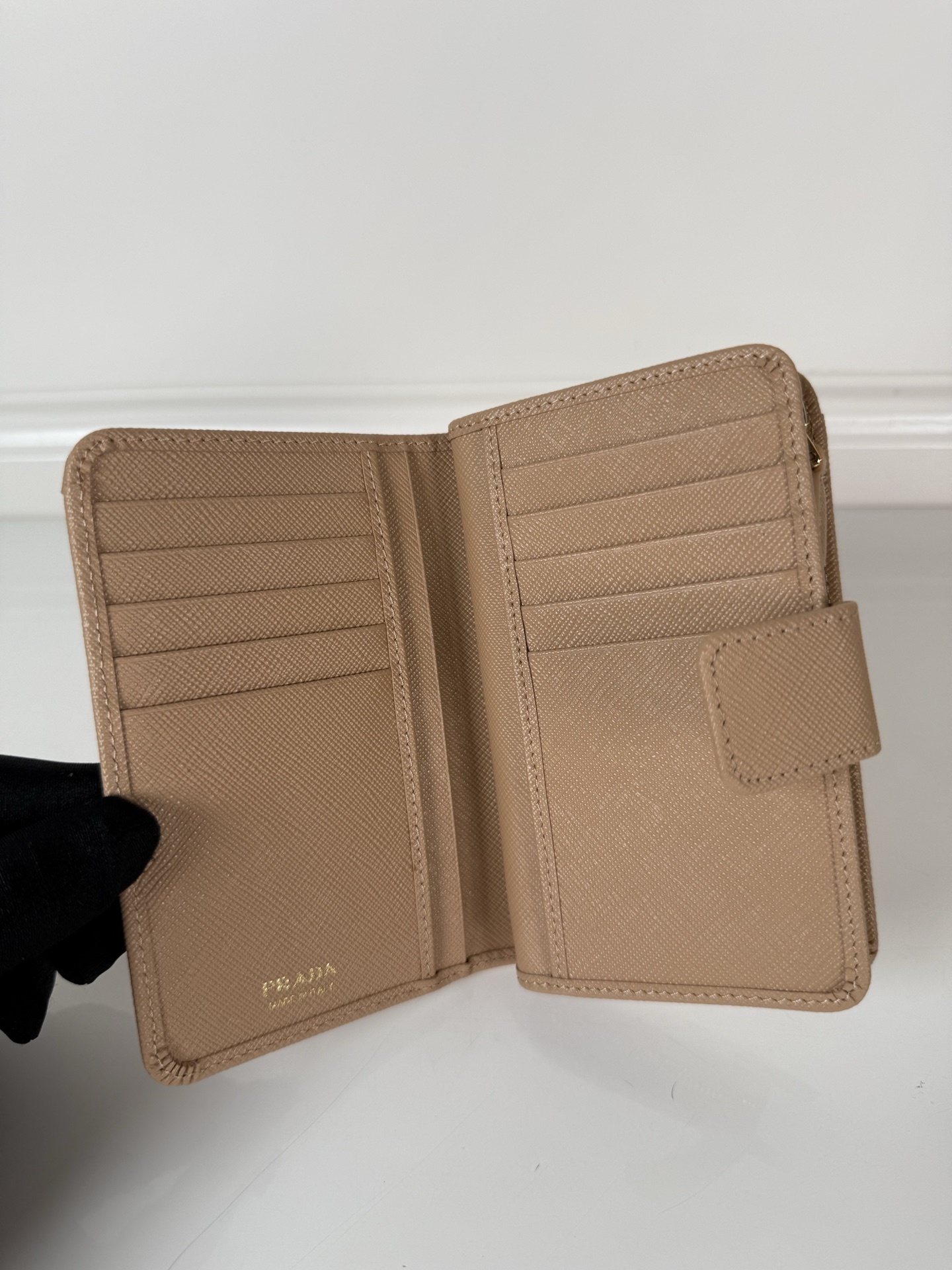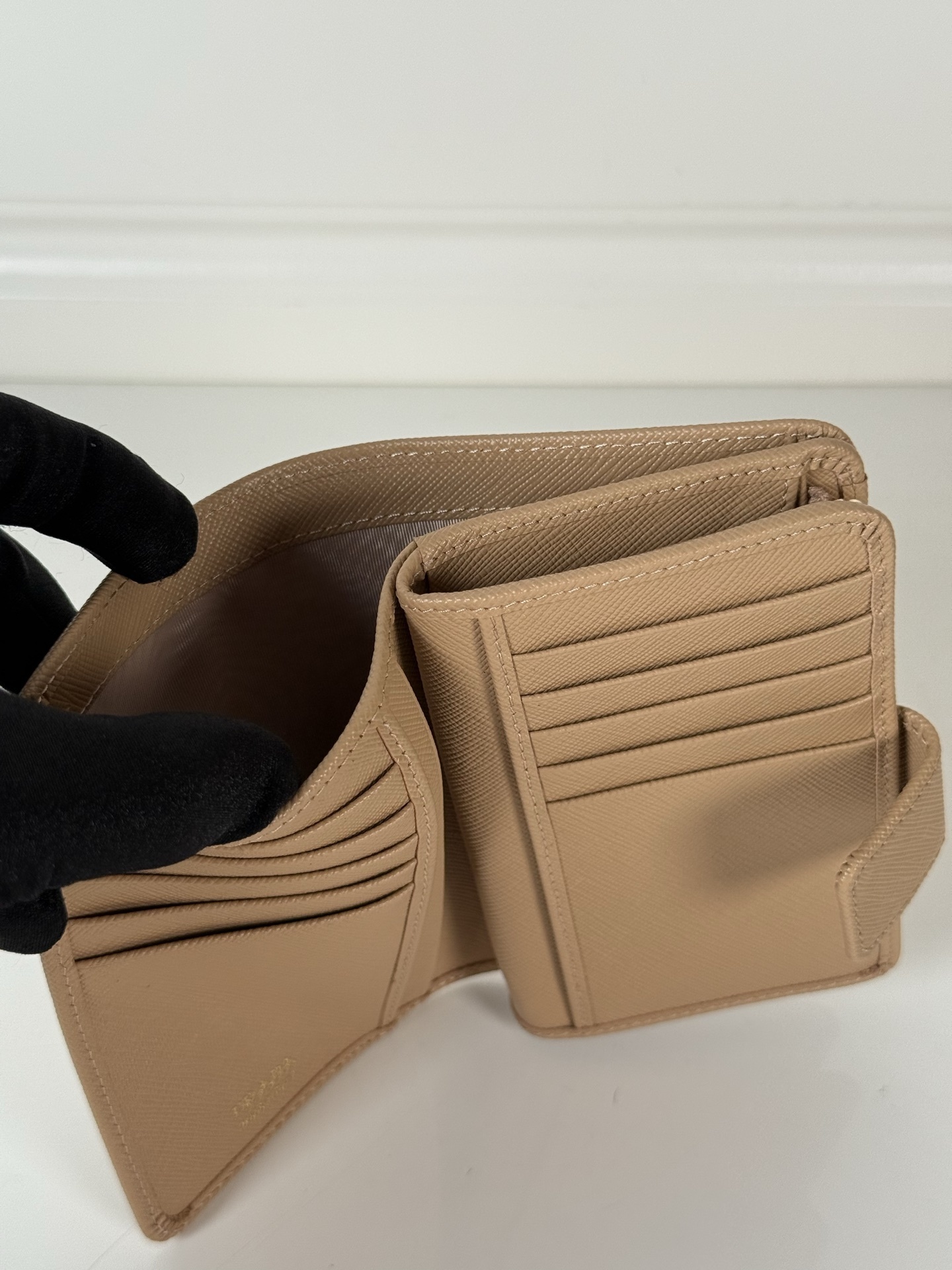 Prada Beige Saffiano Leather Wallet Compact - Authentic