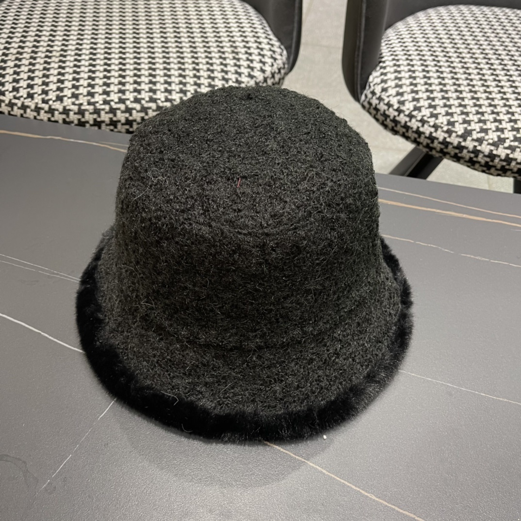 - Prada Black Faux Fur Bucket Hat designer Features