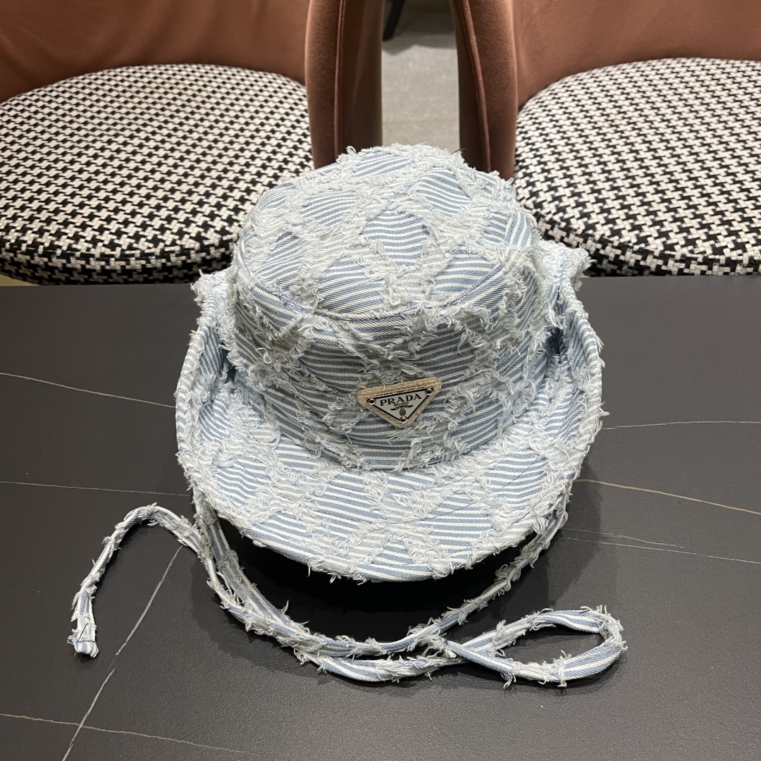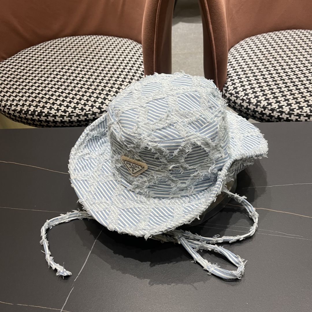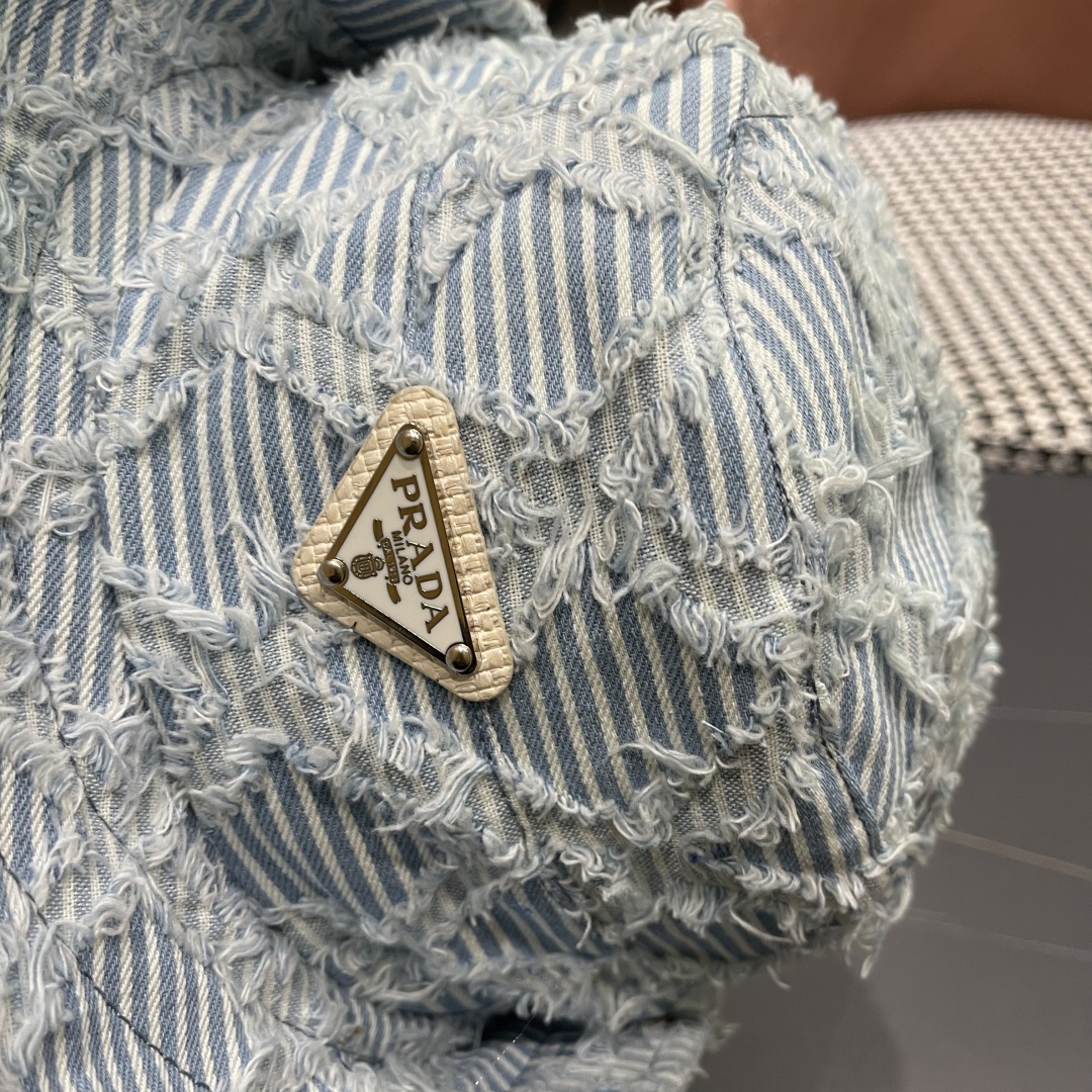 The Prada Blue Striped Denim Bucket Hat boasts a timeless style that transcends fleeting trends. Its classic design, combined with modern elements like distressed edges, makes it a versatile accessory that can be worn for years to come. Whether you're dressing up or dressing down, this hat will always add a touch of sophistication to your outfit.