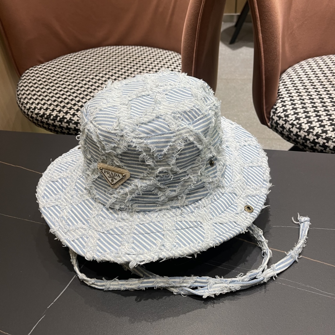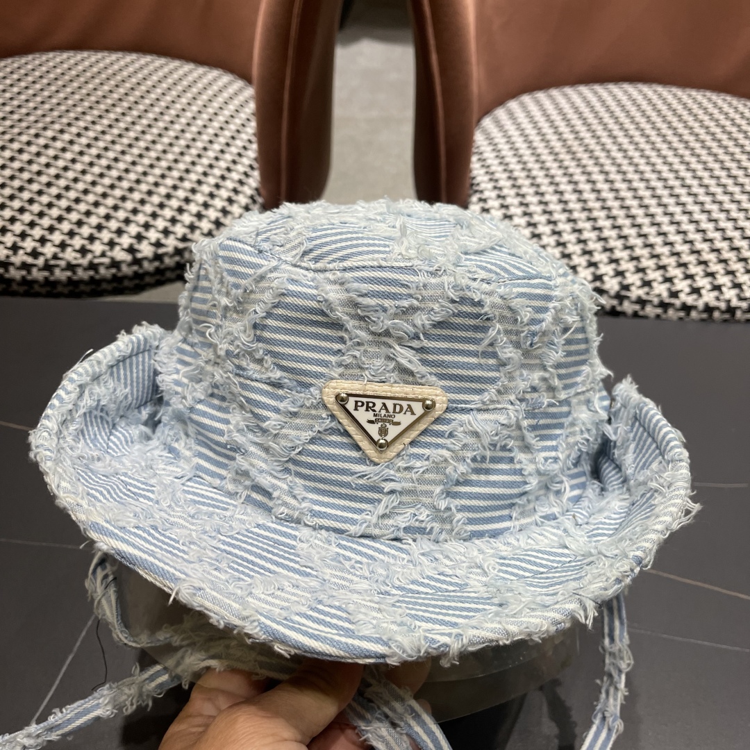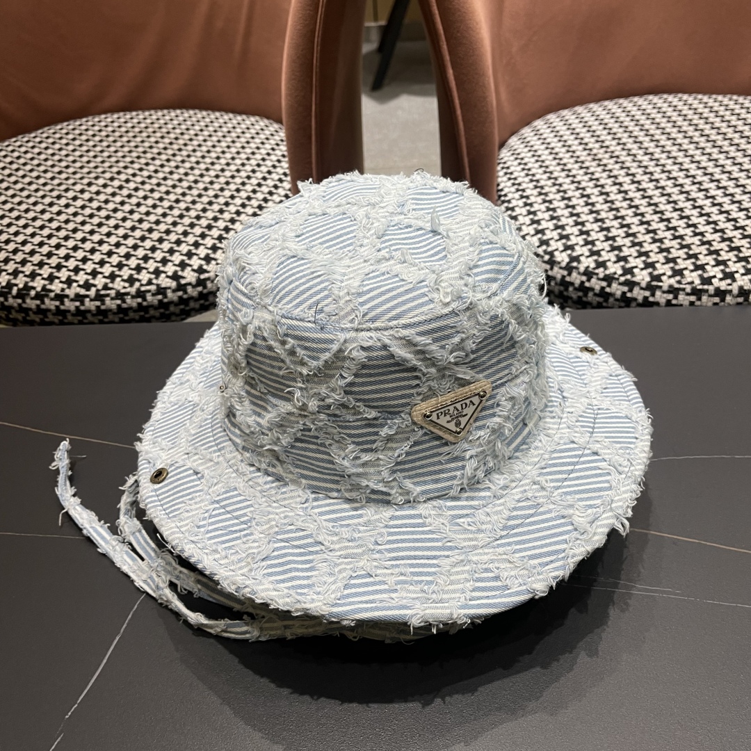 The Prada Blue Striped Denim Bucket Hat boasts a timeless style that transcends fleeting trends. Its classic design, combined with modern elements like distressed edges, makes it a versatile accessory that can be worn for years to come. Whether you're dressing up or dressing down, this hat will always add a touch of sophistication to your outfit.