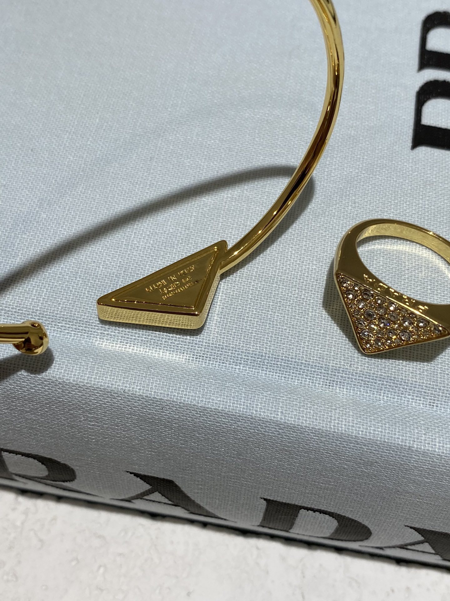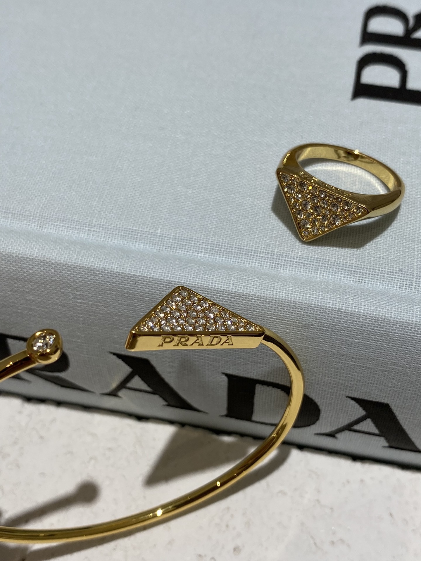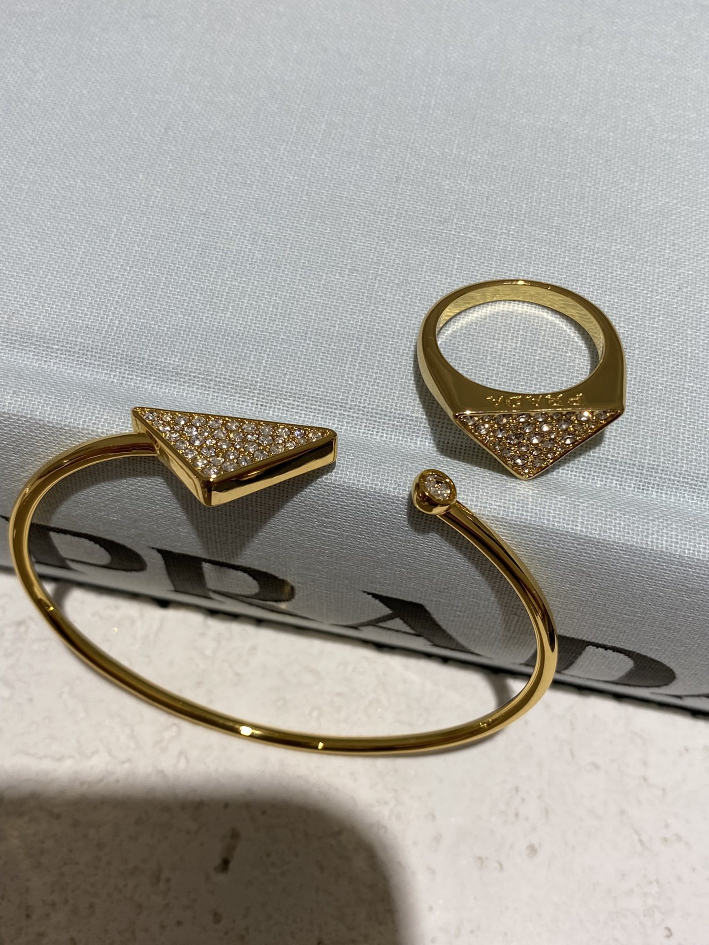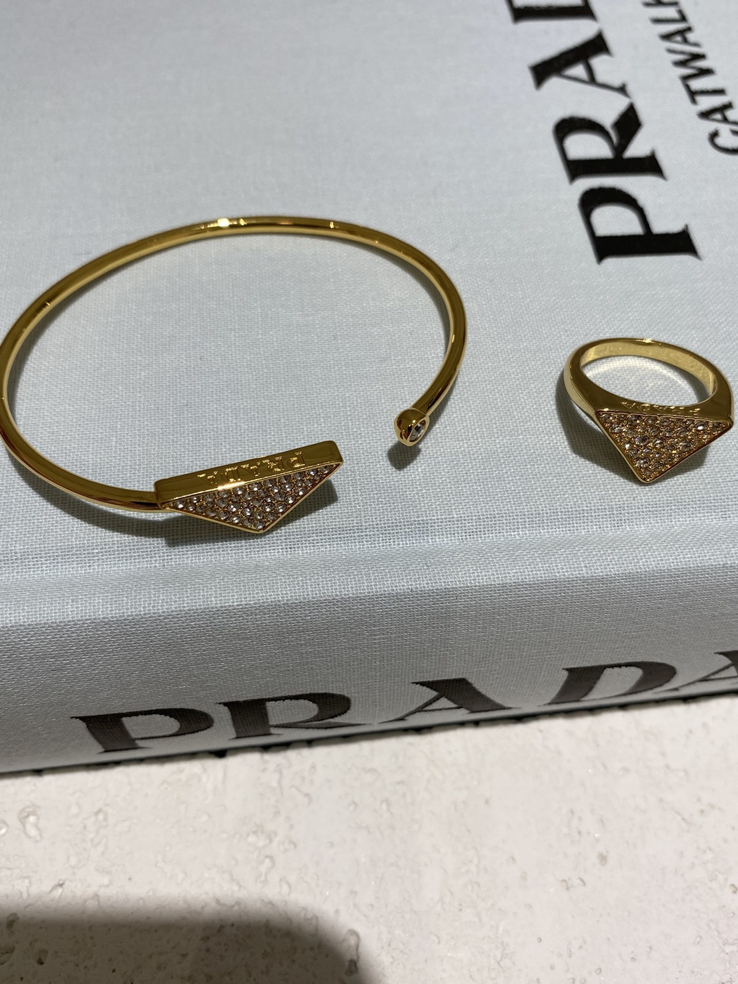 - Introducing the Prada Gold Crystal Triangle Jewelry Set