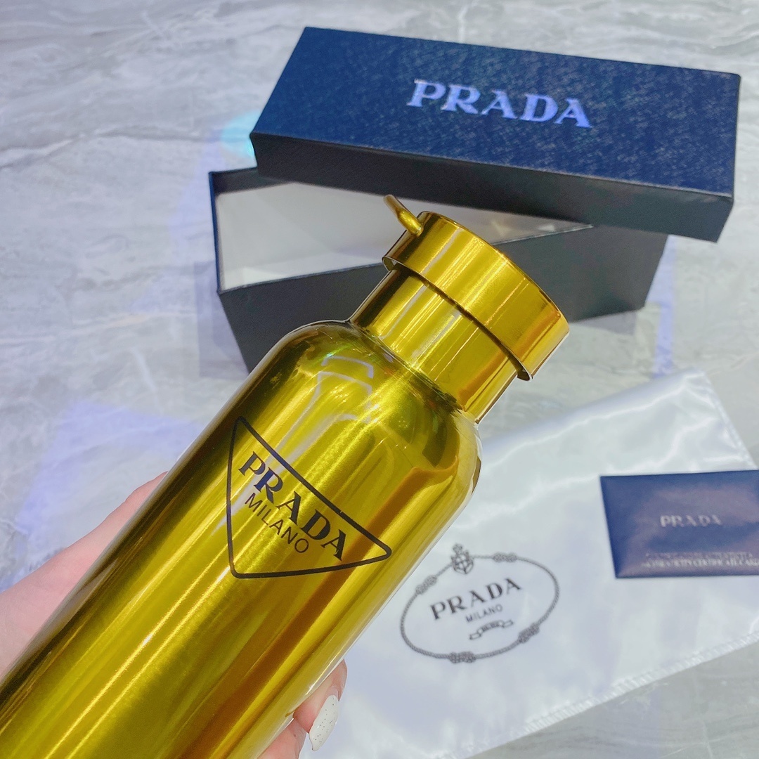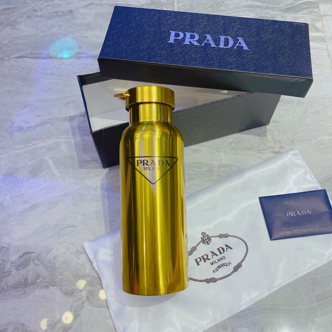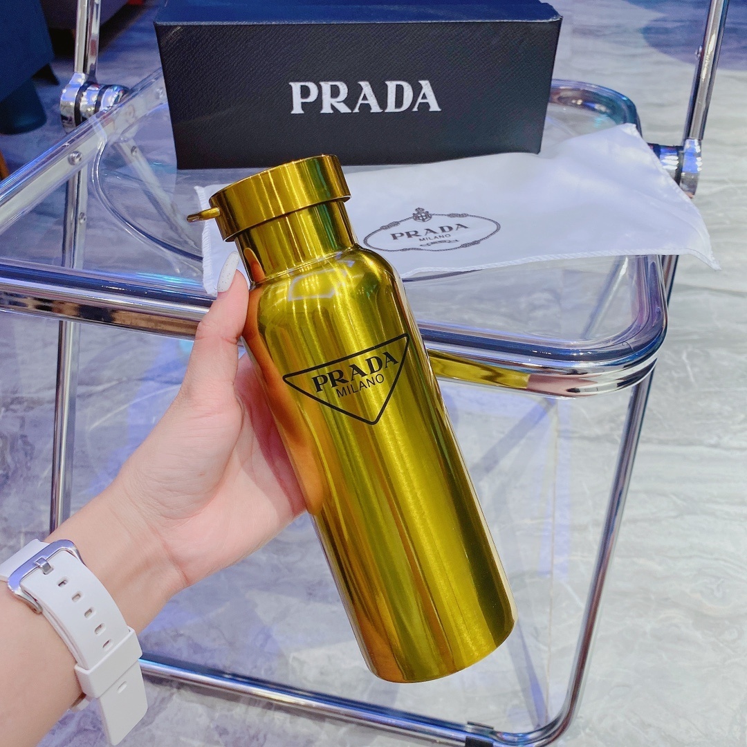 Prada Gold Water Bottle steel - The Prada Gold Stainless Steel Water Bottle is the epitome of luxury and functionality. This exquisite water bottle combines the practicality of a high-quality, durable container with the sophisticated aesthetic that Prada is renowned for. Crafted from premium stainless steel and finished with a lustrous gold coating, this water bottle is more than just a hydration tool; it's a statement piece. Perfect for those who appreciate the finer things in life, the Prada Gold Stainless Steel Water Bottle is an ideal accessory for staying hydrated in style. Whether you're at the gym, in the office, or traveling, this bottle adds a touch of elegance to your everyday routine. The bottle features the iconic Prada logo prominently displayed, showcasing your discerning taste and appreciation for high-end fashion.