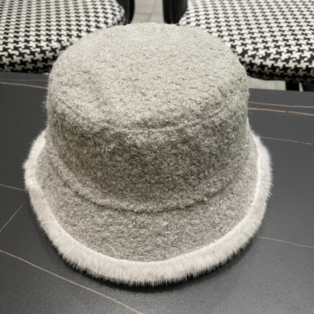Prada Gray Faux Fur Bucket Hat designer - Elevate your winter style with the luxurious and chic Prada Gray Faux Fur Bucket Hat. This designer headwear piece combines warmth, comfort, and high fashion, making it the perfect accessory for any stylish individual. Crafted from premium faux fur, this bucket hat offers a soft and plush feel while providing excellent insulation against the cold. The neutral gray color makes it versatile and easy to pair with a wide range of outfits, ensuring you always look effortlessly elegant. This **Prada Gray Faux Fur Bucket Hat** is a must-have addition to your wardrobe.