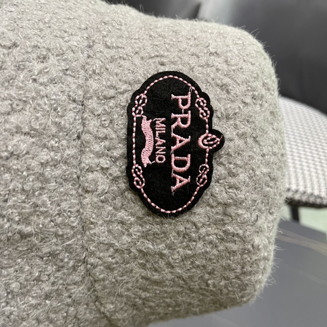 This exquisite bucket hat boasts several remarkable features that set it apart from ordinary headwear. The high-quality faux fur material is not only incredibly soft but also environmentally friendly, offering a guilt-free alternative to real fur. The classic bucket hat design is updated with a modern twist, featuring a slightly wider brim for added sun protection and a contemporary silhouette. The interior is lined with a smooth, breathable fabric to ensure maximum comfort, even during extended wear. The subtle Prada logo adds a touch of understated luxury, making this hat a true statement piece.