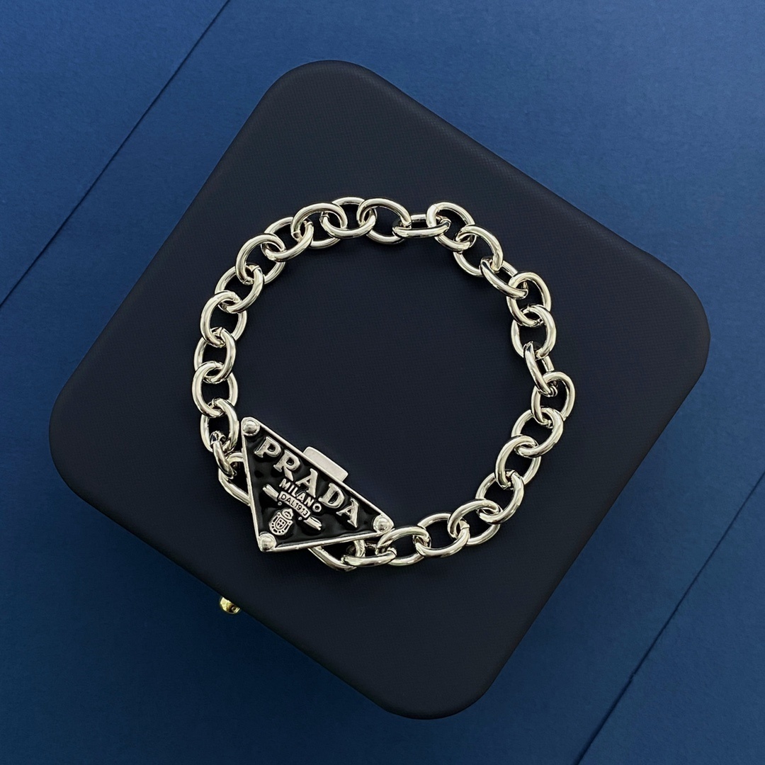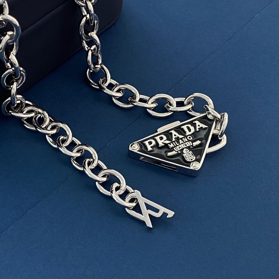 Prada Silver Chain Necklace fashion - Elevate your style with the iconic Prada Silver Chain Triangle Logo Necklace. This statement piece combines timeless elegance with a modern edge, making it a must-have accessory for any fashion enthusiast. Featuring a sleek silver chain and the signature Prada triangle logo pendant, this necklace exudes sophistication and luxury. Whether you're dressing up for a special occasion or adding a touch of glamour to your everyday look, this necklace is sure to turn heads. The Prada Silver Chain Triangle Logo Necklace is not just an accessory; it's a symbol of prestige and impeccable taste, reflecting the wearer's appreciation for high-end fashion and quality craftsmanship.