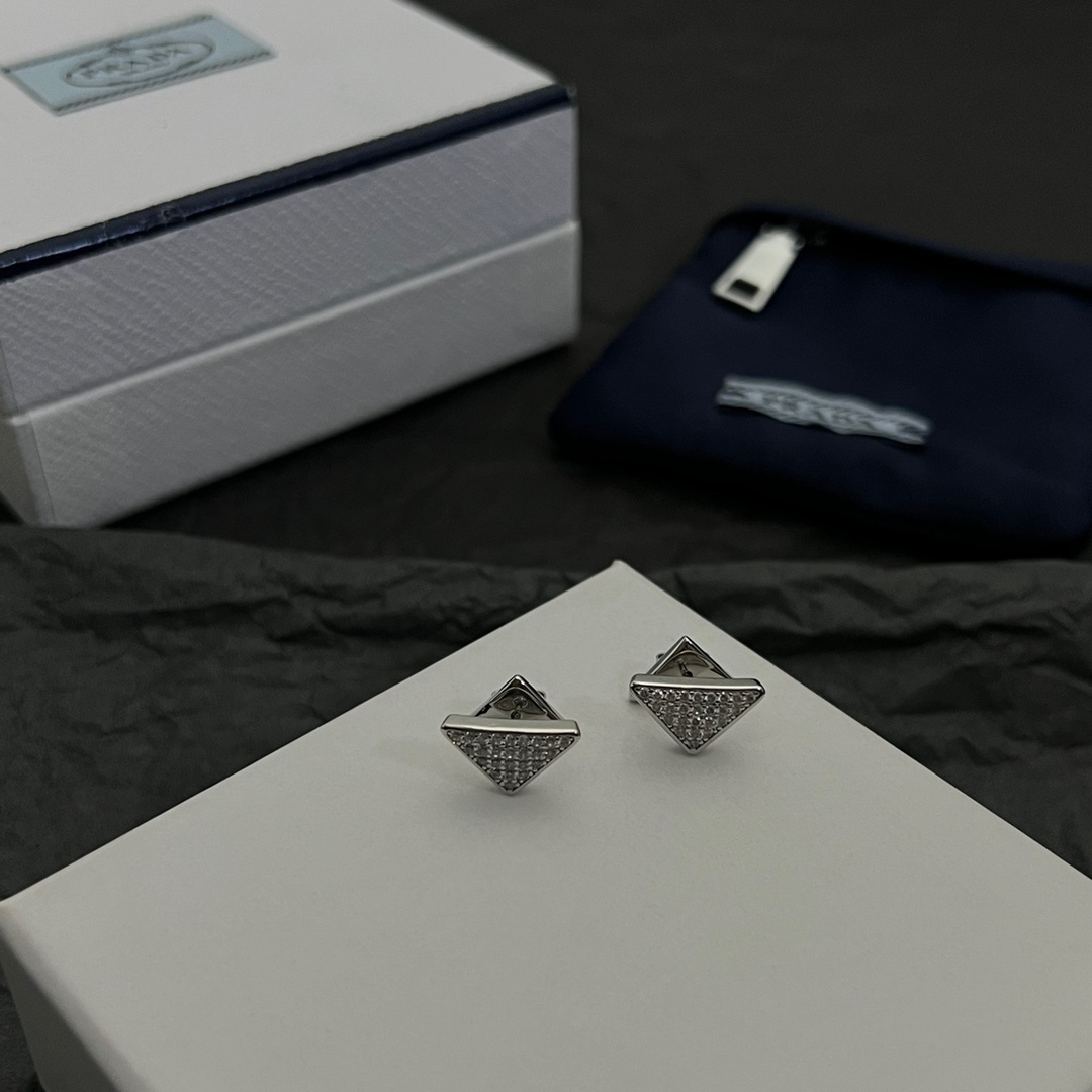 Prada Silver Triangle Earrings stud - Elevate your style with the iconic Prada Silver Triangle Stud Earrings. These earrings are a testament to Prada's commitment to minimalist elegance and high-quality craftsmanship. Featuring the signature triangle logo, these studs are a subtle yet powerful statement piece that adds a touch of sophistication to any outfit. Whether you're dressing up for a special occasion or adding a refined touch to your everyday look, these earrings are the perfect accessory.
