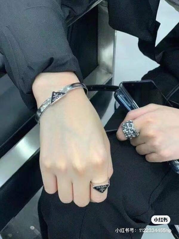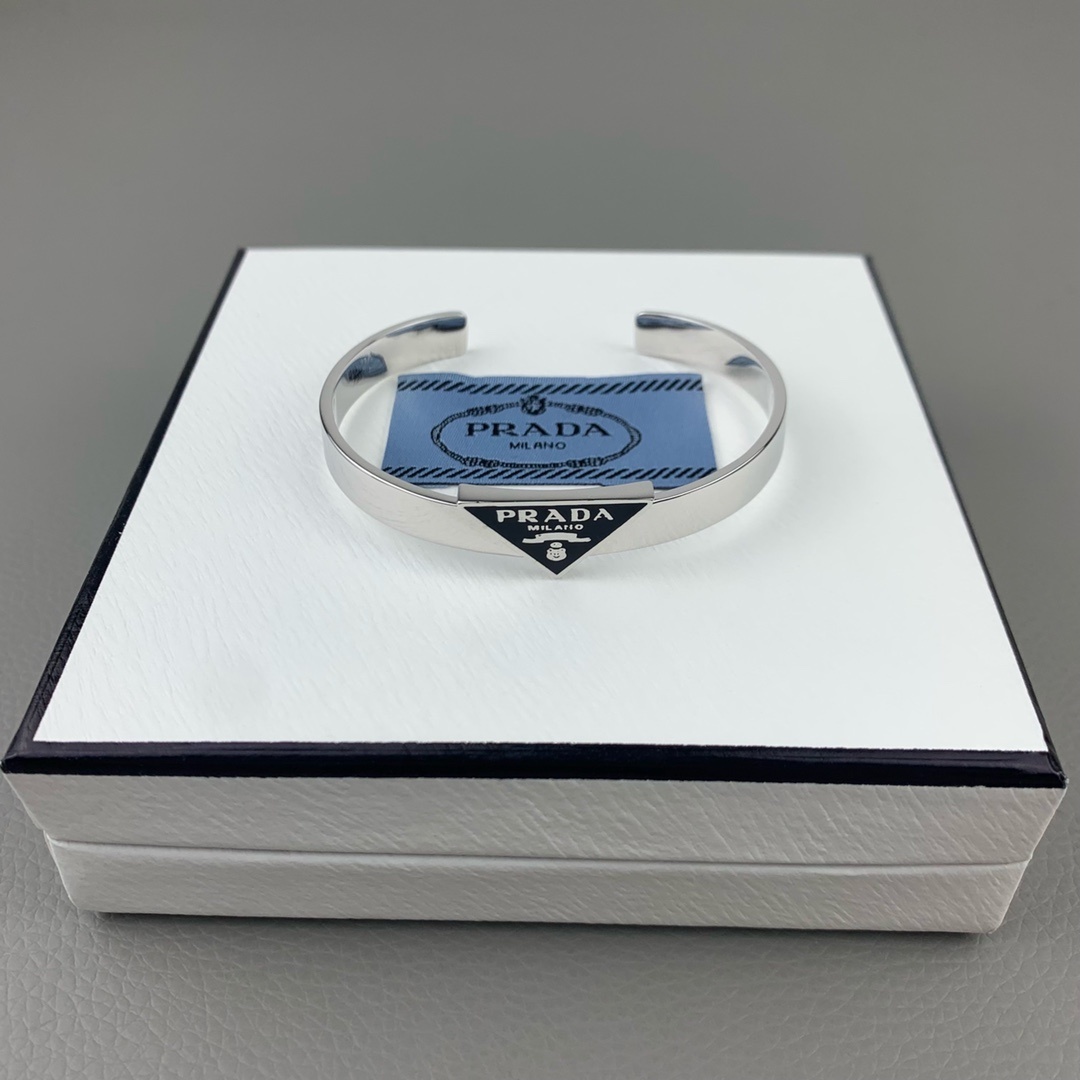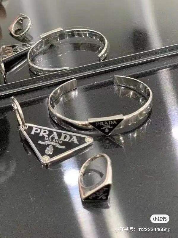 - Introducing the Prada Silver Triangle Logo Bangle & Ring Set