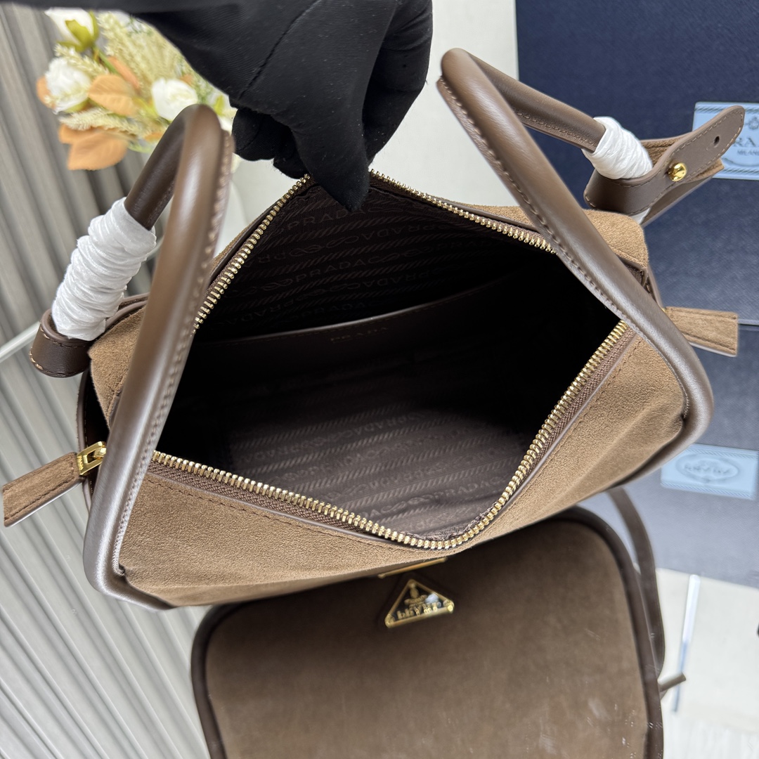 The Prada Suede Brown Mini Handbag is designed with meticulous attention to detail, ensuring both style and functionality. The soft suede exterior offers a tactile experience, while the sturdy leather trim provides durability and structure. The compact size is ideal for carrying your phone, wallet, keys, and makeup, making it a practical choice for everyday use.
