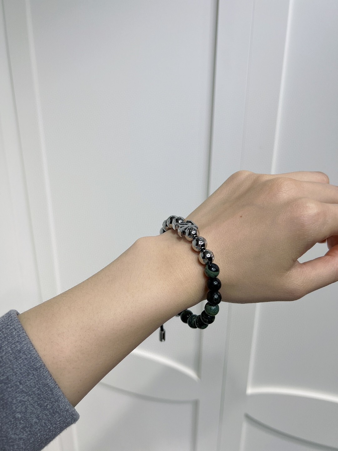 - Color: Green/Black Stone Beads, Silver Metal Beads