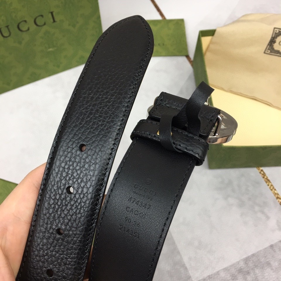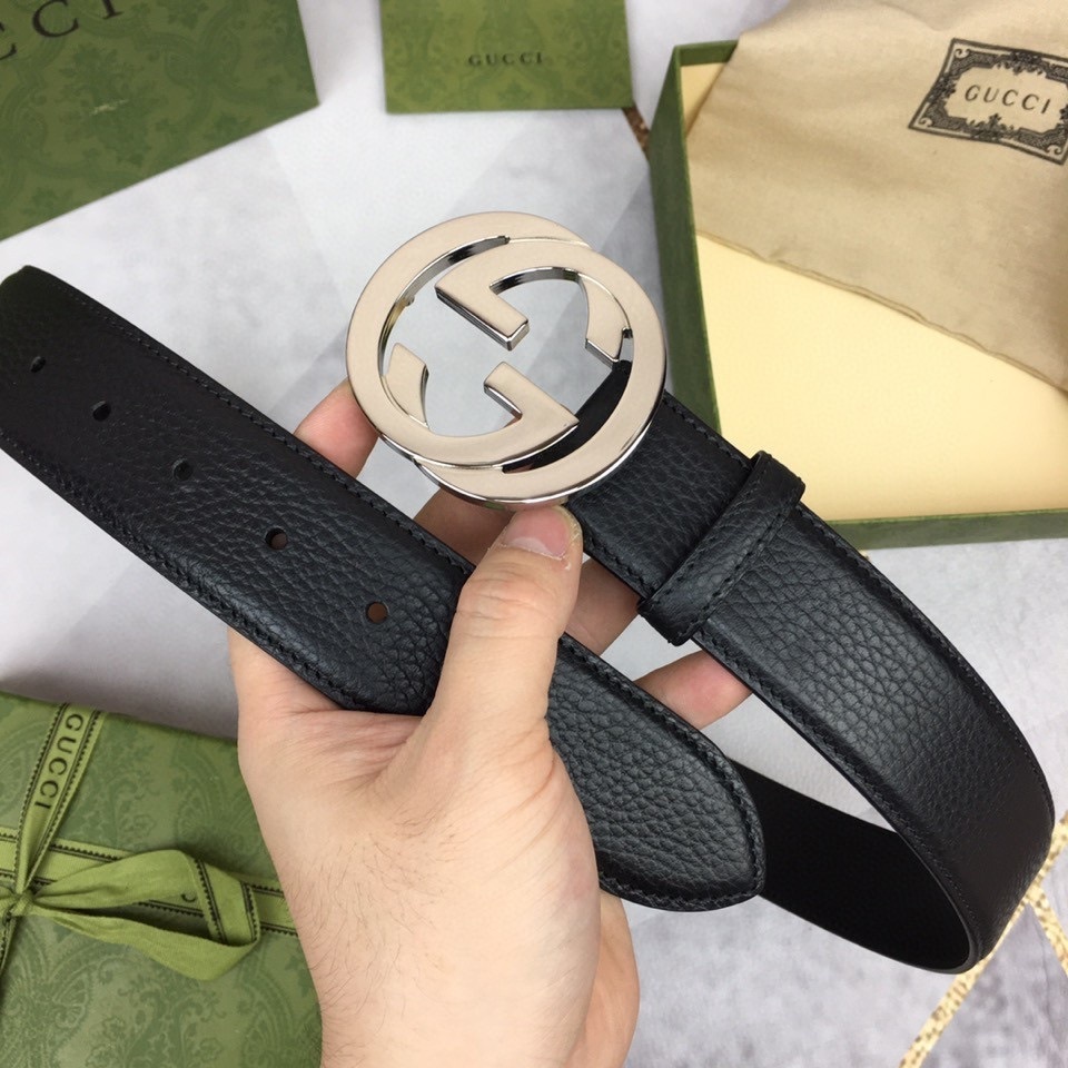 Premium Black Leather Belt with Iconic Silver Buckle