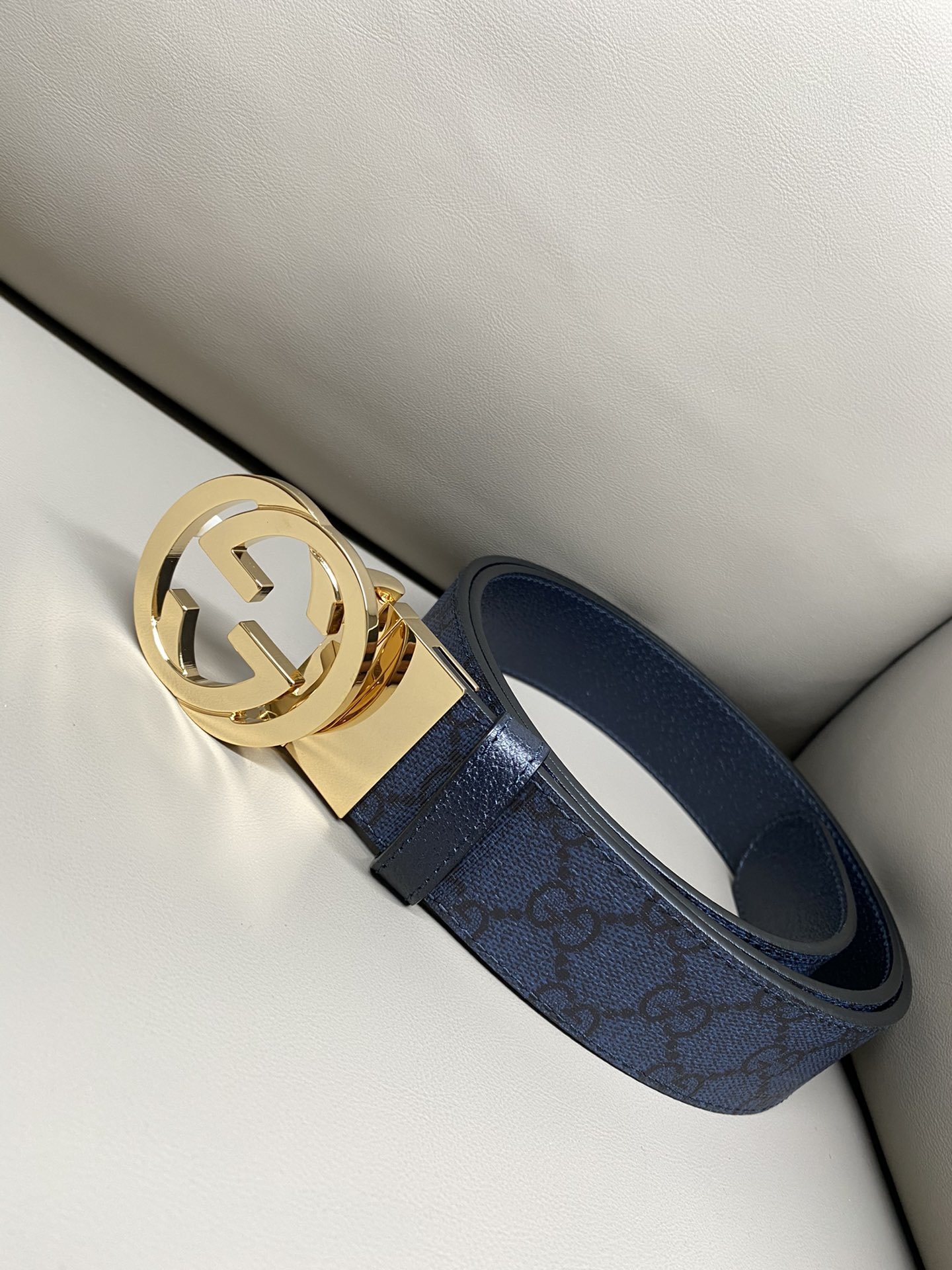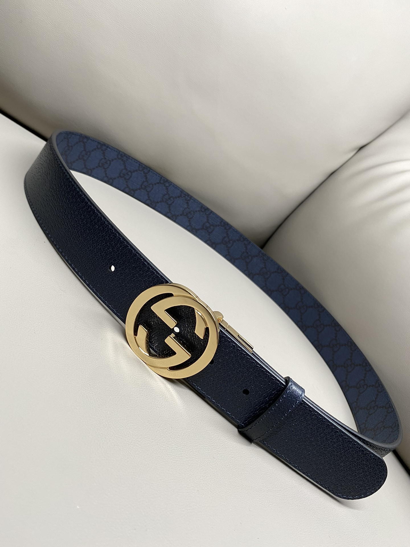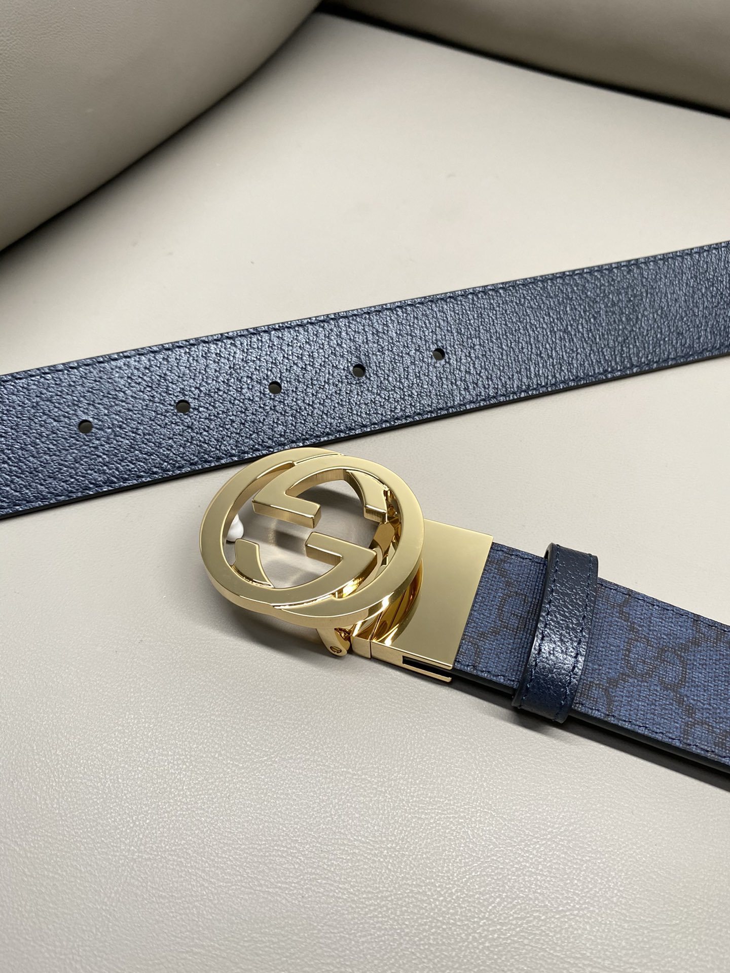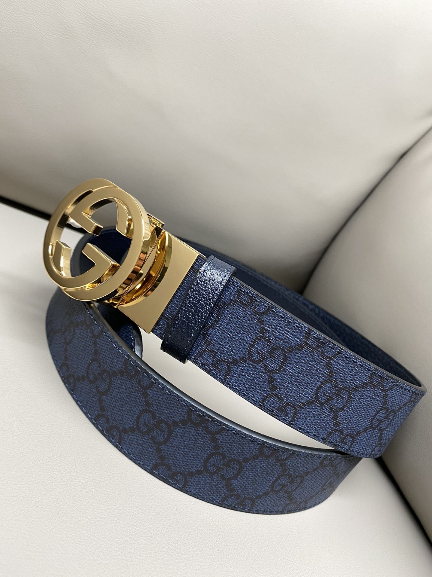 Premium Blue Patterned Leather Belt with Gold Buckle