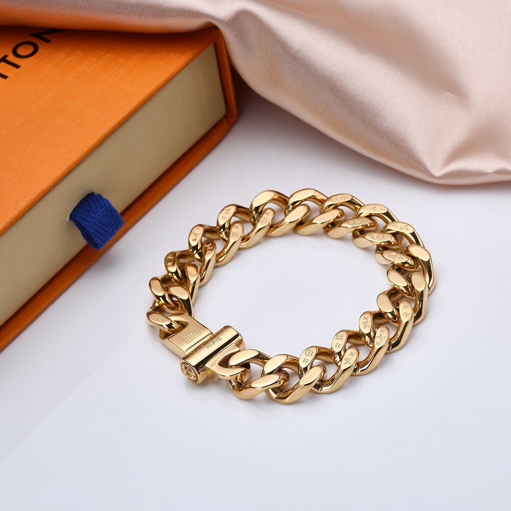 Each link is meticulously crafted to create a stunning visual impact. The robust chain design exudes confidence and strength, while the high-quality materials ensure lasting beauty. Available in both radiant gold and sleek silver finishes, this bracelet complements any outfit and personal style.