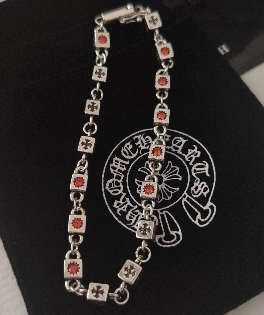 Each bracelet features a stunning array of colorful gemstones embedded within intricately designed chrome links. The combination of the cool chrome and vibrant gems creates a captivating contrast that is sure to turn heads. The secure clasp ensures a comfortable and confident fit, allowing you to wear it all day with ease.