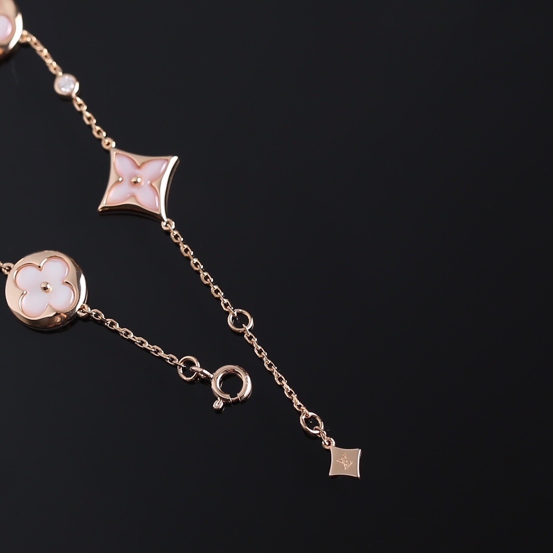 This bracelet features delicate clover motifs, each meticulously designed to catch the light and sparkle with brilliance. The intricate detailing and flawless finish showcase the exceptional craftsmanship that goes into every piece. The adjustable chain ensures a comfortable and secure fit for any wrist size.