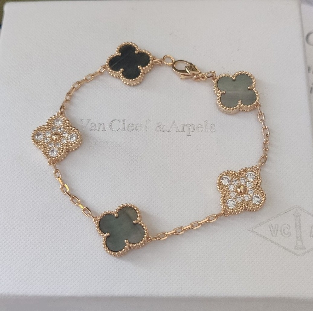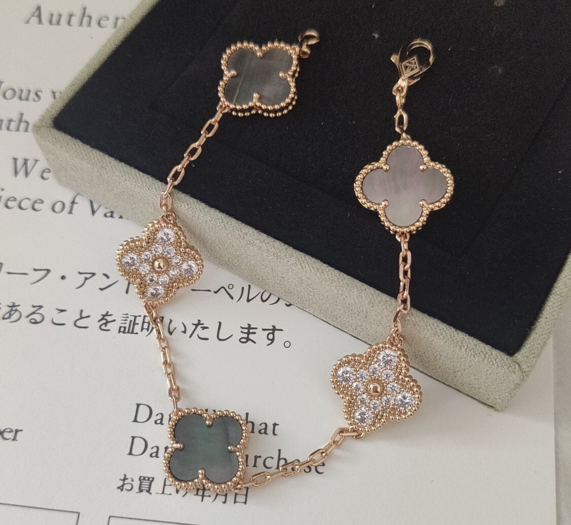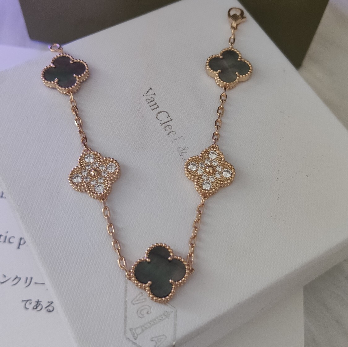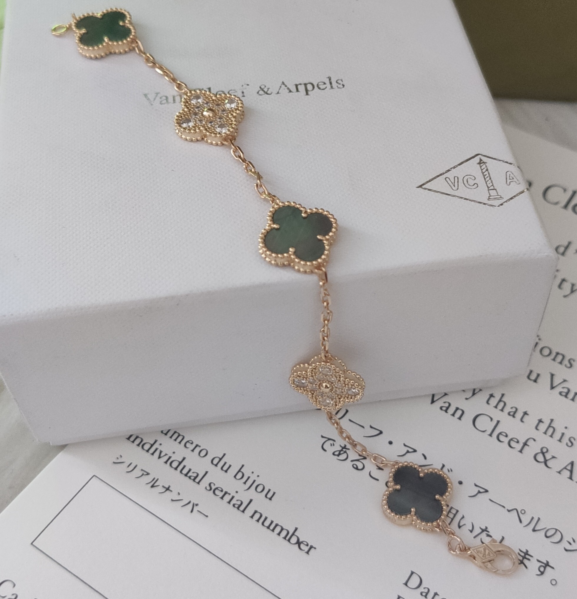 Indulge in the timeless beauty of our Premium Clover Bracelet, a sophisticated accessory designed to add a touch of luck and grace to any ensemble. Inspired by the iconic clover motif, this bracelet is meticulously crafted to exude luxury and refinement. Each clover is carefully detailed, ensuring a piece that is both eye-catching and enduring.