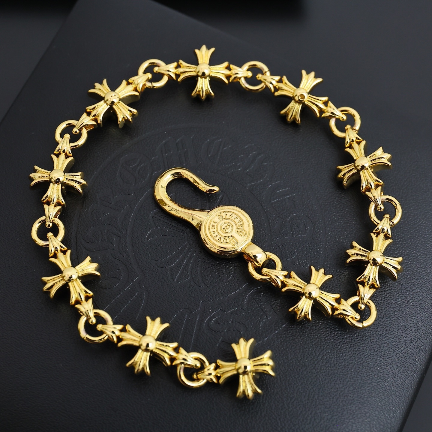 To maintain the brilliance of your Premium Cross Charm Bracelet, avoid contact with harsh chemicals, perfumes, and excessive moisture. Gently clean with a soft cloth after each wear and store in a jewelry box or pouch to prevent scratches.