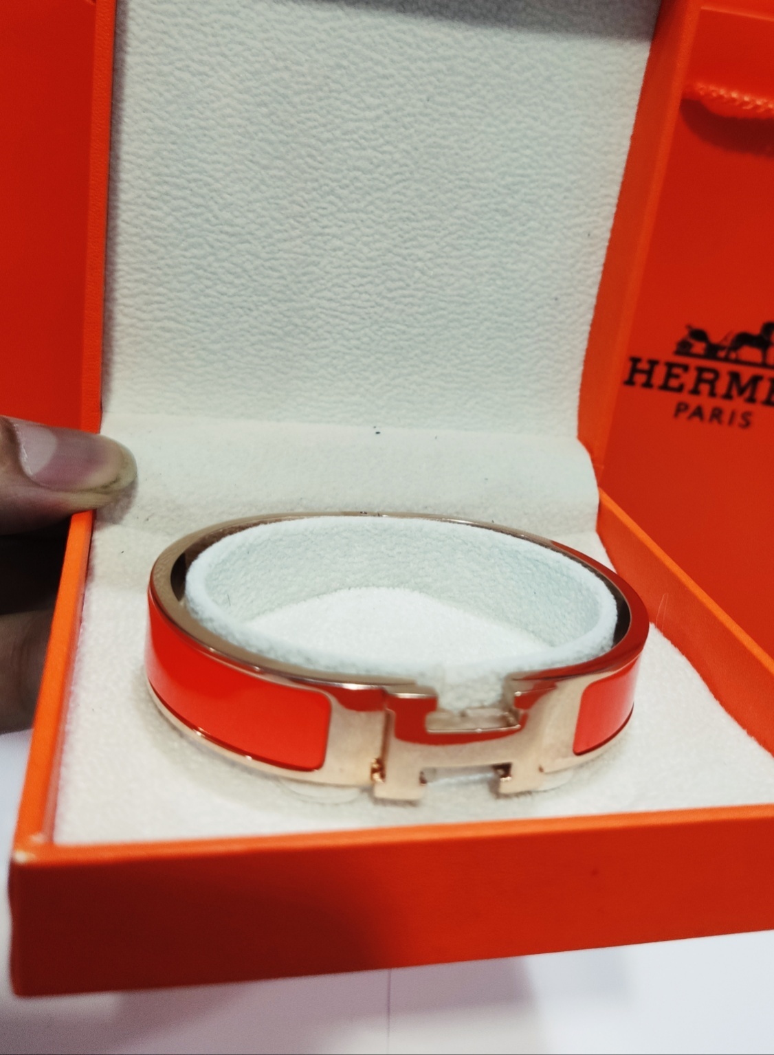 Indulge in the epitome of sophistication with our Premium Enamel "H" Bracelet. This stunning piece seamlessly blends timeless design with modern flair, making it the perfect accessory for any occasion. The iconic "H" motif, a symbol of heritage and style, is beautifully rendered in vibrant enamel and set against a lustrous gold-plated backdrop. Whether you're dressing up for a special event or adding a touch of glamour to your everyday look, this bracelet is sure to turn heads and spark conversations.