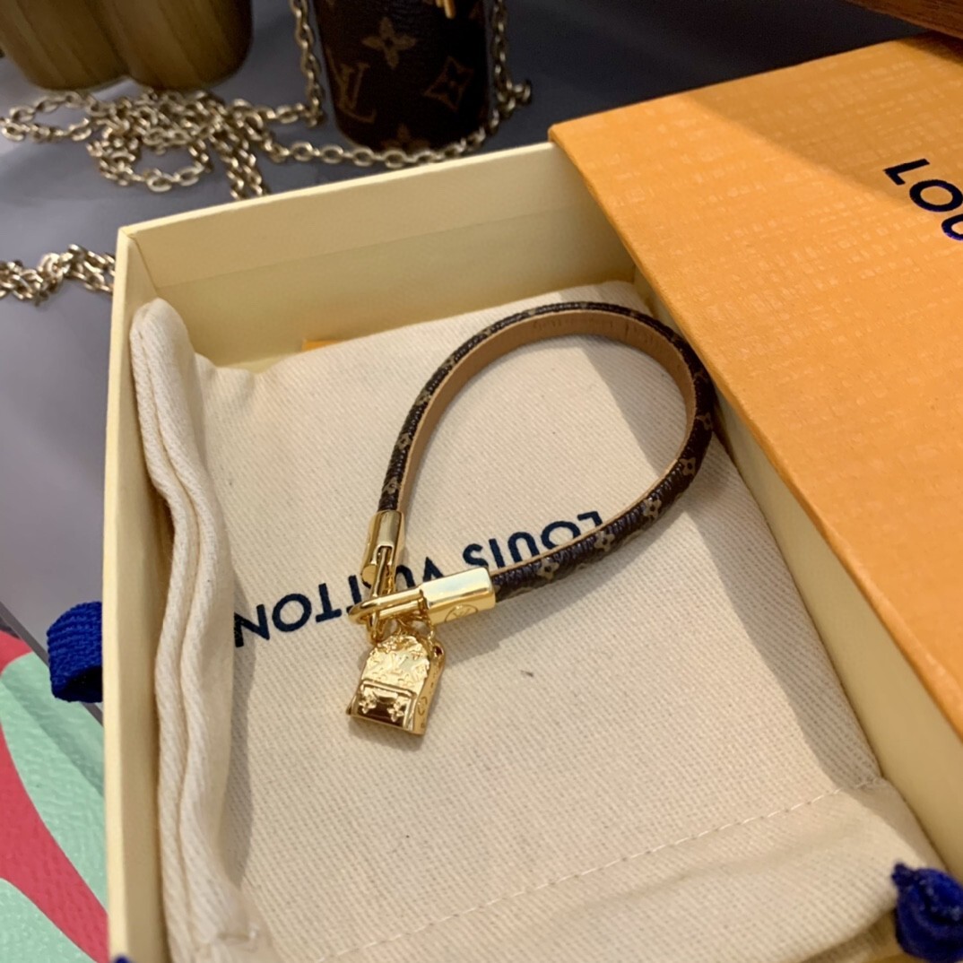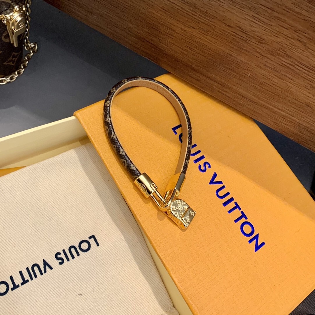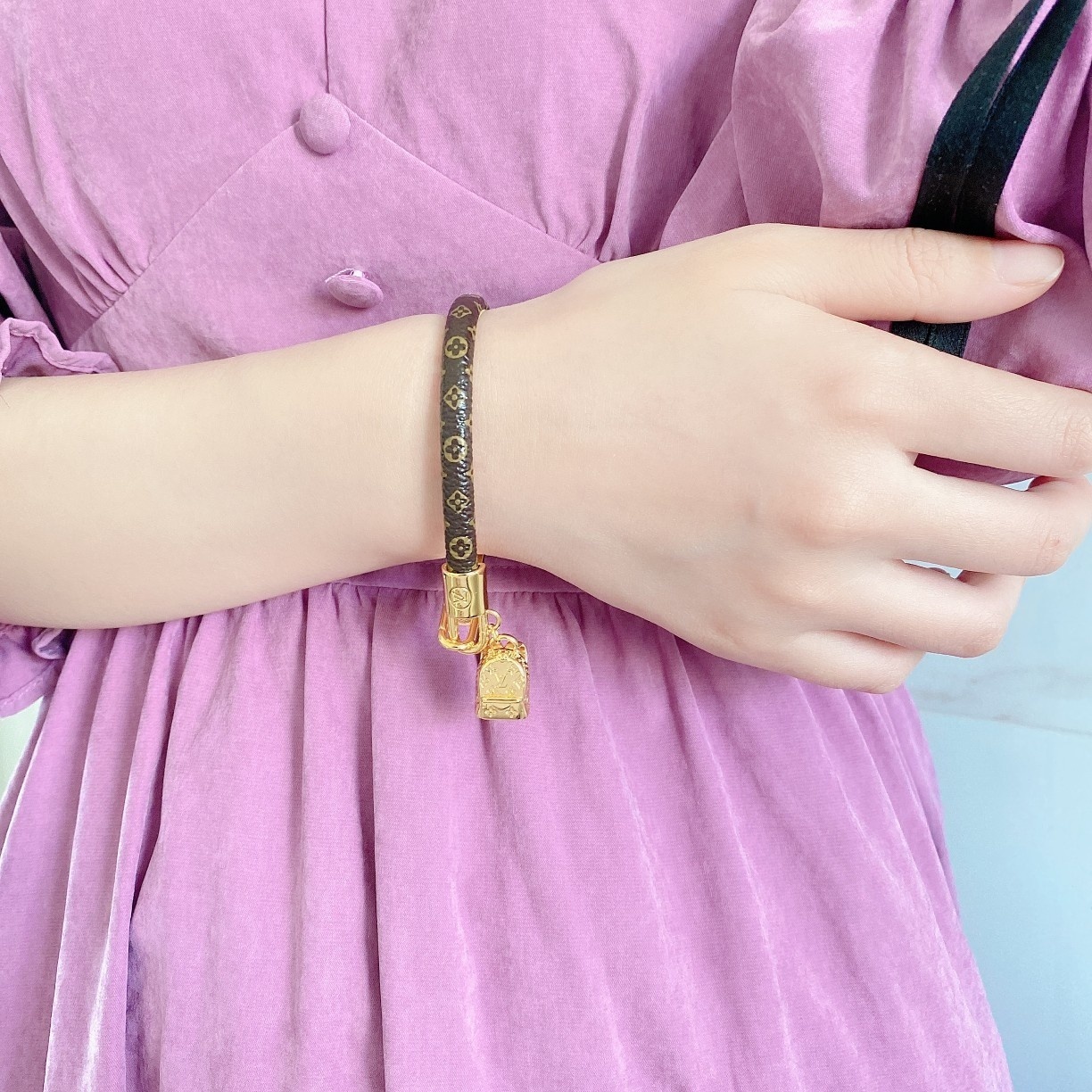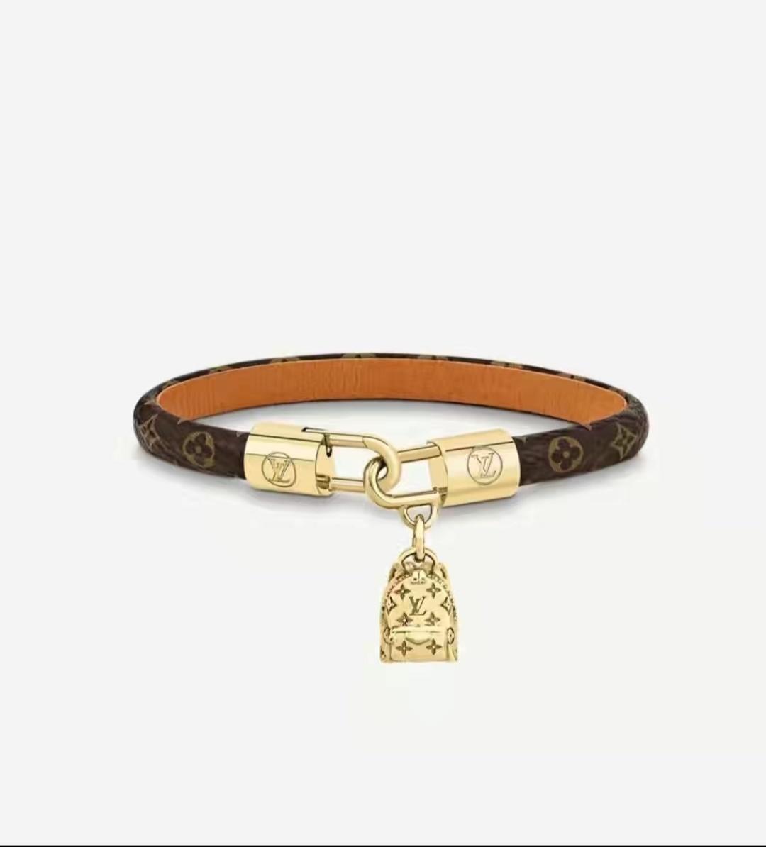 Crafted with meticulous attention to detail, this bracelet features a delicate monogram pattern on a premium material, complemented by a radiant gold charm. The combination of textures and tones creates a visually captivating piece that is sure to turn heads.