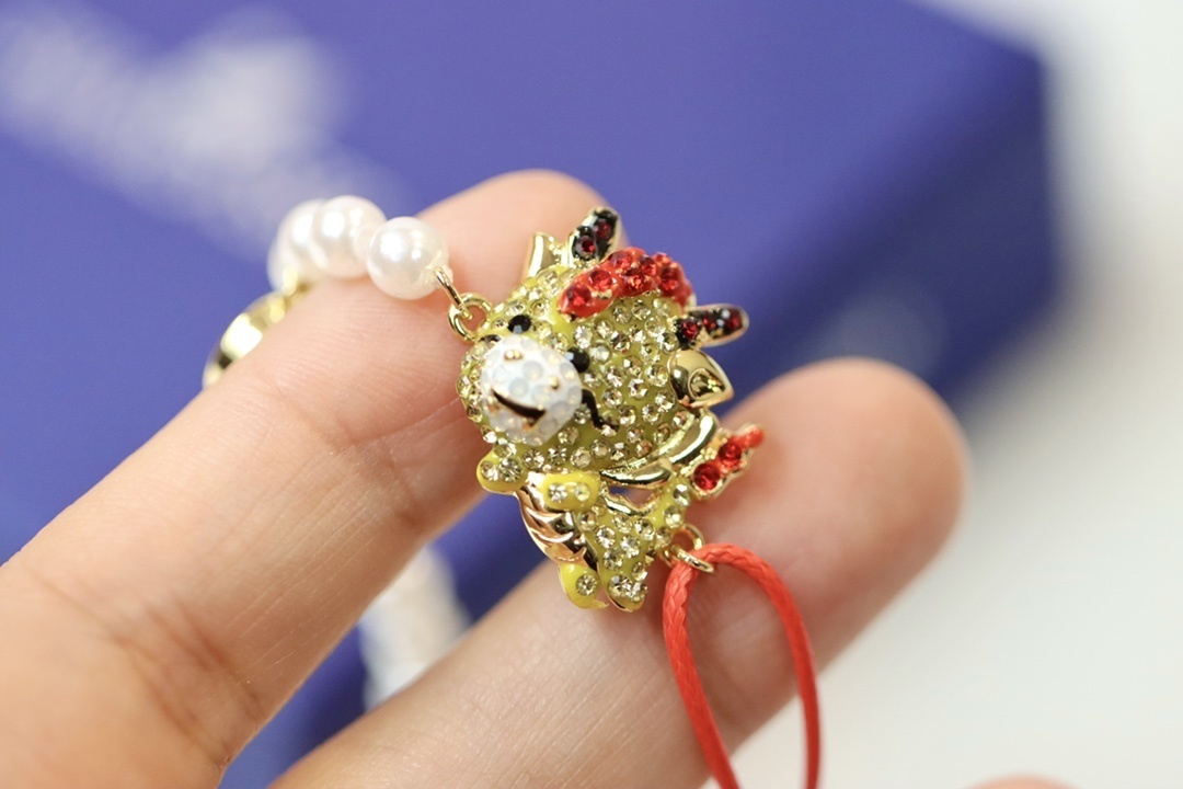 - Intricate Dragon Charm: The intricately designed dragon charm, embellished with sparkling crystals, symbolizes power, wisdom, and good fortune. Its golden hue adds a touch of opulence to the bracelet.