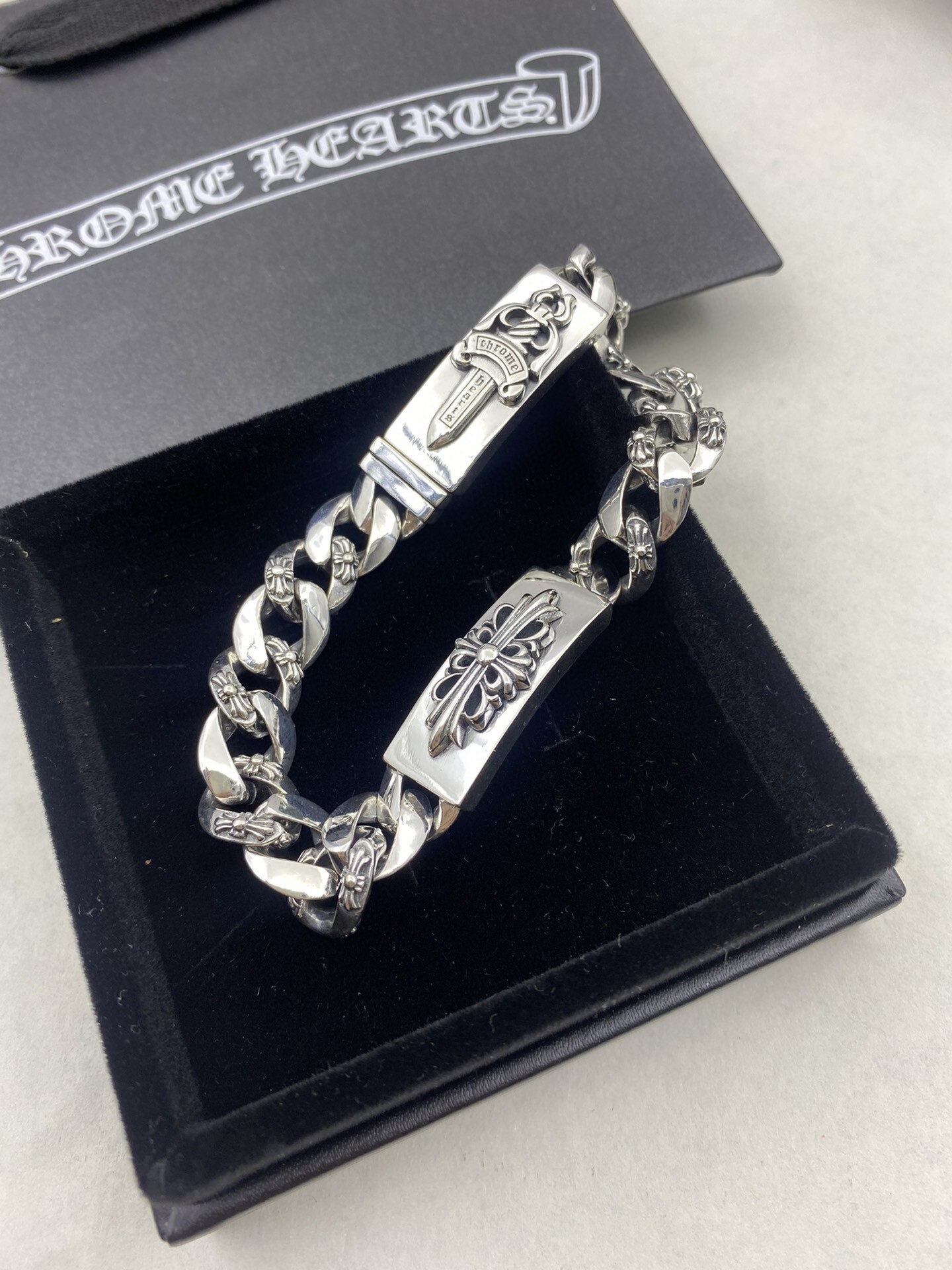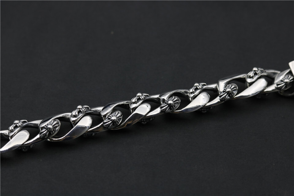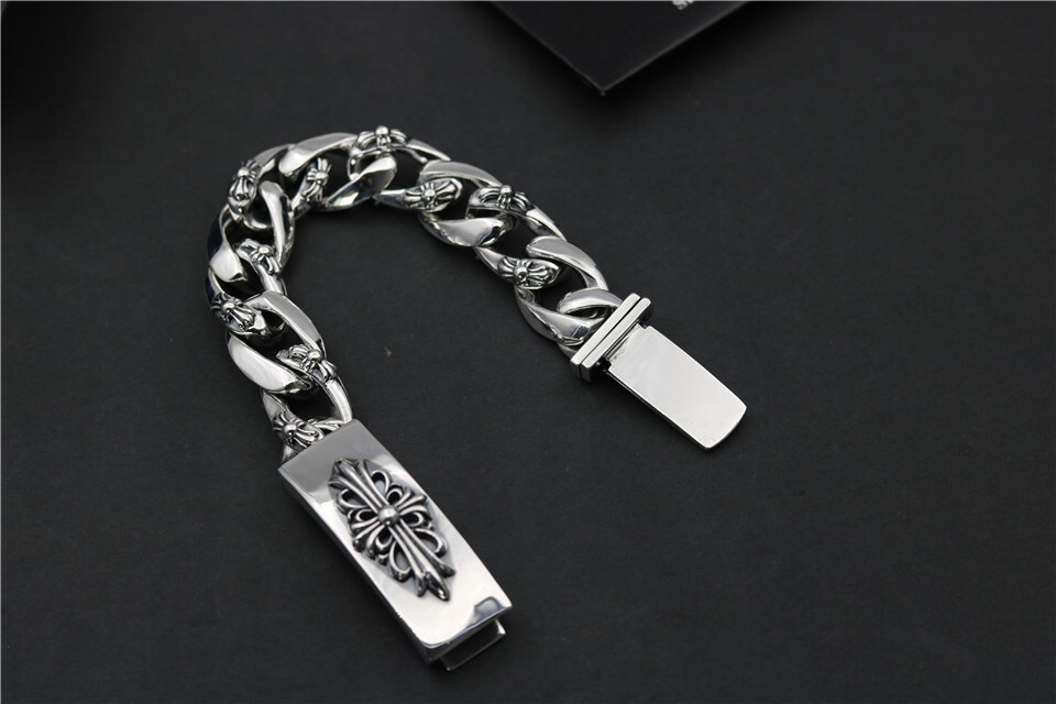 This bracelet is meticulously crafted from high-quality sterling silver, ensuring durability and a lasting shine. The intricate details, inspired by Chrome Hearts' signature motifs, showcase exceptional artistry and attention to detail.