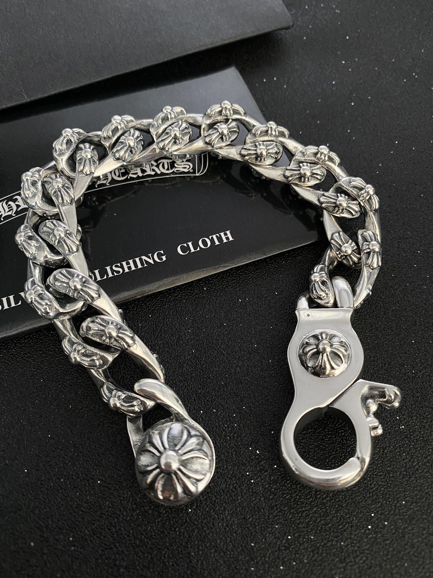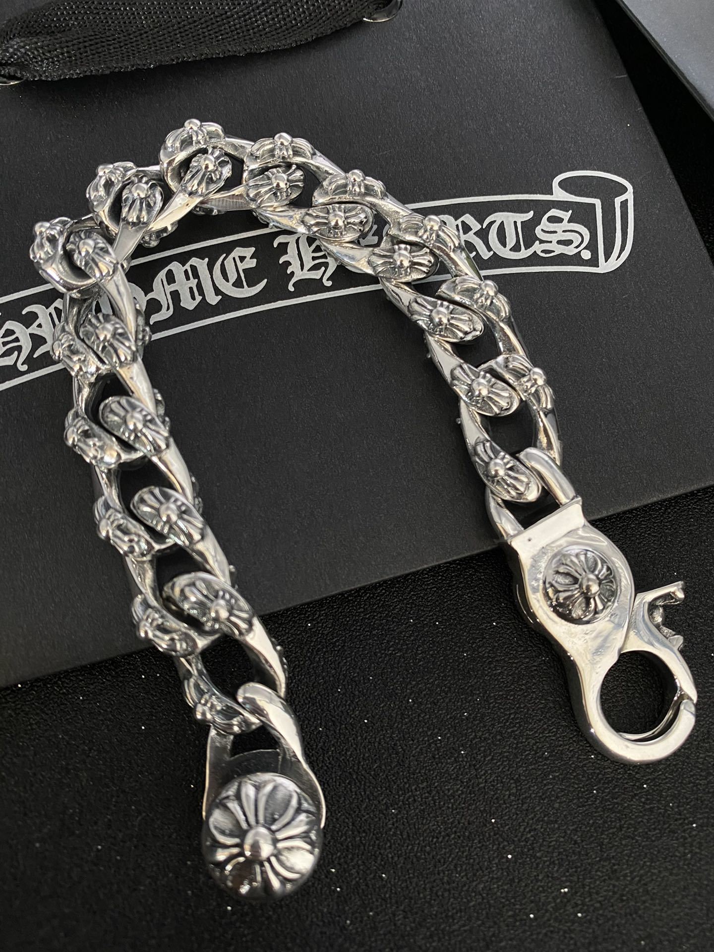 Dare to stand out with our exquisitely crafted Premium Silver Chain Bracelet. Inspired by iconic Chrome Hearts designs, this bracelet is a statement piece that exudes confidence and individuality. More than just an accessory, it's a symbol of your unique style and unwavering spirit.