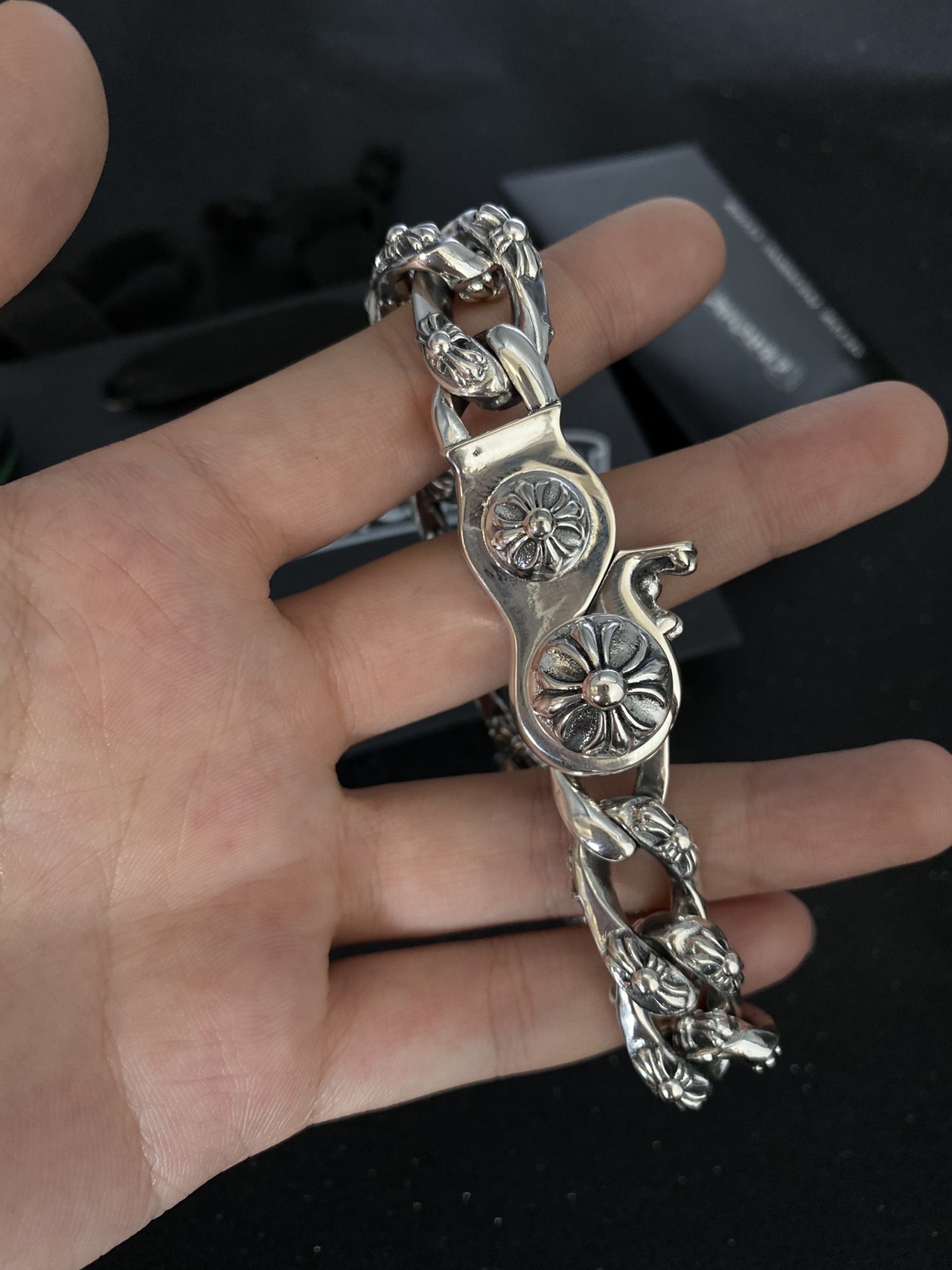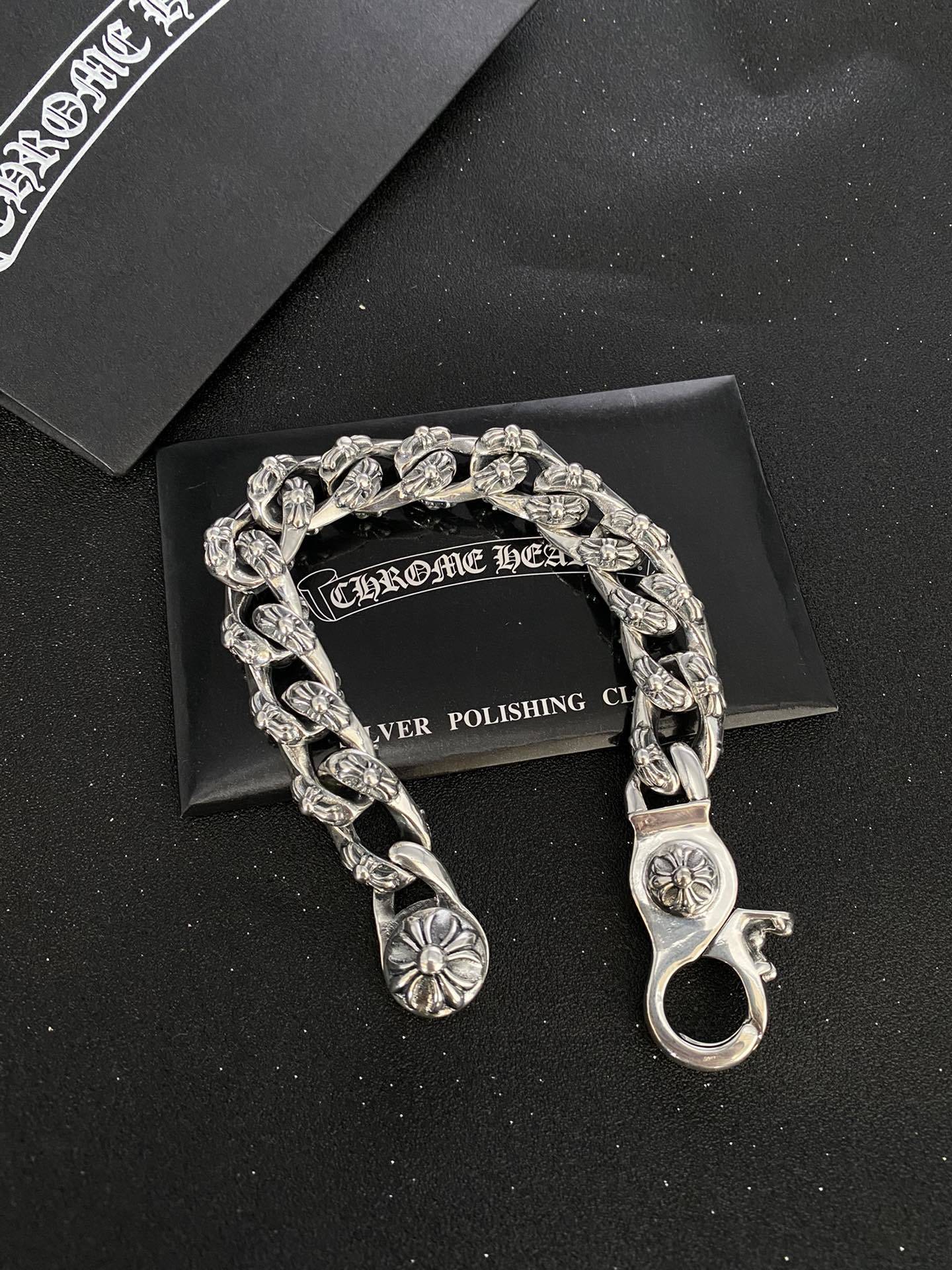 We believe in quality that lasts. This bracelet is meticulously crafted from high-grade sterling silver, ensuring durability and a luxurious feel. The intricate chain design, adorned with detailed floral motifs, showcases exceptional artistry and attention to detail. The secure clasp guarantees a comfortable and worry-free wear.