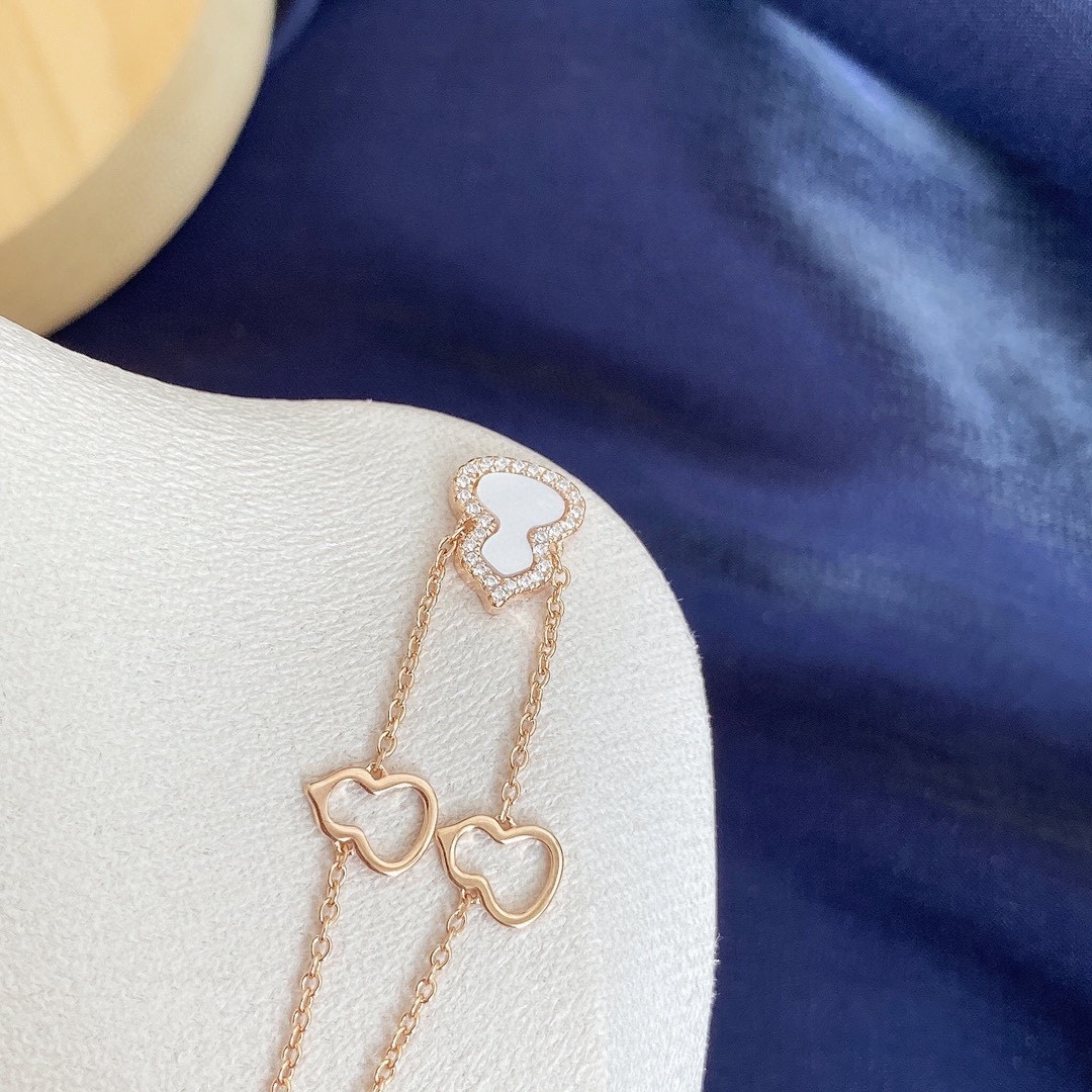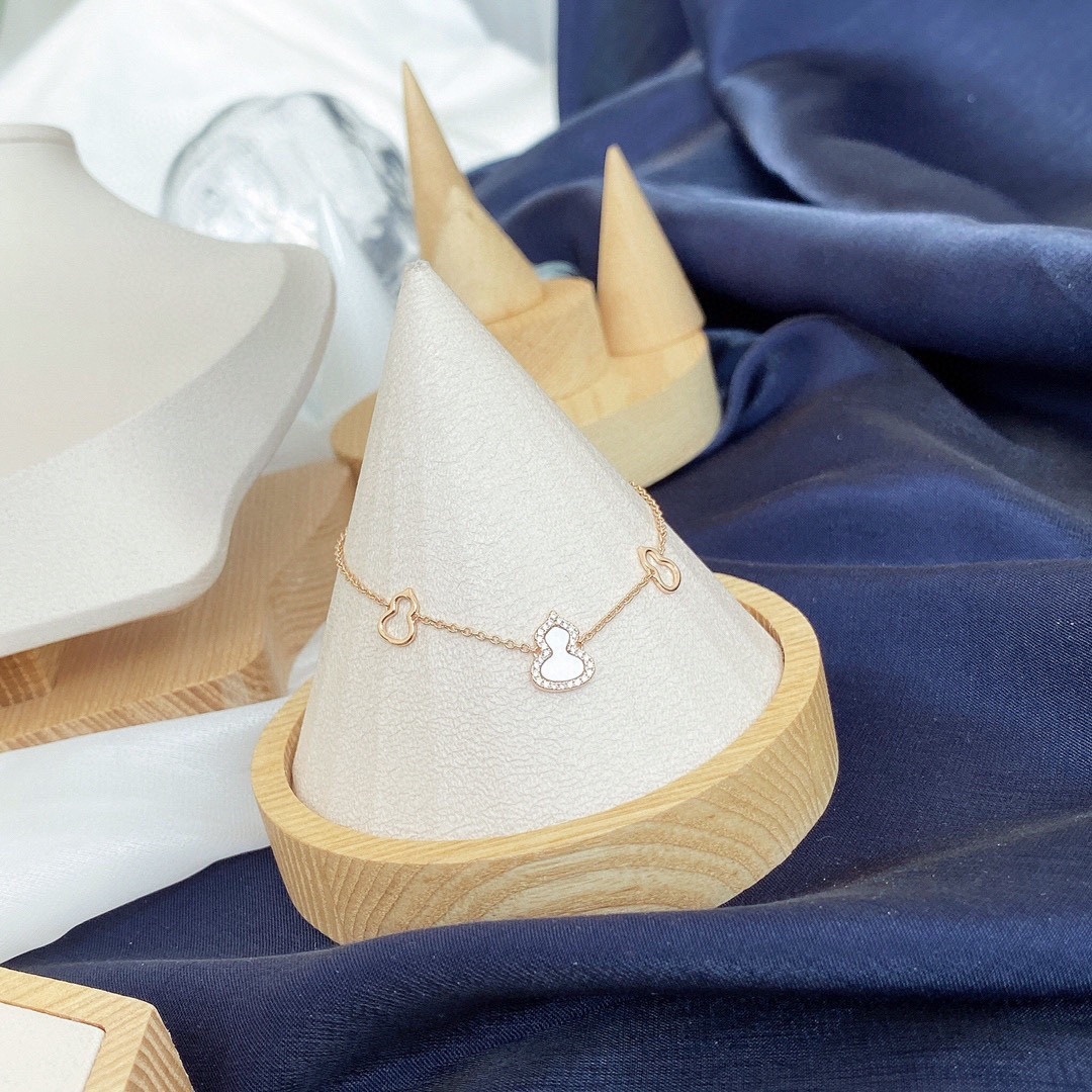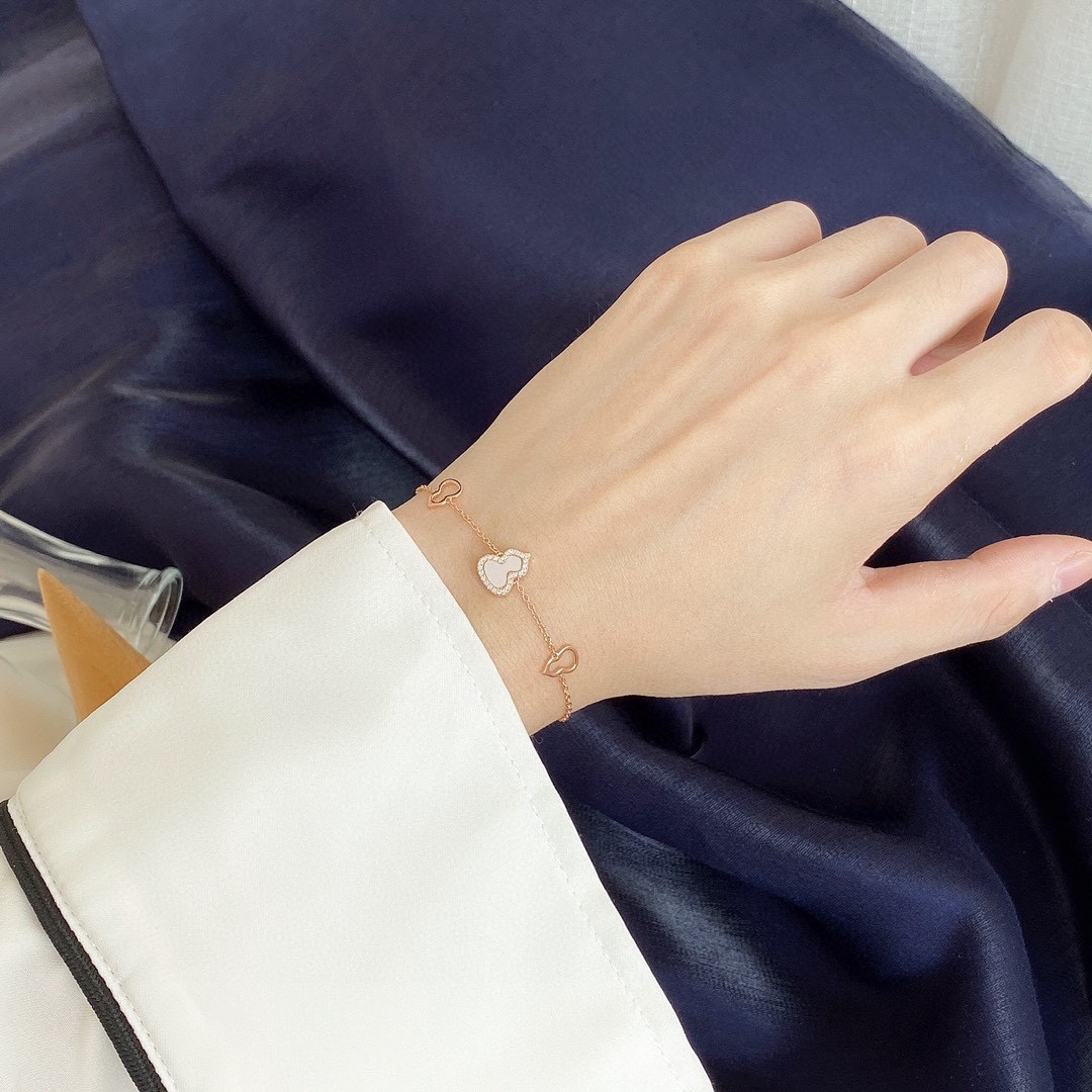 The Wulu bracelet features the iconic gourd-shaped charm, a symbol of endless good fortune in Chinese culture. The delicate rose gold chain complements the charm, creating a harmonious balance of sophistication and charm. The bracelet is available in two variations: one featuring a lustrous mother-of-pearl Wulu charm, and the other showcasing a vibrant green jade Wulu charm.