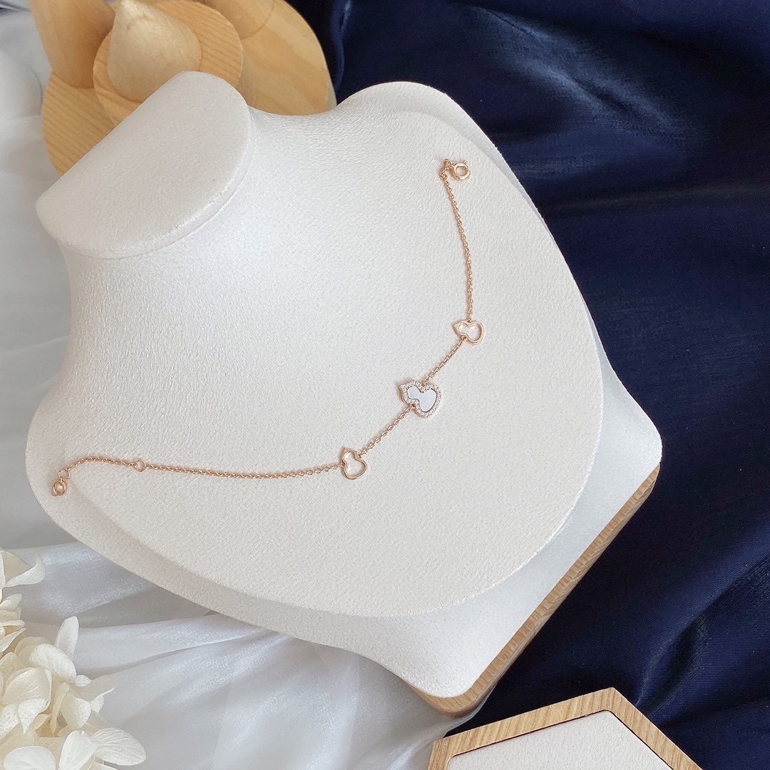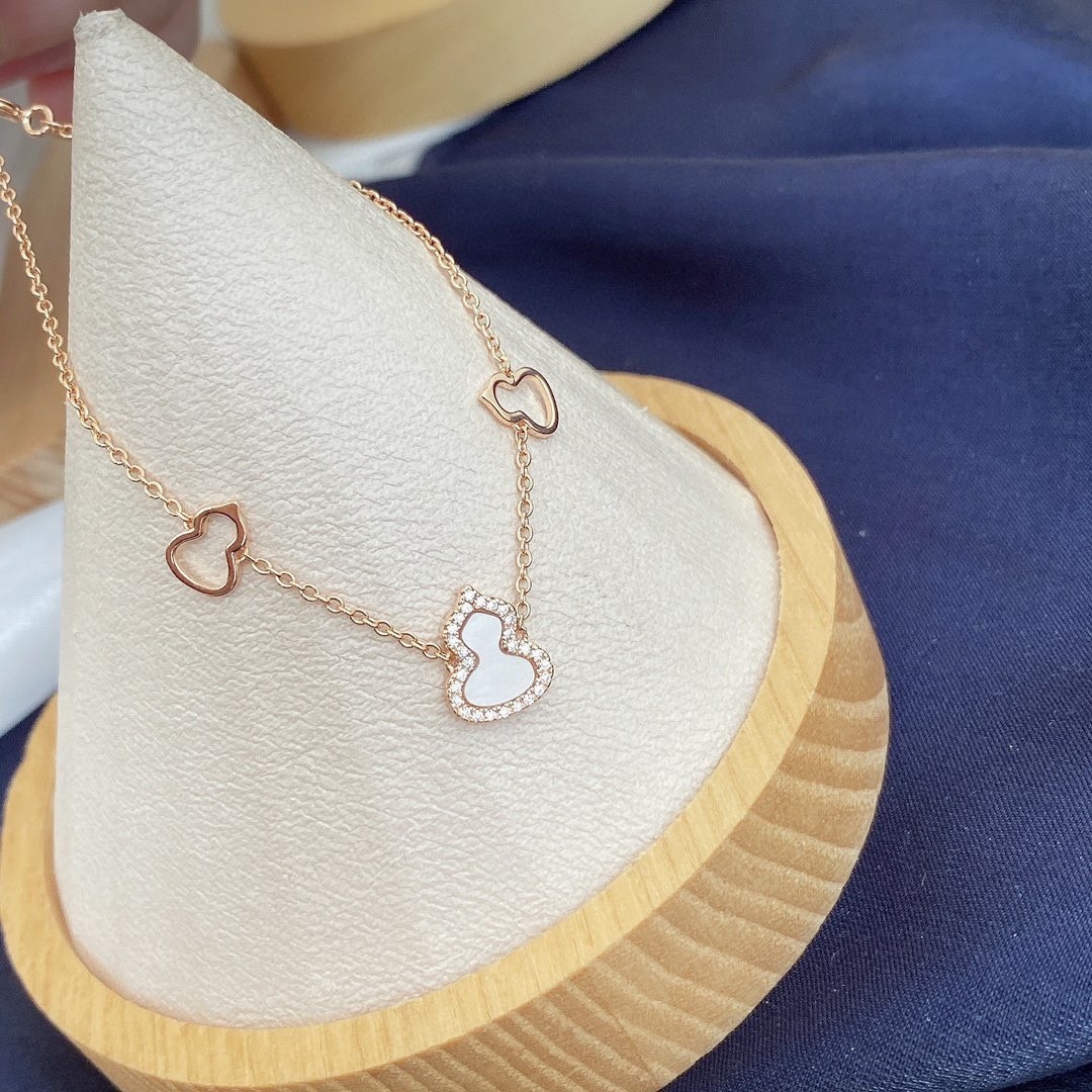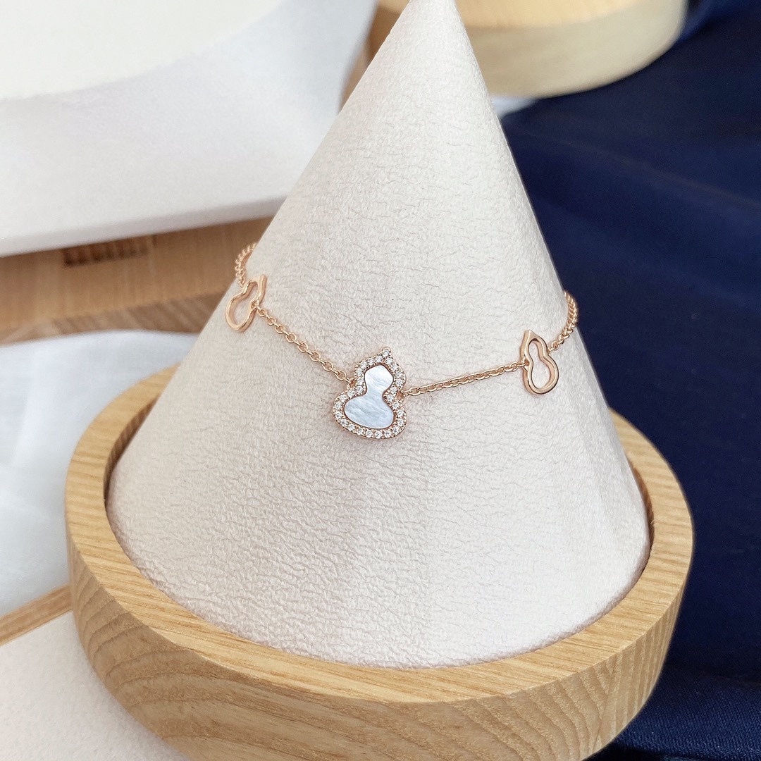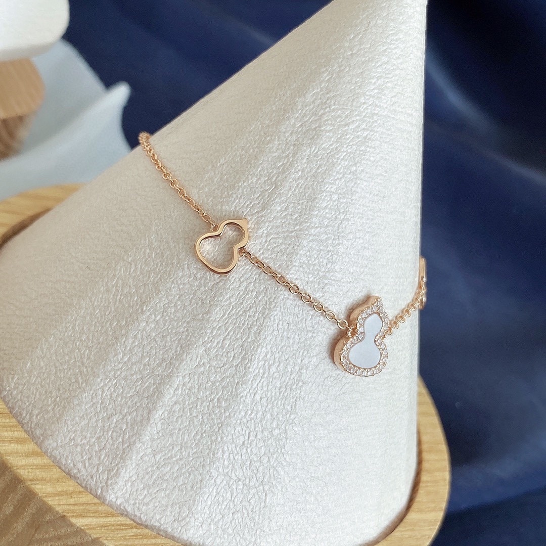 The Wulu bracelet features the iconic gourd-shaped charm, a symbol of endless good fortune in Chinese culture. The delicate rose gold chain complements the charm, creating a harmonious balance of sophistication and charm. The bracelet is available in two variations: one featuring a lustrous mother-of-pearl Wulu charm, and the other showcasing a vibrant green jade Wulu charm.