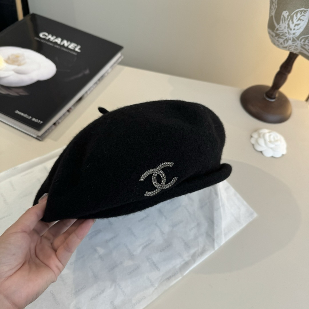 - rhinestone cc Chanel Black Wool Beret Overview