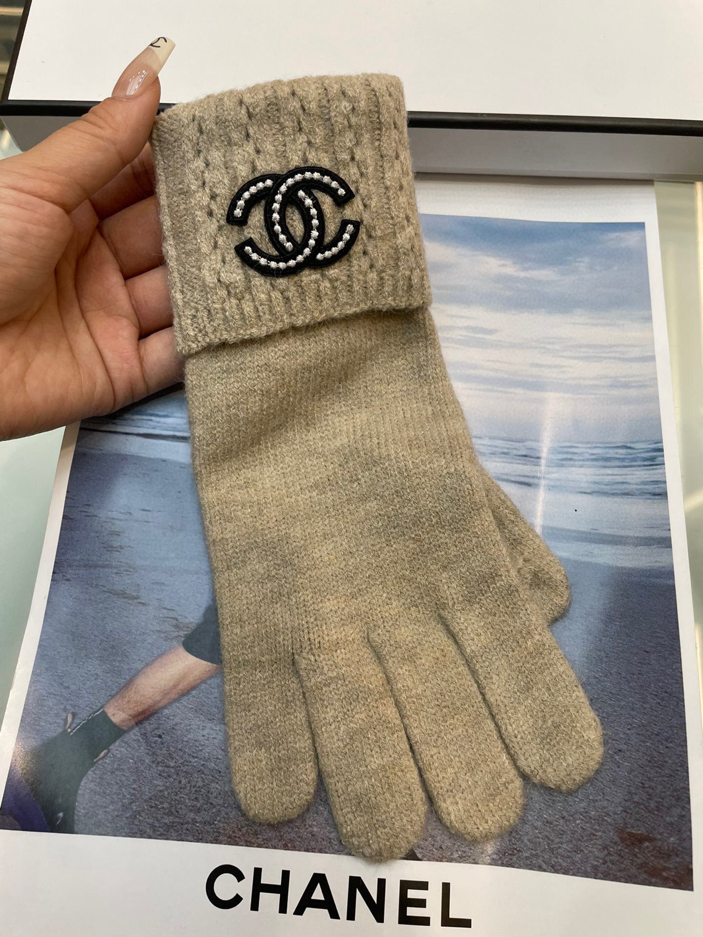 - Introducing the Chanel Beige Wool Gloves with Rhinestone CC Logo